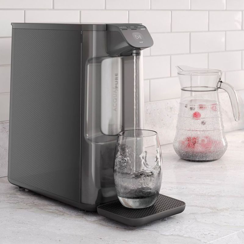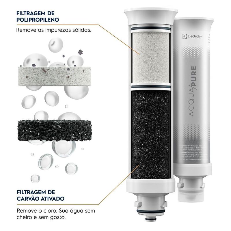 O Purificador de água Electrolux - Gelada, Fria e Natural Elétrico Compacto Pure 4x Cinza (PE12G) da Electrolux enche seu copo até 4x mais rápido. Esse modelo possui Tecnologia Acqua Pure: reduz cloro, odores e outras partículas presentes na sua água*. Além disso, é eficaz no controle do nível microbiológico** da sua água. O Design do Purificador de água Electrolux é compacto e moderno, podendo ser instalado em bancadas e disponível em 4 cores diferentes para combinar com qualquer ambiente. O painel touch possui iluminação de LED para sinalizar a saturação do filtro e facilitar a escolha dentre as 3 opções de temperatura de água. A troca de refil é fácil e simples, a cada 3.000 litros ou 6 meses de uso. O alerta de troca de filtro sinaliza a hora certa de substituir. O purificador também conta com bandeja removível e pés de borracha antiderrapante, facilitando a limpeza sem comprometer a estabilidade e boa performance. * Testado de acordo com a Portaria 394/2014? e ABNT NBR 16098:2012. ** Testado com a bactéria Pseudomonas aeruginosa conforme ABNT NBR16098:2012 Destaques Pressurizador Interno Garante até 2x* a vazão de água, mesmo com baixa pressão na entrada de água. (*Comparado ao modelo atual Electrolux) Design Compacto e Inovador Ideal para casas compactas e para otimizar espaço de bancada. Disponível em diferentes cores para combinar com a sua casa. Painel Touch Fácil seleção de temperatura, modernidade e tecnologia. Selecione uma das três temperaturas e então selecione a saída de água. 3 Opções de Temperatura Escolha a temperatura ideal para o seu gosto, natural, fresca ou gelada. Facilidade e satisfação. Filtro Acqua Pure Inibe a proliferação de bactérias e elimina impurezas sólidas, com carvão ativado que remove sabores e cheiros. Mais confiança para uma água pura de qualidade. Filtro de Longa Vida Útil Fácil de substituir. Troca do refil a cada 3,000 litros ou 6 meses e conta com um alerta de troca de filtro, que avisa a hora certa de substituí-lo. Bandeja Removível Fácil de remover e limpar. Características Funções: Pressurizador interno, Painel Touch, Filtro Acqua Pure, Filtro de longa vida-útil, Água Gelada Capacidade: 0,8 Litros Ajuste de Temperatura: 3 opções de temperatura Bandeja Coletora Pés Antiderrapantes Indicador Luminoso Utiliza Energia Elétrica Especificações Técnicas Modelo: PE12G Voltagem: Bivolt Cor: Cinza EAN: 7909569346105 Garantia: 12 meses Dimensões e Peso Dimensões do produto sem embalagem (AxLxP): 330x160x342 mm Itens Inclusos 01 Purificador de Água Electrolux Restrição de Entrega Para sua comodidade, a Fast Shop oferece o serviço de Instalação* e Orientação de Uso, com equipe especializada e autorizada pelo fabricante, que poderá realizar a medição de todos os acessos e retirar as portas do produto caso necessário. Consulte as condições e regiões atendidas entrando em contato nosso canal Blá pelo WhatsApp no número (11) 3232-2949 ou em uma de nossas lojas. Consulte os valores e regiões atendidas.