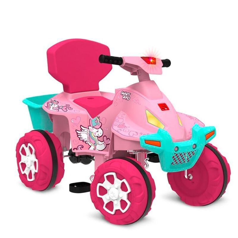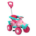 Quadriciclo Infantil Bandeirante 1220 Passeio E Pedal RosaUm quadriciclo perfeito para a diversão da criançada e também prático para você. O Quadriciclo infantil Bandeirante é esse produto. Ele conta com a função passeio, onde você pode utilizar a haste direcionável para conduzi-lo. Já com a função pedal, a criança tem liberdade para explorar as brincadeiras sozinha e pedalar livremente como um carro a pedal. Para animar ainda mais a brincadeira, o guidão conta com lente e luz de LED. O baú sob o assento, suporte para garrafa d'água, mamadeira ou squeeze (no cercado) e suporte para bolsa/ ou sacola vão facilitar os momentos de passeio. Você pode colocar ou retirar o cercado de proteção e o apoio dos pés, dependendo da função que preferir utilizar. NA