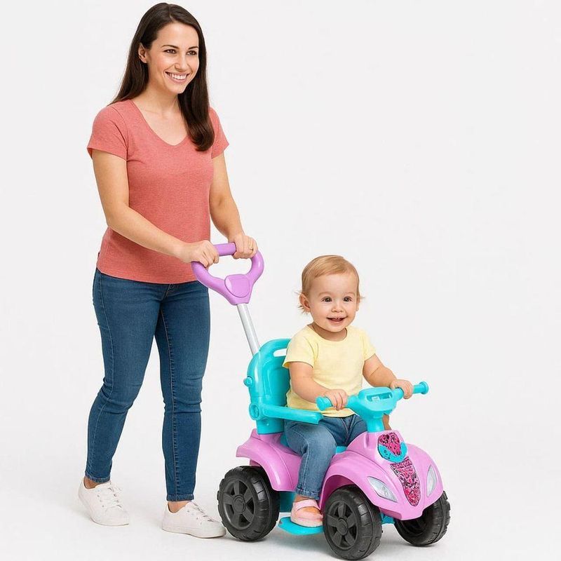 Quadriciclo Infantil Dog Menina - RosaQuadriciclo Infantil Dog Menina - RosaChegou o companheiro ideal para as primeiras aventuras do seu pequeno! Especialmente desenvolvido para crianças de 1 a 3 anos, esse brinquedo combina tudo o que é essencial nessa fase da infância: segurança, conforto, praticidade e, claro, muita diversão! Com um design moderno, colorido e cheio de charme, o quadriciclo foi pensado para acompanhar o crescimento da criança, se adaptando com facilidade às suas novas descobertas. A haste guia acoplada permite que os pais tenham controle total da direção, garantindo passeios tranquilos e seguros. Além disso, o apoio retrátil para os pés proporciona maior conforto durante o uso, e as proteções laterais asseguram estabilidade, evitando tombos e movimentos indesejados. Mas esse brinquedo vai além da diversão! Ele é uma poderosa ferramenta de apoio ao desenvolvimento motor e emocional. Estimula o equilíbrio corporal, aprimora a coordenação motora fina e ampla, e incentiva a autonomia da criança, que aprende aos poucos a se movimentar com mais liberdade e segurança. Para completar a experiência, o quadriciclo acompanha adesivos exclusivos que permitem que a criança personalize o carrinho e deixe-o com a sua cara. É diversão garantida e aprendizado em cada detalhe!ESPECIFICAÇÕES:Material: Plástico Peso: 5kg aprox.Dimensões: Quadriciclo: Larg.: 35cm x Alt.: 53cm x Comp.: 60cm Haste: Larg.: 3cm x Alt.: 75cmCor: Colorido (rosa, verde, preto, branco)REGISTRO IMETRO: 009183/2024CONTÉM: 01 Quadriciclo Infantil Dog Menina - Rosa