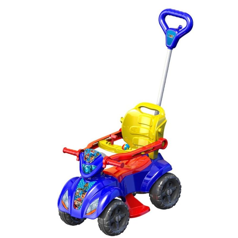 Prepare-se para ver a diversão tomar conta dos momentos de lazer, um brinquedo desenvolvido especialmente para crianças de 1 a 3 anos. Ele une o que há de mais importante nessa fase: segurança, conforto, praticidade e muito entretenimento! Com design encantador, este quadriciclo é o companheiro perfeito para os primeiros passeios. Ele foi pensado para acompanhar o crescimento da criança, se adaptando às suas necessidades e fases de desenvolvimento. A haste guia acoplada permite que os pais conduzam com facilidade e total controle da direção, tornando os passeios mais tranquilos e seguros. O apoio para os pés retrátil proporciona conforto extra durante a condução, enquanto as proteções laterais mantêm os pequenos bem seguros, evitando quedas ou movimentos bruscos. Mas não é só isso! Ele também é uma ferramenta educativa, pois estimula o desenvolvimento do equilíbrio corporal, da coordenação motora fina e ampla, além de incentivar a autonomia e a autoconfiança da criança, que aos poucos começa a descobrir a liberdade de se movimentar com mais independência. E para deixar a brincadeira ainda mais especial, o produto acompanha adesivos exclusivos, permitindo que o carrinho seja decorado. Seu pequeno vai amar! ESPECIFICAÇÕES: Material: Plástico Peso: 5kg aprox. Dimensões: Quadriciclo: Larg.: 35cm x Alt.: 53cm x Comp.: 60cm Haste: Larg.: 3cm x Alt.: 75cm Cor: Colorido (vermelho, azul, amarelo, preto, branco) REGISTRO IMETRO: 009183/2024 CONTÉM: 01 Quadriciclo Infantil Dog Menino - Azul