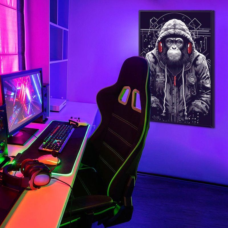 Quadro Decorativo Macaco Estiloso Moldura Cx Alta 100x66 Titulo Moldura PretaQuadro Decorativo Macaco Fone Estiloso Moldura CxAlta 100x66MEDIDAS- 100x66 cm.MATERIAL- MDF 3mm de espessura.MOLDURA- Caixa Alta de 2,8cm de espessura e 2cm de largura;- Madeira maciça de reflorestamento;- Revestida com alta qualidade;- 100% livre de imperfeições;- Cantos com acabamento excelente;TIPO DE IMPRESSÃO- Impressão em alta resolução em vinil livre de imperfeições.FINALIZAÇÂO E ACABAMENTO- O quadro decorativo é finalizado com grampos.OBSERVAÇÕES- Material de alta qualidade;- Moldura sem vidro (Por que não vai com vidro? Como nossas imagens são impressas em material vinil altamente durável, dispensa o uso do vidro. Fique tranquilo, sua imagem não corre o risco de desbotar);- Fabricação própria;- O produto pode ocorrer de ter uma leve diferença de tom na cor da que está na tela do seu computador ou celular.LIMPEZA APÓS FIXAÇÃO- A limpeza pode ser realizada apenas com um pano seco macio, se desejar pode ser úmido, porém sem conter álcool ou produtos químicos.Os quadros decorativos são muito utilizados por arquitetos e amantes da decoração. Quadros do mesmo tom, que possuam correlação e que ornem entre si podem ser utilizados juntos para dar uma personalização maior a um determinado ambiente. Composições podem ser utilizadas em salas, cozinhas, varandas, quartos ou qualquer ambiente que você queira deixar com a sua cara.Sendo assim a Arte na Arte criou pra você uma enorme variedade em Quadros Decorativos de cores e desenhos que seguem as últimas tendências de decoração.Transforme seu ambiente, decore sua sala, quarto, cozinha, escritório ou presenteie alguém especial com o Quadro Decorativo Arte na Arte.Esperamos que se sinta à vontade e encontre aqui o SEU estilo, e ao olhar pra o seu ambiente, seja ele qual for - possa dizer: Agora meu ambiente está completo!Tire todas suas dúvidas conosco, estamos sempre à disposição.Imagens meramente ilustrativas que não refletem no tamanho real do produto!Imagem ambiente fornecido por Freepik.