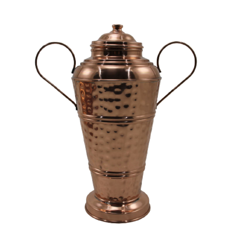 Quartinha Jarro de Cobre com Tampa Alças Artigo Religioso M Quartinha é uma espécie de jarro com tampa. Recipiente para acondicionar líquidos, é indispensável nos cultos afro-brasileiros sendo usado na maioria dos assentamentos. A quartinha serve para abrigar fundamentos do orixá ou a entidade de uma pessoa. Ao chegar num terreiro é muito comum avistar na entrada sobre o piso ou sobre o portal da entrada, isso significa que o espaço é sagrado. Nossas quartinhas por serem em cobre tem alta resistência e durabilidade. Especificações Técnicas: Altura: 25,5cm. Peso: 0,350kg. Diâmetro: 6cm. Itens Inclusos: 01 Quartinha Jarro de Cobre com Tampa Alças Artigo Religioso M. Código: 008E-M.Arte.