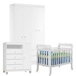 Quarto De Bebê 4 Portas Ternura Baby Com Berço Lila Branco Brilho - IncorplacQuarto de Bebê 4 Portas Ternura Baby com Berço Lila Branco Brilho - IncorplacMamãe e Papai que estão a procura dos Móveis perfeitos para o quartinho do Bebê! Aqui você encontra qualidade e bom preço! Apresentamos o Quarto de Bebê 04 Portas Ternura Baby com Berço Lila na cor Branco Brilho desenvolvidos pela Incorplac e Carolina, contam com um lindo design, ótimas repartições, amplo espaço interno para melhor organização das roupinhas, sapatinhos e acessórios do seu Bebê. Confira as características e aproveite!Guarda Roupa Infantil Ternura Baby 4 Portas Branco Brilho – IncorplacCaracterísticas Técnicas: -Desenvolvido em MDP- Pintura e acabamento na cor Branco Brilho- Possui 04 portas- Possui 02 gavetas- Puxadores em PVC- Inclui 04 pés- Dobradiças metálicas- Corrediças metálicas livres de qualquer enrosco- Ótimo espaço interno- Maior organização e praticidade- Lindo designDimensões:Altura: 189 cmLargura: 100 cmProfundidade: 43 cmCômoda Infantil Ternura Baby com Porta Branco Brilho - IncorplacCaracterísticas Técnicas:- Desenvolvida em 100% MDP- Pintura e acabamento na cor Branco Brilho- Possui 04 gavetas- Possui 01 porta- Puxadores em PVC- Corrediças metálicas livres de qualquer enrosco- Lindo designDimensões:Altura: 93 cmLargura: 84 cmProfundidade: 40 cmBerço Americano Lila Branco Brilho - Carolina MóveisCaracterísticas técnicas:- Desenvolvido em MDF- Pintura e acabamento em na cor Branco Brilho- Varão suporte para mosquiteiro- Grade Fixa para maior do bebê- Estrado do colchão em 2 níveis de altura podendo ser regulado conforme as fases de crescimento do bebê- 04 Rodízios sendo dois com travas- Utiliza colchão 70/130- Rodízios sendo 2 com travas para maior - Lindo design- Certificado INMETRODimensões:Altura: 116 cmLargura: 154 cmProfundidade: 75 cmObs: Não realizamos montagem, porém acompanha manual de instruções.