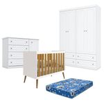 Quarto De Bebê Americano 4 Portas Com Berço Americano Isis Branco Acetinado Savana E Colchão Ortobom - Reller - HennQuarto de Bebê Americano 4 Portas com Berço Americano Isis Branco Acetinado Savana com Colchão Ortobom - Reller - HennQuarto de bebê composto por Berço Americano Isis Branco Acetinado Savana Reller, Guarda-Roupa Americano 4 Portas Henn e Cômoda Infantil Americano. O berço conta com estrutura firme e acabamento branco acetinado com detalhe Savana, garantindo conforto e segurança para o bebê. O guarda-roupa oferece bom espaço interno para organização do enxoval, enquanto a cômoda complementa o ambiente com praticidade para roupas e acessórios. Ideal para montar um quarto de bebê funcional, elegante e aconchegante. Acompanha Colchão Ortobom.Berço Americano Isis Branco Acetinado Savana - RellerCaracterísticas Técnicas- Material da estrutura em MDF- Acabamento em pintura U.V acetinado- Cantos arredondados- Pés em madeira maciça- Acompanha suporte para mosquiteiro- Possui 3 níveis de altura no estrado- Indicado colchão 70/130 cm ( vendido separadamente)- Certificado pelo Inmetro- Grade fixa- Transforma-se em mini cama- Design modernoDimensõesAltura: 94 cmLargura: 133 cmProfundidade: 77 cmColchão para Berço Americano Phisical 70x130 – OrtobomCaracterísticas técnicas- Tecido plano 100% poliéster- Placa de espuma em 100% poliuretano desempenho do INMETRO aprovada- Revestimento inferior em plástico impermeável- Proteção 100% espuma e tecido contra formação e colonização de ácaros, bactéria e fungos trazendo mais segurança e auxiliando na saúde do bebê- Padrão americano- Produto de origem nacional- Lindo design- Carinho e conforto que o seu bebê mereceDimensõesAltura: 10 cmLargura: 70 cmProfundidade: 130 cmGuarda Roupa Infantil Americano 4 Portas Branco HP – HennCaracterísticas Técnicas:- Desenvolvido em MDP/ MDF- Frentes em MDF- Acabamento em U.V Fosco- 4 Portas- 4 Gavetas com corrediças telescópicas- Portas e gavetas com usinagem em baixo relevo- Puxadores em ABS na cor bronze- Cabideiro em alumínio- Lindo designDimensões:Altura: 218 cmLargura: 155 cmProfundidade: 49 cmCômoda Infantil Americano Branco HP – HennCaracterísticas Técnicas:- Desenvolvido em MDP/ MDF- Frentes em MDF com usinagem em baixo relevo- Pintura na cor Branco HP- Acabamento em U.V Fosco- 1 Porta- 4 Gavetas com corrediças telescópicas- Prateleiras internas- Puxadores na cor bronze- Lindo designDimensões:Altura: 101 cmLargura: 126 cmProfundidade: 51 cmInformações importantes:- Não acompanha decorações e acessórios- Nossas cargas possuem seguro, portanto, no ato da entrega, confira a quantidade de volumes recebida, e também o estado da embalagem. Se houver qualquer inconsistência, não assine o comprovante de entrega;- O armazenamento do produto no endereço de entrega é de responsabilidade do comprador. Evite apoiar o produto na vertical, bem como evite áreas que deixem o produto exposto a chuva ou umidade excessiva;- Pequenas variações de tonalidade são possíveis, em razão da diferença de resolução da tela onde o anúncio está sendo visualizado. Se notar diferença expressiva, comunicar a empresa antes de efetuar a montagem;- O serviço de entrega contratado contempla a entrega até a primeira área coberta ou portaria, não sendo coberto o ato de subir escadas/elevadores ou adentrar nas residências;- Não nos responsabilizamos pela montagem, desmontagem ou instalação do produto.