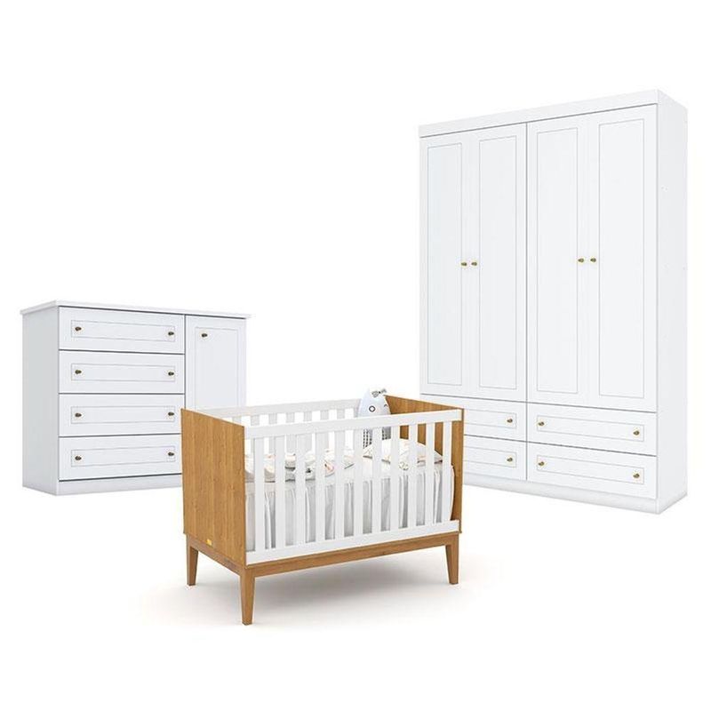 Quarto De Bebê Americano 4 Portas Com Berço Americano Unique Freijó Branco Soft Eco Wood - Matic - HennQuarto de Bebê Americano 4 Portas com Berço Americano Unique Freijó Branco Soft Eco Wood - Matic - HennQuarto de Bebê Americano 4 Portas com Berço Americano Unique Freijó Branco Soft Eco Wood – Matic / Henn e cômoda infantil, ideal para criar um ambiente aconchegante e bem organizado. O berço oferece conforto e segurança para o bebê, enquanto o guarda-roupa de 4 portas e a cômoda garantem praticidade e ótima organização no dia a dia. Design elegante, bom acabamento e a qualidade Matic e Henn para acompanhar as primeiras fases da criança.Berço Americano Unique Freijó Branco Soft Eco Wood - MaticCaracterísticas técnicas:- Certificado de INMETRO- Desenvolvido 100% em MDF- Grade fixa- Utiliza colchão de 70cmx130cm (vendido separadamente)- Acompanha suporte para mosquiteiro- Transforma em mini cama- Estrado com 3 regulagens de altura- Pés em madeira- Pintura atóxica- Lindo DesignDimensões:Altura: 96 cmLargura: 136 cmProfundidade: 77 cmCômoda Infantil Americano Branco HP – HennCaracterísticas Técnicas:- Desenvolvido em MDP/ MDF- Frentes em MDF com usinagem em baixo relevo- Pintura na cor Branco HP- Acabamento em U.V Fosco- 1 Porta- 4 Gavetas com corrediças telescópicas- Prateleiras internas- Puxadores na cor bronze- Lindo designDimensões:Altura: 101 cmLargura: 126 cmProfundidade: 51 cmGuarda Roupa Infantil Americano 4 Portas Branco HP – HennCaracterísticas Técnicas:- Desenvolvido em MDP/ MDF- Frentes em MDF- Acabamento em U.V Fosco- 4 Portas- 4 Gavetas com corrediças telescópicas- Portas e gavetas com usinagem em baixo relevo- Puxadores em ABS na cor bronze- Cabideiro em alumínio- Lindo designDimensões:Altura: 218 cmLargura: 155 cmProfundidade: 49 cmInformações importantes: *Imagens meramente ilustrativas, cores e estampas podem variar conforme lote. *Não realizamos a montagem ou instalação do produto, porém acompanha manual de instruções. *Toda mercadoria segue segurada contra qualquer sinistro, em caso de anormalidade, recuse. *Conferir a quantidade de volumes. *As caixas ou pacotes possuem identificação com o nome, cidade e quantidades de volumes relativos à compra para conferencia.