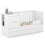 Quarto De Bebê Americano 6 Portas Com Berço Americano Multifuncional Formare Branco Acetinado - Matic - HennQuarto de Bebê Americano 6 Portas com Berço Americano Multifuncional Formare Branco Acetinado – Matic - HennQuarto de Bebê Americano 6 Portas com Berço Americano Multifuncional Formare Branco Acetinado – Matic - Henn, ideal para quem busca praticidade, segurança e design moderno. O conjunto é composto por berço americano multifuncional, que acompanha o crescimento do bebê, guarda-roupa infantil de 6 portas com excelente espaço interno para organização do enxoval e cômoda funcional, perfeita para complementar o ambiente. Com acabamento em Branco Acetinado, oferece um visual clean e aconchegante, unindo qualidade, durabilidade e ótimo aproveitamento de espaço para o quarto do bebê.Berço Americano Multifuncional Formare Branco Acetinado – MaticCaracterísticas técnicas- Desenvolvido em MDF- Pintura branco acetinado UV- Sistema pintura utiliza tinta atóxica que não tem cheiro e não faz mal a saúde do bebê- Utiliza colchão de 70/130 (vendido separadamente)-Estrado colchão com 3 níveis de altura podendo ser regulado conforme s fases de crescimento do bebê- Grade fixa- Varão para mosqueteiro- Espaço cômoda com dois gavetões com corrediças telescópicas livres de qualquer enrosco facilitando o abrir e fechar-Espaço nicho organizador- Lindo desing- Conforto e segurança do seu bebêDimensões:Altura: 102 cmLargura: 193 cmProfundidade: 87 cmGuarda Roupa Casal Americano 6 Portas Branco HP – HennCaracterísticas Técnicas:- Desenvolvido em MDF/MDP- Frentes em MDF com usinagem baixo relevo e P.U- Pintura na cor Branco HP- Acabamento em U.V Fosco- 6 Portas- 4 Gavetas com corrediças telescópicas- Puxadores bronze- Cabideiros em alumínio- Lindo designDimensões:Altura: 230 cmLargura: 262 cmProfundidade: 54 cmCômoda Infantil Americano Branco HP – HennCaracterísticas Técnicas:- Desenvolvido em MDP/ MDF- Frentes em MDF com usinagem em baixo relevo- Pintura na cor Branco HP- Acabamento em U.V Fosco- 1 Porta- 4 Gavetas com corrediças telescópicas- Prateleiras internas- Puxadores na cor bronze- Lindo designDimensões:Altura: 101 cmLargura: 126 cmProfundidade: 51 cmInformações importantes:- Nossas cargas possuem seguro, portanto, no ato da entrega, confira a quantidade de volumes recebida, e também o estado da embalagem. Se houver qualquer inconsistência, não assine o comprovante de entrega;- O armazenamento do produto no endereço de entrega é de responsabilidade do comprador. Evite apoiar o produto na vertical, bem como evite áreas que deixem o produto exposto a chuva ou umidade excessiva;- Pequenas variações de tonalidade são possíveis, em razão da diferença de resolução da tela onde o anúncio está sendo visualizado. Se notar diferença expressiva, comunicar a empresa antes de efetuar a montagem;- O serviço de entrega contratado contempla a entrega até a primeira área coberta ou portaria, não sendo coberto o ato de subir escadas/elevadores ou adentrar nas residências;- Não nos responsabilizamos pela montagem, desmontagem ou instalação do produto.