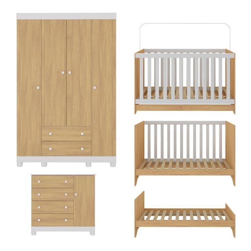 Quarto De Bebê Completo Berço Americano 3 Em 1 Colchão Allegra Multimóveis MP4598 Branco/madeiradoCada detalhe do Quarto de Bebê Completo com Berço Americano 3 em 1 Colchão Incluso Multimóveis MP4598 foi pensado para acolher o seu pequeno com amor, conforto e segurança. Um espaço encantador que transmite tranquilidade e transforma os primeiros momentos do bebê em lembranças cheias de ternura.Diferenciais:- 3 anos de garantia contra defeitos de fabricação e material (exceto colchão).- Conjunto produzido em madeira de reflorestamento (MDP 12/15mm) com acabamento acetinado (cerca de 20% de brilho): sustentabilidade e durabilidade.- Berço 3 em 1 que se transforma em sofá e minicama, acompanhando o crescimento do bebê.- Lastro em madeira com 3 regulagens de altura e suporte para mosquiteiro para noites mais tranquilas e protegidas.- Berço certificado pelo INMETRO (Selo nº 0000085/2018).- Padrão americano (tamanho do colchão: 130x70cm).- Colchão D18 incluso: possui tratamento antiácaro, antialérgico, antimofo e um dos lados impermeável.- Grade Soft (PVC): ecologicamente correta, com matéria-prima livre de metais pesados, atóxica e com proteção antiamarelamento.- Guarda-roupa com 4 portas e 2 gavetas: amplo espaço para organizar roupinhas e acessórios.- Cômoda com 1 porta e 4 gavetas.- Corrediças telescópicas: abertura total e silenciosa das gavetas.- Cabideiro em alumínio: permite acomodar roupas longas e curtas para que não amassem.- Puxadores em ABS delicados e práticos.- Pés em polipropileno e rodapés: visual elegante e estabilidade para o guarda-roupa e a cômoda.- Sistema antitombamento no guarda-roupa e cômoda: proporciona segurança para o bebê e tranquilidade aos pais.Conteúdo da Embalagem:1 (um) Berço1 (um) Colchão1 (um) Guarda-roupa1 (uma) CômodaManual de MontagemKit FerragemDimensões do Produto Montado:Berço - Altura: 80,5cm | Largura: 133cm | Profundidade: 77,5cmColchão - Altura: 10cm | Largura: 130cm | Profundidade: 70cmGuarda-roupa - Altura: 189cm | Largura: 122cm | Profundidade: 41cmCômoda - Altura: 88cm | Largura: 95cm | Profundidade: 42cm*Você pode consultar as medidas detalhadas na imagem técnica do produto.Observações Importantes:*As cores dos produtos podem sofrer variações de tonalidade de acordo com as configurações do seu dispositivo.*Aqui na Loja Multimóveis, você pode concluir sua compra facilmente com toda segurança. A entrega é garantida e você está em 1° lugar.*Imagens meramente ilustrativas (decoração não inclusa).*Os produtos serão entregues desmontados e não disponibilizamos o serviço de montagem. Acabamento: Finish Foil/Pintura UV | Tonalidade: Branco | Material: MDP | Referência do Modelo: MP4598 | Coleção: Allegra | Sistema de Montagem: O produto acompanha manual de montagem juntamente com kit ferragem. O produto será entregue desmontado e não disponibilizamos o serviço de montagem. | Instruções de Cuidado: Limpar com pano seco para retirar o pó. Não utilizar produtos químicos ou abrasivos. Não aplicar lustra móveis. | Produto Composto por: 1 berço, 1 colchão, 1 guarda-roupa, 1 cômoda, manual de montagem e kit ferragem. | Altura Montado: 189 | Largura Montado: 122 | Profundidade Montado: 41 | Tamanho (L x A x P): 122 x 189 x 41 | Peso do Produto: 126 | Corrediça: Telescópica | Inclui Berço: Sim | Acompanha Colchão: Sim | Inclui Guarda-Roupa: Sim | Inclui Gaveteiro: Sim | Material do Puxador: ABS | Quantidade de Portas: 5 | Quantidade de Gavetas: 6 | Quantidade de Puxadores: 17 | RBN: 17352335011 | Quantidade de Pés: 13 | Quantidade de Peças: 4 | Material dos Pés: Polipropileno | Produto: Conjunto de Quarto | Portátil: Não | Registro INMETRO: 0000085/2018 | Fabricante: Multimóveis | Regulamentado pelo INMETRO: Sim | Garantia do Fabricante: 3 | Requer Montagem: Sim | Tempo de Garantia: 3 meses | Descrição do Tamanho: (L x A x P): 122 x 189 x 41 cm | Tipo de cama: Berço | Marca: Multimóveis | Tamanho da cama: Berço | Quantidade de criados mudos: 0 | Tipo de madeira: N/A | Comprimento da cama: 77,5 cm | Altura da cama: 80,5 cm | É Kit de fábrica: Sim | Estilo: Moderno | Largura da cama: 133 cm | Idade recomendada: 0-24 meses | Idade: Bebê | Quantidade de caixas de embalagem: 07 | Destaque 1: Produzido em MDP com acabamento acetinado: durabilidade e resistência. | Destaque 2: Berço 3 em 1: transforma-se em sofá e minicama, acompanhando as fases da criança. | Destaque 3: Guarda-roupa com 4 portas, 2 gavetas e cabideiro de alumínio. | Destaque 4: Cômoda com 1 porta e 4 gavetas: amplo espaço interno. | Destaque 5: Corrediças telescópicas: abertura total e silenciosa das gavetas. | Baterias são necessárias?: Não | Certificação de teste externa: 0000085/2018 | Is Fragile: Não | Dimensões do item P x L x A: length#value=41;length#unit=centimeters;width#value=122;width#unit=centimeters;height#value=189;height#unit=centimeters | Quantidade de itens: 1 | Peso do item: unit=kilograms;value=126 | Número da peça: MP4598.697 | Inclui manual de montagem: Sim | Tipo de Garantia: Garantia do Fabricante | Montagem: Necessita Montagem | País de Origem: Brasil | Palavras-chave: berco com colchao, berco pequeno bercos moveis, berco que vira cama, berco mini cama, berco, quarto completo de bebe, berco e guarda roupa, kit quarto bebe, quarto de bebe completo, quarto de bebe, quarto bebe, jogo de quarto bebe, quarto completo bebe, kit quarto bebe moveis, quarto infantil bebe, kit quarto de bebe, berço e guarda roupa | Inclui cômoda trocador: Não | Cor: Branco/Madeirado