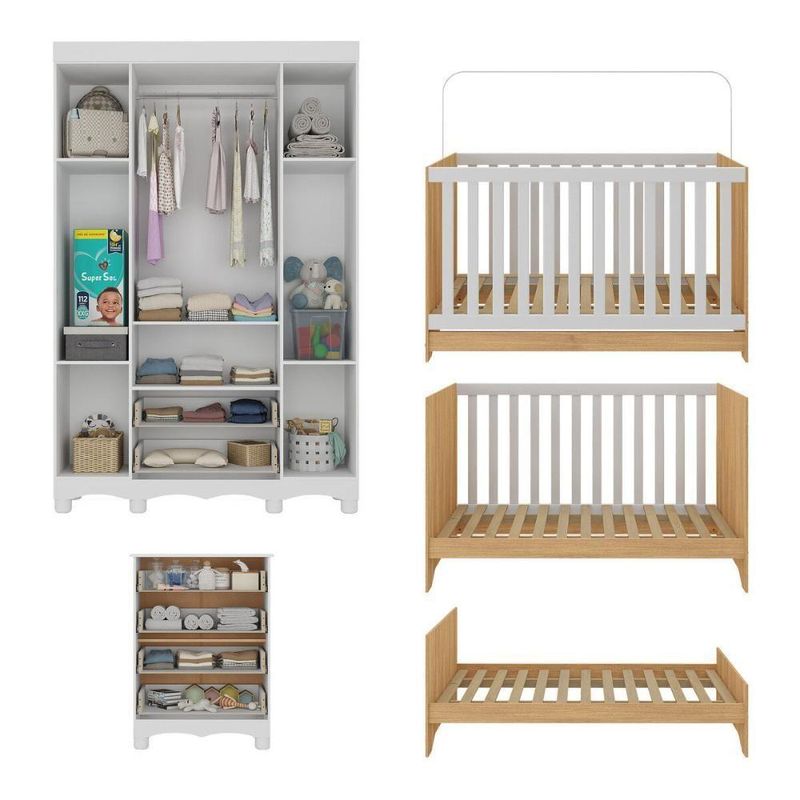 Quarto De Bebê Completo Berço Americano 3 Em 1 Colchão Dengo Multimóveis MP4604 Branco/madeiradoO quarto do seu bebê é o cenário dos sonhos que estão prestes a começar. Com o Quarto de Bebê Completo com Berço Americano 3 em 1 Colchão Incluso Multimóveis MP4604, você cria um ambiente repleto de doçura, praticidade e amor — perfeito para acompanhar cada nova descoberta do seu pequeno.Diferenciais:- 3 anos de garantia contra defeitos de fabricação e material (exceto colchão).- Conjunto produzido em madeira de reflorestamento (MDP 12/15mm) com acabamento acetinado (cerca de 20% de brilho): sustentabilidade e durabilidade.- Berço 3 em 1 que se transforma em sofá e minicama, acompanhando o crescimento do bebê.- Lastro em madeira com 3 regulagens de altura e suporte para mosquiteiro para noites mais tranquilas e protegidas.- Berço certificado pelo INMETRO (Selo nº 0000085/2018).- Padrão americano (tamanho do colchão: 130x70cm).- Colchão D18 incluso: possui tratamento antiácaro, antialérgico, antimofo e um dos lados impermeável.- Grade Soft (PVC): ecologicamente correta, com matéria-prima livre de metais pesados, atóxica e com proteção antiamarelamento.- Guarda-roupa com 4 portas e 2 gavetas: amplo espaço para organizar roupinhas e acessórios.- Cômoda com 4 gavetas.- Corrediças telescópicas: abertura total e silenciosa das gavetas.- Cabideiro em alumínio: permite acomodar roupas longas e curtas para que não amassem.- Puxadores em ABS delicados e práticos.- Pés em polipropileno e rodapés usinados em MDF: visual elegante e estabilidade para o guarda-roupa e a cômoda.- Sistema antitombamento no guarda-roupa e cômoda: proporciona segurança para o bebê e tranquilidade aos pais.Conteúdo da Embalagem:1 (um) Berço1 (um) Colchão1 (um) Guarda-roupa1 (uma) CômodaManual de MontagemKit FerragemDimensões do Produto Montado:Berço - Altura: 80,5cm | Largura: 133cm | Profundidade: 77,5cmColchão - Altura: 10cm | Largura: 130cm | Profundidade: 70cmGuarda-roupa - Altura: 189cm | Largura: 122cm | Profundidade: 41cmCômoda - Altura: 88cm | Largura: 65cm | Profundidade: 42cm*Você pode consultar as medidas detalhadas na imagem técnica do produto.Observações Importantes:*As cores dos produtos podem sofrer variações de tonalidade de acordo com as configurações do seu dispositivo.*Aqui na Loja Multimóveis, você pode concluir sua compra facilmente com toda segurança. A entrega é garantida e você está em 1° lugar.*Imagens meramente ilustrativas (decoração não inclusa).*Os produtos serão entregues desmontados e não disponibilizamos o serviço de montagem. Acabamento: Finish Foil/Pintura UV | Tonalidade: Branco | Material: MDP | Referência do Modelo: MP4604 | Coleção: Dengo | Sistema de Montagem: O produto acompanha manual de montagem juntamente com kit ferragem. O produto será entregue desmontado e não disponibilizamos o serviço de montagem. | Instruções de Cuidado: Limpar com pano seco para retirar o pó. Não utilizar produtos químicos ou abrasivos. Não aplicar lustra móveis. | Produto Composto por: 1 berço, 1 colchão, 1 guarda-roupa, 1 cômoda, manual de montagem e kit ferragem. | Altura Montado: 189 | Largura Montado: 122 | Profundidade Montado: 41 | Tamanho (L x A x P): 122 x 189 x 41 | Peso do Produto: 118 | Corrediça: Telescópica | Inclui Berço: Sim | Acompanha Colchão: Sim | Inclui Guarda-Roupa: Sim | Inclui Gaveteiro: Sim | Material do Puxador: ABS | Quantidade de Portas: 4 | Quantidade de Gavetas: 6 | Quantidade de Puxadores: 16 | RBN: 17352335011 | Quantidade de Pés: 12 | Quantidade de Peças: 4 | Material dos Pés: Polipropileno | Produto: Conjunto de Quarto | Portátil: Não | Registro INMETRO: 0000085/2018 | Fabricante: Multimóveis | Regulamentado pelo INMETRO: Sim | Garantia do Fabricante: 3 | Requer Montagem: Sim | Tempo de Garantia: 3 meses | Descrição do Tamanho: (L x A x P): 122 x 189 x 41 cm | Tipo de cama: Berço | Marca: Multimóveis | Tamanho da cama: Berço | Quantidade de criados mudos: 0 | Tipo de madeira: N/A | Comprimento da cama: 77,5 cm | Altura da cama: 80,5 cm | É Kit de fábrica: Sim | Estilo: Moderno | Largura da cama: 133 cm | Idade recomendada: 0-24 meses | Idade: Bebê | Quantidade de caixas de embalagem: 07 | Destaque 1: Produzido em MDP com acabamento acetinado: durabilidade e resistência. | Destaque 2: Berço 3 em 1: transforma-se em sofá e minicama, acompanhando as fases da criança. | Destaque 3: Guarda-roupa com 4 portas, 2 gavetas e cabideiro de alumínio. | Destaque 4: Cômoda com 4 gavetas: amplo espaço interno. | Destaque 5: Corrediças telescópicas: abertura total e silenciosa das gavetas. | Baterias são necessárias?: Não | Certificação de teste externa: 0000085/2018 | Is Fragile: Não | Dimensões do item P x L x A: length#value=41;length#unit=centimeters;width#value=122;width#unit=centimeters;height#value=189;height#unit=centimeters | Quantidade de itens: 1 | Peso do item: unit=kilograms;value=118 | Número da peça: MP4604.697 | Inclui manual de montagem: Sim | Tipo de Garantia: Garantia do Fabricante | Montagem: Necessita Montagem | País de Origem: Brasil | Palavras-chave: berco com colchao, berco pequeno bercos moveis, berco que vira cama, berco mini cama, berco, quarto completo de bebe, berco e guarda roupa, kit quarto bebe, quarto de bebe completo, quarto de bebe, quarto bebe, jogo de quarto bebe, quarto completo bebe, kit quarto bebe moveis, quarto infantil bebe, kit quarto de bebe, berço e guarda roupa | Inclui cômoda trocador: Não | Cor: Branco/Madeirado