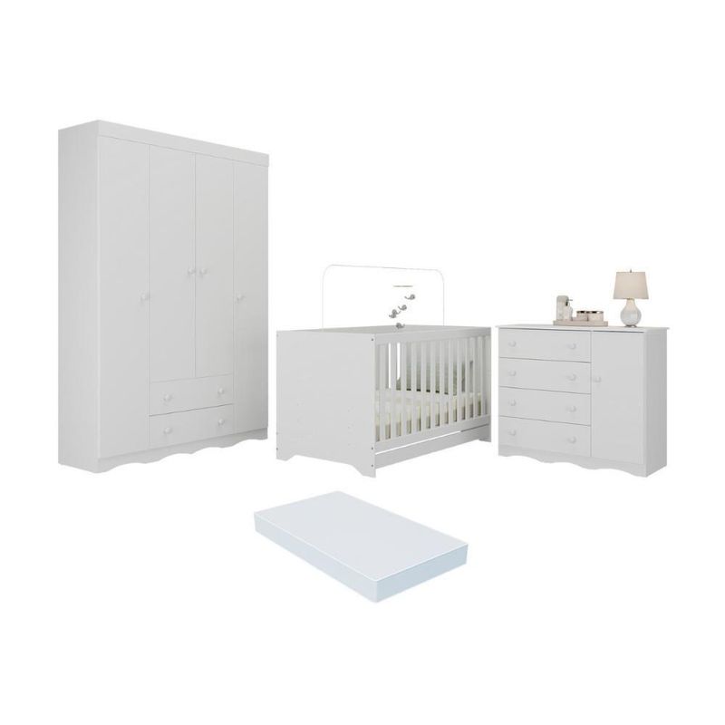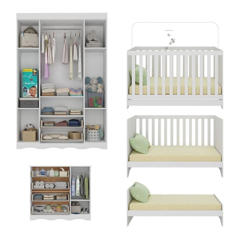 Quarto De Bebê Completo Berço Americano 3 Em 1 Colchão Realeza Multimóveis MP4599 BrancoCada detalhe do Quarto de Bebê Completo com Berço Americano 3 em 1 Colchão Incluso Multimóveis MP4599 foi pensado para acolher o seu pequeno com amor, conforto e segurança. Um espaço encantador que transmite tranquilidade e transforma os primeiros momentos do bebê em lembranças cheias de ternura.Diferenciais:- 3 anos de garantia contra defeitos de fabricação e material (exceto colchão).- Conjunto produzido em madeira de reflorestamento (MDP 12/15mm) com acabamento acetinado (cerca de 20% de brilho): sustentabilidade e durabilidade.- Berço 3 em 1 que se transforma em sofá e minicama, acompanhando o crescimento do bebê.- Lastro em madeira com 3 regulagens de altura e suporte para mosquiteiro para noites mais tranquilas e protegidas.- Grade Soft (PVC): ecologicamente correta, com matéria-prima livre de metais pesados, atóxica e com proteção antiamarelamento.- Berço certificado pelo INMETRO (Selo nº 0000085/2018).- Padrão americano (tamanho do colchão: 130x70cm).- Colchão D18 incluso: possui tratamento antiácaro, antialérgico, antimofo e um dos lados impermeável.- Guarda-roupa com 4 portas e 2 gavetas: amplo espaço para organizar roupinhas e acessórios.- Cômoda com 1 porta e 4 gavetas.- Corrediças telescópicas: abertura total e silenciosa das gavetas.- Cabideiro em alumínio: permite acomodar roupas longas e curtas para que não amassem.- Puxadores em ABS delicados e práticos.- Rodapés usinados em MDF: visual elegante para o guarda-roupa e a cômoda.- Sistema antitombamento no guarda-roupa e cômoda: proporciona segurança para o bebê e tranquilidade aos pais.Conteúdo da Embalagem:1 (um) Berço1 (um) Colchão1 (um) Guarda-roupa1 (uma) CômodaManual de MontagemKit FerragemDimensões do Produto Montado:Berço - Altura: 80,5cm | Largura: 133cm | Profundidade: 77,5cmColchão - Altura: 10cm | Largura: 130cm | Profundidade: 70cmGuarda-roupa - Altura: 184cm | Largura: 122cm | Profundidade: 41cmCômoda - Altura: 83cm | Largura: 95cm | Profundidade: 42cm*Você pode consultar as medidas detalhadas na imagem técnica do produto.Observações Importantes:*As cores dos produtos podem sofrer variações de tonalidade de acordo com as configurações do seu dispositivo.*Aqui na Loja Multimóveis, você pode concluir sua compra facilmente com toda segurança. A entrega é garantida e você está em 1° lugar.*Imagens meramente ilustrativas (decoração não inclusa).*Os produtos serão entregues desmontados e não disponibilizamos o serviço de montagem. Acabamento: Finish Foil/Pintura UV | Tonalidade: Branco | Material: MDP | Referência do Modelo: MP4599 | Coleção: Realeza | Sistema de Montagem: O produto acompanha manual de montagem juntamente com kit ferragem. O produto será entregue desmontado e não disponibilizamos o serviço de montagem. | Instruções de Cuidado: Limpar com pano seco para retirar o pó. Não utilizar produtos químicos ou abrasivos. Não aplicar lustra móveis. | Produto Composto por: 1 berço, 1 colchão, 1 guarda-roupa, 1 cômoda, manual de montagem e kit ferragem. | Altura Montado: 184 | Largura Montado: 122 | Profundidade Montado: 41 | Tamanho (L x A x P): 122 x 184 x 41 | Peso do Produto: 126 | Corrediça: Telescópica | Inclui Berço: Sim | Acompanha Colchão: Sim | Inclui Guarda-Roupa: Sim | Inclui Gaveteiro: Sim | Material do Puxador: ABS | Quantidade de Portas: 5 | Quantidade de Gavetas: 6 | Quantidade de Puxadores: 17 | RBN: 17352335011 | Quantidade de Pés: 0 | Quantidade de Peças: 4 | Material dos Pés: N/A | Produto: Conjunto de Quarto | Portátil: Não | Registro INMETRO: 0000085/2018 | Fabricante: Multimóveis | Regulamentado pelo INMETRO: Sim | Garantia do Fabricante: 3 | Requer Montagem: Sim | Tempo de Garantia: 3 meses | Descrição do Tamanho: (L x A x P): 122 x 184 x 41 cm | Tipo de cama: Berço | Marca: Multimóveis | Tamanho da cama: Berço | Quantidade de criados mudos: 0 | Tipo de madeira: N/A | Comprimento da cama: 77,5 cm | Altura da cama: 80,5 cm | É Kit de fábrica: Sim | Estilo: Moderno | Largura da cama: 133 cm | Idade recomendada: 0-24 meses | Idade: Bebê | Quantidade de caixas de embalagem: 07 | Destaque 1: Produzido em MDP com acabamento acetinado: durabilidade e resistência. | Destaque 2: Berço 3 em 1: transforma-se em sofá e minicama, acompanhando as fases da criança. | Destaque 3: Guarda-roupa com 4 portas, 2 gavetas e cabideiro de alumínio. | Destaque 4: Cômoda com 1 porta e 4 gavetas: amplo espaço interno. | Destaque 5: Corrediças telescópicas: abertura total e silenciosa das gavetas. | Baterias são necessárias?: Não | Certificação de teste externa: 0000085/2018 | Is Fragile: Não | Dimensões do item P x L x A: length#value=41;length#unit=centimeters;width#value=122;width#unit=centimeters;height#value=184;height#unit=centimeters | Quantidade de itens: 1 | Peso do item: unit=kilograms;value=126 | Número da peça: MP4599.697 | Inclui manual de montagem: Sim | Tipo de Garantia: Garantia do Fabricante | Montagem: Necessita Montagem | País de Origem: Brasil | Palavras-chave: berco com colchao, berco pequeno bercos moveis, berco que vira cama, berco mini cama, berco, quarto completo de bebe, berco e guarda roupa, kit quarto bebe, quarto de bebe completo, quarto de bebe, quarto bebe, jogo de quarto bebe, quarto completo bebe, kit quarto bebe moveis, quarto infantil bebe, kit quarto de bebe, berço e guarda roupa | Inclui cômoda trocador: Não | Cor: Branco