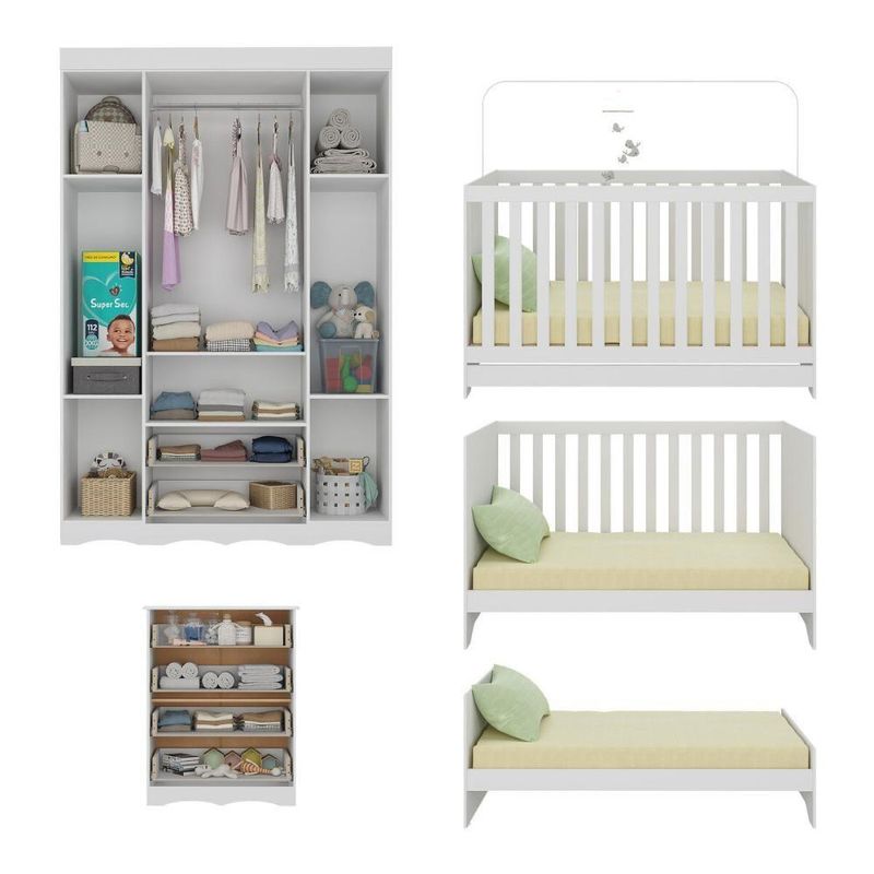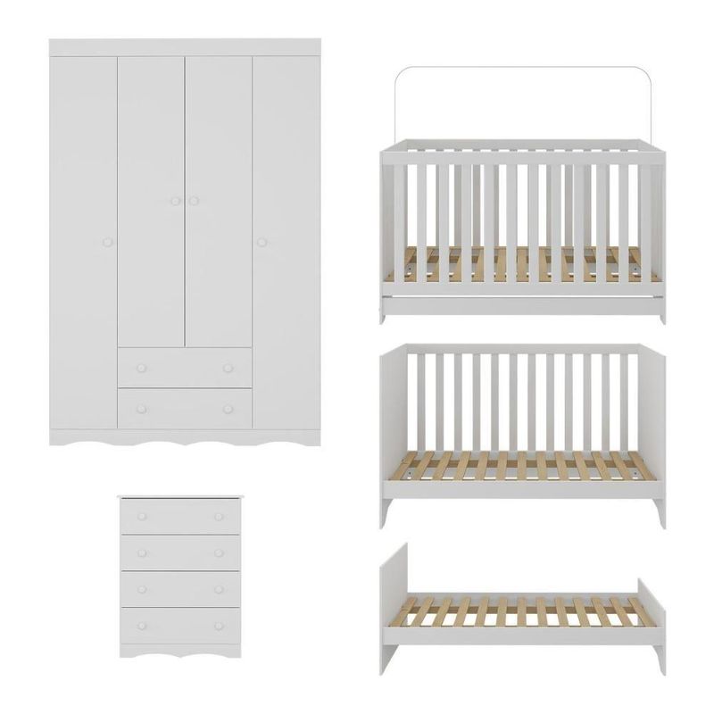 Quarto De Bebê Completo Berço Americano 3 Em 1 Colchão Realeza Multimóveis MP4603 BrancoO quarto do seu bebê é o cenário dos sonhos que estão prestes a começar. Com o Quarto de Bebê Completo com Berço Americano 3 em 1 Colchão Incluso Multimóveis MP4603, você cria um ambiente repleto de doçura, praticidade e amor — perfeito para acompanhar cada nova descoberta do seu pequeno.Diferenciais:- 3 anos de garantia contra defeitos de fabricação e material (exceto colchão).- Conjunto produzido em madeira de reflorestamento (MDP 12/15mm) com acabamento acetinado (cerca de 20% de brilho): sustentabilidade e durabilidade.- Berço 3 em 1 que se transforma em sofá e minicama, acompanhando o crescimento do bebê.- Lastro em madeira com 3 regulagens de altura e suporte para mosquiteiro para noites mais tranquilas e protegidas.- Berço certificado pelo INMETRO (Selo nº 0000085/2018).- Padrão americano (tamanho do colchão: 130x70cm).- Colchão D18 incluso: possui tratamento antiácaro, antialérgico, antimofo e um dos lados impermeável.- Grade Soft (PVC): ecologicamente correta, com matéria-prima livre de metais pesados, atóxica e com proteção antiamarelamento.- Guarda-roupa com 4 portas e 2 gavetas: amplo espaço para organizar roupinhas e acessórios.- Cômoda com 4 gavetas.- Corrediças telescópicas: abertura total e silenciosa das gavetas.- Cabideiro em alumínio: permite acomodar roupas longas e curtas para que não amassem.- Puxadores em ABS delicados e práticos.- Rodapés usinados em MDF: visual elegante para o guarda-roupa e a cômoda.- Sistema antitombamento no guarda-roupa e cômoda: proporciona segurança para o bebê e tranquilidade aos pais.Conteúdo da Embalagem:1 (um) Berço1 (um) Colchão1 (um) Guarda-roupa1 (uma) CômodaManual de MontagemKit FerragemDimensões do Produto Montado:Berço - Altura: 80,5cm | Largura: 133cm | Profundidade: 77,5cmColchão - Altura: 10cm | Largura: 130cm | Profundidade: 70cmGuarda-roupa - Altura: 184cm | Largura: 122cm | Profundidade: 41cmCômoda - Altura: 83cm | Largura: 65cm | Profundidade: 42cm*Você pode consultar as medidas detalhadas na imagem técnica do produto.Observações Importantes:*As cores dos produtos podem sofrer variações de tonalidade de acordo com as configurações do seu dispositivo.*Aqui na Loja Multimóveis, você pode concluir sua compra facilmente com toda segurança. A entrega é garantida e você está em 1° lugar.*Imagens meramente ilustrativas (decoração não inclusa).*Os produtos serão entregues desmontados e não disponibilizamos o serviço de montagem. Acabamento: Finish Foil/Pintura UV | Tonalidade: Branco | Material: MDP | Referência do Modelo: MP4603 | Coleção: Realeza | Sistema de Montagem: O produto acompanha manual de montagem juntamente com kit ferragem. O produto será entregue desmontado e não disponibilizamos o serviço de montagem. | Instruções de Cuidado: Limpar com pano seco para retirar o pó. Não utilizar produtos químicos ou abrasivos. Não aplicar lustra móveis. | Produto Composto por: 1 berço, 1 colchão, 1 guarda-roupa, 1 cômoda, manual de montagem e kit ferragem. | Altura Montado: 184 | Largura Montado: 122 | Profundidade Montado: 41 | Tamanho (L x A x P): 122 x 184 x 41 | Peso do Produto: 118 | Corrediça: Telescópica | Inclui Berço: Sim | Acompanha Colchão: Sim | Inclui Guarda-Roupa: Sim | Inclui Gaveteiro: Sim | Material do Puxador: ABS | Quantidade de Portas: 4 | Quantidade de Gavetas: 6 | Quantidade de Puxadores: 16 | RBN: 17352335011 | Quantidade de Pés: 0 | Quantidade de Peças: 4 | Material dos Pés: N/A | Produto: Conjunto de Quarto | Portátil: Não | Registro INMETRO: 0000085/2018 | Fabricante: Multimóveis | Regulamentado pelo INMETRO: Sim | Garantia do Fabricante: 3 | Requer Montagem: Sim | Tempo de Garantia: 3 meses | Descrição do Tamanho: (L x A x P): 122 x 184 x 41 cm | Tipo de cama: Berço | Marca: Multimóveis | Tamanho da cama: Berço | Quantidade de criados mudos: 0 | Tipo de madeira: N/A | Comprimento da cama: 77,5 cm | Altura da cama: 80,5 cm | É Kit de fábrica: Sim | Estilo: Moderno | Largura da cama: 133 cm | Idade recomendada: 0-24 meses | Idade: Bebê | Quantidade de caixas de embalagem: 07 | Destaque 1: Produzido em MDP com acabamento acetinado: durabilidade e resistência. | Destaque 2: Berço 3 em 1: transforma-se em sofá e minicama, acompanhando as fases da criança. | Destaque 3: Guarda-roupa com 4 portas, 2 gavetas e cabideiro de alumínio. | Destaque 4: Cômoda com 4 gavetas: amplo espaço interno. | Destaque 5: Corrediças telescópicas: abertura total e silenciosa das gavetas. | Baterias são necessárias?: Não | Certificação de teste externa: 0000085/2018 | Is Fragile: Não | Dimensões do item P x L x A: length#value=41;length#unit=centimeters;width#value=122;width#unit=centimeters;height#value=184;height#unit=centimeters | Quantidade de itens: 1 | Peso do item: unit=kilograms;value=118 | Número da peça: MP4603.697 | Inclui manual de montagem: Sim | Tipo de Garantia: Garantia do Fabricante | Montagem: Necessita Montagem | País de Origem: Brasil | Palavras-chave: berco com colchao, berco pequeno bercos moveis, berco que vira cama, berco mini cama, berco, quarto completo de bebe, berco e guarda roupa, kit quarto bebe, quarto de bebe completo, quarto de bebe, quarto bebe, jogo de quarto bebe, quarto completo bebe, kit quarto bebe moveis, quarto infantil bebe, kit quarto de bebe, berço e guarda roupa | Inclui cômoda trocador: Não | Cor: Branco