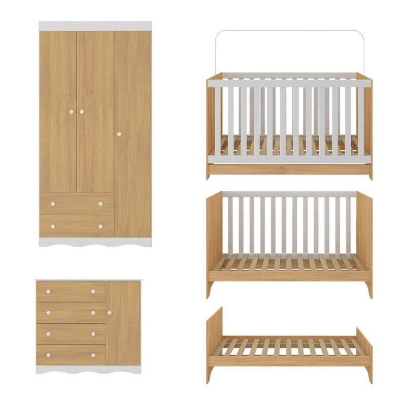 Quarto De Bebê Completo Berço Americano 3 Em 1 Colchão Realeza Multimóveis MP4607 Branco-madeirado