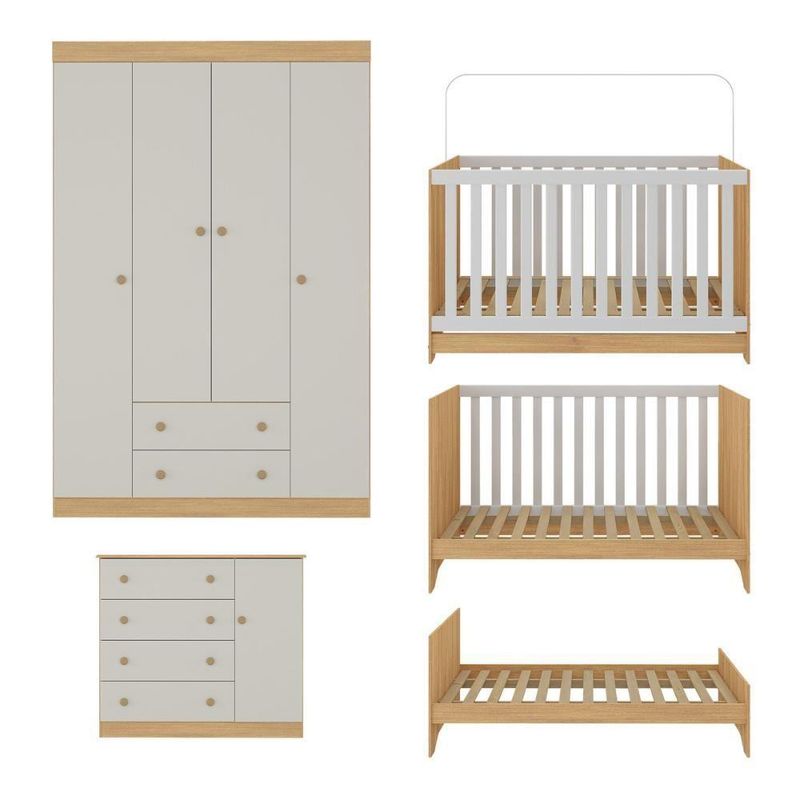 Quarto De Bebê Completo Berço Americano 3 Em 1 Encanto Multimóveis MP4581 Madeirado/off WhiteCada detalhe do Quarto de Bebê Completo com Berço Americano 3 em 1 p/Colchão 130x70cm Multimóveis MP4581 foi pensado para acolher o seu pequeno com amor, conforto e segurança. Um espaço encantador que transmite tranquilidade e transforma os primeiros momentos do bebê em lembranças cheias de ternura.Diferenciais:- 3 anos de garantia contra defeitos de fabricação e material.- Conjunto produzido em madeira de reflorestamento (MDP 12/15mm) com acabamento acetinado (cerca de 20% de brilho): sustentabilidade e durabilidade.- Berço 3 em 1 que se transforma em sofá e minicama, acompanhando o crescimento do bebê.- Lastro em madeira com 3 regulagens de altura e suporte para mosquiteiro para noites mais tranquilas e protegidas.- Grade Soft (PVC): ecologicamente correta, com matéria-prima livre de metais pesados, atóxica e com proteção antiamarelamento.- Berço certificado pelo INMETRO (Selo nº 0000085/2018).- Padrão americano (tamanho do colchão indicado: 130x70cm). Colchão não incluso.- Guarda-roupa com 4 portas e 2 gavetas: amplo espaço para organizar roupinhas e acessórios.- Cômoda com 1 porta e 4 gavetas.- Corrediças telescópicas: abertura total e silenciosa das gavetas.- Cabideiro em alumínio: permite acomodar roupas longas e curtas para que não amassem.- Puxadores em ABS delicados e práticos.- Rodapés: visual elegante para o guarda-roupa e a cômoda.- Sistema antitombamento no guarda-roupa e cômoda: proporciona segurança para o bebê e tranquilidade aos pais.Conteúdo da Embalagem:1 (um) Berço1 (um) Guarda-roupa1 (uma) CômodaManual de MontagemKit FerragemDimensões do Produto Montado:Berço - Altura: 80,5cm | Largura: 133cm | Profundidade: 77,5cmGuarda-roupa - Altura: 184cm | Largura: 122cm | Profundidade: 41cmCômoda - Altura: 83cm | Largura: 95cm | Profundidade: 42cm*Você pode consultar as medidas detalhadas na imagem técnica do produto.Observações Importantes:*As cores dos produtos podem sofrer variações de tonalidade de acordo com as configurações do seu dispositivo.*Aqui na Loja Multimóveis, você pode concluir sua compra facilmente com toda segurança. A entrega é garantida e você está em 1° lugar.*Imagens meramente ilustrativas (decoração não inclusa).*Os produtos serão entregues desmontados e não disponibilizamos o serviço de montagem. Acabamento: Finish Foil/Pintura UV | Tonalidade: Branco | Material: MDP | Referência do Modelo: MP4581 | Coleção: Encanto | Sistema de Montagem: O produto acompanha manual de montagem juntamente com kit ferragem. O produto será entregue desmontado e não disponibilizamos o serviço de montagem. | Instruções de Cuidado: Limpar com pano seco para retirar o pó. Não utilizar produtos químicos ou abrasivos. Não aplicar lustra móveis. | Produto Composto por: 1 berço, 1 guarda-roupa, 1 cômoda, manual de montagem e kit ferragem. | Altura Montado: 184 | Largura Montado: 122 | Profundidade Montado: 41 | Tamanho (L x A x P): 122 x 184 x 41 | Peso do Produto: 125 | Corrediça: Telescópica | Inclui Berço: Sim | Acompanha Colchão: Não | Inclui Guarda-Roupa: Sim | Inclui Gaveteiro: Sim | Material do Puxador: ABS | Quantidade de Portas: 5 | Quantidade de Gavetas: 6 | Quantidade de Puxadores: 17 | RBN: 17352335011 | Quantidade de Pés: 0 | Quantidade de Peças: 3 | Material dos Pés: N/A | Produto: Conjunto de Quarto | Portátil: Não | Registro INMETRO: 0000085/2018 | Fabricante: Multimóveis | Regulamentado pelo INMETRO: Sim | Garantia do Fabricante: 3 | Requer Montagem: Sim | Tempo de Garantia: 3 meses | Descrição do Tamanho: (L x A x P): 122 x 184 x 41 cm | Tipo de cama: Berço | Marca: Multimóveis | Tamanho da cama: Berço | Quantidade de criados mudos: 0 | Tipo de madeira: N/A | Comprimento da cama: 77,5 cm | Altura da cama: 80,5 cm | É Kit de fábrica: Sim | Estilo: Moderno | Largura da cama: 133 cm | Idade recomendada: 0-24 meses | Idade: Bebê | Quantidade de caixas de embalagem: 06 | Destaque 1: Produzido em MDP com acabamento acetinado: durabilidade e resistência. | Destaque 2: Berço 3 em 1: transforma-se em sofá e minicama, acompanhando as fases da criança. | Destaque 3: Guarda-roupa com 4 portas, 2 gavetas e cabideiro de alumínio. | Destaque 4: Cômoda com 1 porta e 4 gavetas: amplo espaço interno. | Destaque 5: Corrediças telescópicas: abertura total e silenciosa das gavetas. | Baterias são necessárias?: Não | Certificação de teste externa: 0000085/2018 | Is Fragile: Não | Dimensões do item P x L x A: length#value=41;length#unit=centimeters;width#value=122;width#unit=centimeters;height#value=184;height#unit=centimeters | Quantidade de itens: 1 | Peso do item: unit=kilograms;value=125 | Número da peça: MP4581.697 | Inclui manual de montagem: Sim | Tipo de Garantia: Garantia do Fabricante | Montagem: Necessita Montagem | País de Origem: Brasil | Palavras-chave: berco com colchao, berco pequeno bercos moveis, berco que vira cama, berco mini cama, berco, quarto completo de bebe, berco e guarda roupa, kit quarto bebe, quarto de bebe completo, quarto de bebe, quarto bebe, jogo de quarto bebe, quarto completo bebe, kit quarto bebe moveis, quarto infantil bebe, kit quarto de bebe, berço e guarda roupa | Inclui cômoda trocador: Não | Cor: Branco | Cor: Madeirado/Off White