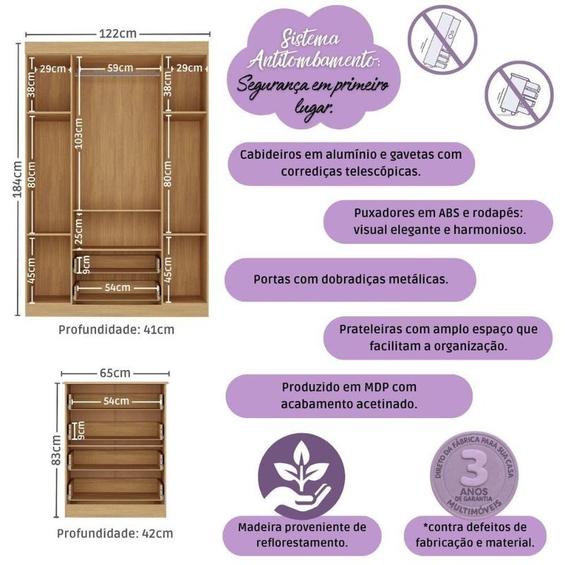 Quarto De Bebê Completo Berço Americano 3x1 Colchão Encanto Multimóveis MP4601 Madeirado/off WhiteO quarto do seu bebê é o cenário dos sonhos que estão prestes a começar. Com o Quarto de Bebê Completo com Berço Americano 3 em 1 Colchão Incluso Multimóveis MP4601, você cria um ambiente repleto de doçura, praticidade e amor — perfeito para acompanhar cada nova descoberta do seu pequeno.Diferenciais:- 3 anos de garantia contra defeitos de fabricação e material (exceto colchão).- Conjunto produzido em madeira de reflorestamento (MDP 12/15mm) com acabamento acetinado (cerca de 20% de brilho): sustentabilidade e durabilidade.- Berço 3 em 1 que se transforma em sofá e minicama, acompanhando o crescimento do bebê.- Lastro em madeira com 3 regulagens de altura e suporte para mosquiteiro para noites mais tranquilas e protegidas.- Berço certificado pelo INMETRO (Selo nº 0000085/2018).- Padrão americano (tamanho do colchão: 130x70cm).- Colchão D18 incluso: possui tratamento antiácaro, antialérgico, antimofo e um dos lados impermeável.- Grade Soft (PVC): ecologicamente correta, com matéria-prima livre de metais pesados, atóxica e com proteção antiamarelamento.- Guarda-roupa com 4 portas e 2 gavetas: amplo espaço para organizar roupinhas e acessórios.- Cômoda com 4 gavetas.- Corrediças telescópicas: abertura total e silenciosa das gavetas.- Cabideiro em alumínio: permite acomodar roupas longas e curtas para que não amassem.- Puxadores em ABS delicados e práticos.- Rodapés: visual elegante para o guarda-roupa e a cômoda.- Sistema antitombamento no guarda-roupa e cômoda: proporciona segurança para o bebê e tranquilidade aos pais.Conteúdo da Embalagem:1 (um) Berço1 (um) Colchão1 (um) Guarda-roupa1 (uma) CômodaManual de MontagemKit FerragemDimensões do Produto Montado:Berço - Altura: 80,5cm | Largura: 133cm | Profundidade: 77,5cmColchão - Altura: 10cm | Largura: 130cm | Profundidade: 70cmGuarda-roupa - Altura: 184cm | Largura: 122cm | Profundidade: 41cmCômoda - Altura: 83cm | Largura: 65cm | Profundidade: 42cm*Você pode consultar as medidas detalhadas na imagem técnica do produto.Observações Importantes:*As cores dos produtos podem sofrer variações de tonalidade de acordo com as configurações do seu dispositivo.*Aqui na Loja Multimóveis, você pode concluir sua compra facilmente com toda segurança. A entrega é garantida e você está em 1° lugar.*Imagens meramente ilustrativas (decoração não inclusa).*Os produtos serão entregues desmontados e não disponibilizamos o serviço de montagem. Acabamento: Finish Foil/Pintura UV | Tonalidade: Branco | Material: MDP | Referência do Modelo: MP4601 | Coleção: Encanto | Sistema de Montagem: O produto acompanha manual de montagem juntamente com kit ferragem. O produto será entregue desmontado e não disponibilizamos o serviço de montagem. | Instruções de Cuidado: Limpar com pano seco para retirar o pó. Não utilizar produtos químicos ou abrasivos. Não aplicar lustra móveis. | Produto Composto por: 1 berço, 1 colchão, 1 guarda-roupa, 1 cômoda, manual de montagem e kit ferragem. | Altura Montado: 184 | Largura Montado: 122 | Profundidade Montado: 41 | Tamanho (L x A x P): 122 x 184 x 41 | Peso do Produto: 118 | Corrediça: Telescópica | Inclui Berço: Sim | Acompanha Colchão: Sim | Inclui Guarda-Roupa: Sim | Inclui Gaveteiro: Sim | Material do Puxador: ABS | Quantidade de Portas: 4 | Quantidade de Gavetas: 6 | Quantidade de Puxadores: 16 | RBN: 17352335011 | Quantidade de Pés: 0 | Quantidade de Peças: 4 | Material dos Pés: N/A | Produto: Conjunto de Quarto | Portátil: Não | Registro INMETRO: 0000085/2018 | Fabricante: Multimóveis | Regulamentado pelo INMETRO: Sim | Garantia do Fabricante: 3 | Requer Montagem: Sim | Tempo de Garantia: 3 meses | Descrição do Tamanho: (L x A x P): 122 x 184 x 41 cm | Tipo de cama: Berço | Marca: Multimóveis | Tamanho da cama: Berço | Quantidade de criados mudos: 0 | Tipo de madeira: N/A | Comprimento da cama: 77,5 cm | Altura da cama: 80,5 cm | É Kit de fábrica: Sim | Estilo: Moderno | Largura da cama: 133 cm | Idade recomendada: 0-24 meses | Idade: Bebê | Quantidade de caixas de embalagem: 07 | Destaque 1: Produzido em MDP com acabamento acetinado: durabilidade e resistência. | Destaque 2: Berço 3 em 1: transforma-se em sofá e minicama, acompanhando as fases da criança. | Destaque 3: Guarda-roupa com 4 portas, 2 gavetas e cabideiro de alumínio. | Destaque 4: Cômoda com 4 gavetas: amplo espaço interno. | Destaque 5: Corrediças telescópicas: abertura total e silenciosa das gavetas. | Baterias são necessárias?: Não | Certificação de teste externa: 0000085/2018 | Is Fragile: Não | Dimensões do item P x L x A: length#value=41;length#unit=centimeters;width#value=122;width#unit=centimeters;height#value=184;height#unit=centimeters | Quantidade de itens: 1 | Peso do item: unit=kilograms;value=118 | Número da peça: MP4601.697 | Inclui manual de montagem: Sim | Tipo de Garantia: Garantia do Fabricante | Montagem: Necessita Montagem | País de Origem: Brasil | Palavras-chave: berco com colchao, berco pequeno bercos moveis, berco que vira cama, berco mini cama, berco, quarto completo de bebe, berco e guarda roupa, kit quarto bebe, quarto de bebe completo, quarto de bebe, quarto bebe, jogo de quarto bebe, quarto completo bebe, kit quarto bebe moveis, quarto infantil bebe, kit quarto de bebe, berço e guarda roupa | Inclui cômoda trocador: Não | Cor: Madeirado/Off White