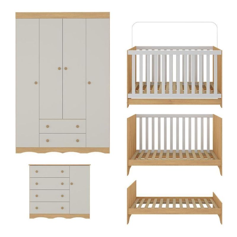 Quarto De Bebê Completo Berço Americano 3x1 Colchão Realeza Multimóveis MP4599 Madeirado/off WhiteCada detalhe do Quarto de Bebê Completo com Berço Americano 3 em 1 Colchão Incluso Multimóveis MP4599 foi pensado para acolher o seu pequeno com amor, conforto e segurança. Um espaço encantador que transmite tranquilidade e transforma os primeiros momentos do bebê em lembranças cheias de ternura.Diferenciais:- 3 anos de garantia contra defeitos de fabricação e material (exceto colchão).- Conjunto produzido em madeira de reflorestamento (MDP 12/15mm) com acabamento acetinado (cerca de 20% de brilho): sustentabilidade e durabilidade.- Berço 3 em 1 que se transforma em sofá e minicama, acompanhando o crescimento do bebê.- Lastro em madeira com 3 regulagens de altura e suporte para mosquiteiro para noites mais tranquilas e protegidas.- Grade Soft (PVC): ecologicamente correta, com matéria-prima livre de metais pesados, atóxica e com proteção antiamarelamento.- Berço certificado pelo INMETRO (Selo nº 0000085/2018).- Padrão americano (tamanho do colchão: 130x70cm).- Colchão D18 incluso: possui tratamento antiácaro, antialérgico, antimofo e um dos lados impermeável.- Guarda-roupa com 4 portas e 2 gavetas: amplo espaço para organizar roupinhas e acessórios.- Cômoda com 1 porta e 4 gavetas.- Corrediças telescópicas: abertura total e silenciosa das gavetas.- Cabideiro em alumínio: permite acomodar roupas longas e curtas para que não amassem.- Puxadores em ABS delicados e práticos.- Rodapés usinados em MDF: visual elegante para o guarda-roupa e a cômoda.- Sistema antitombamento no guarda-roupa e cômoda: proporciona segurança para o bebê e tranquilidade aos pais.Conteúdo da Embalagem:1 (um) Berço1 (um) Colchão1 (um) Guarda-roupa1 (uma) CômodaManual de MontagemKit FerragemDimensões do Produto Montado:Berço - Altura: 80,5cm | Largura: 133cm | Profundidade: 77,5cmColchão - Altura: 10cm | Largura: 130cm | Profundidade: 70cmGuarda-roupa - Altura: 184cm | Largura: 122cm | Profundidade: 41cmCômoda - Altura: 83cm | Largura: 95cm | Profundidade: 42cm*Você pode consultar as medidas detalhadas na imagem técnica do produto.Observações Importantes:*As cores dos produtos podem sofrer variações de tonalidade de acordo com as configurações do seu dispositivo.*Aqui na Loja Multimóveis, você pode concluir sua compra facilmente com toda segurança. A entrega é garantida e você está em 1° lugar.*Imagens meramente ilustrativas (decoração não inclusa).*Os produtos serão entregues desmontados e não disponibilizamos o serviço de montagem. Acabamento: Finish Foil/Pintura UV | Tonalidade: Branco | Material: MDP | Referência do Modelo: MP4599 | Coleção: Realeza | Sistema de Montagem: O produto acompanha manual de montagem juntamente com kit ferragem. O produto será entregue desmontado e não disponibilizamos o serviço de montagem. | Instruções de Cuidado: Limpar com pano seco para retirar o pó. Não utilizar produtos químicos ou abrasivos. Não aplicar lustra móveis. | Produto Composto por: 1 berço, 1 colchão, 1 guarda-roupa, 1 cômoda, manual de montagem e kit ferragem. | Altura Montado: 184 | Largura Montado: 122 | Profundidade Montado: 41 | Tamanho (L x A x P): 122 x 184 x 41 | Peso do Produto: 126 | Corrediça: Telescópica | Inclui Berço: Sim | Acompanha Colchão: Sim | Inclui Guarda-Roupa: Sim | Inclui Gaveteiro: Sim | Material do Puxador: ABS | Quantidade de Portas: 5 | Quantidade de Gavetas: 6 | Quantidade de Puxadores: 17 | RBN: 17352335011 | Quantidade de Pés: 0 | Quantidade de Peças: 4 | Material dos Pés: N/A | Produto: Conjunto de Quarto | Portátil: Não | Registro INMETRO: 0000085/2018 | Fabricante: Multimóveis | Regulamentado pelo INMETRO: Sim | Garantia do Fabricante: 3 | Requer Montagem: Sim | Tempo de Garantia: 3 meses | Descrição do Tamanho: (L x A x P): 122 x 184 x 41 cm | Tipo de cama: Berço | Marca: Multimóveis | Tamanho da cama: Berço | Quantidade de criados mudos: 0 | Tipo de madeira: N/A | Comprimento da cama: 77,5 cm | Altura da cama: 80,5 cm | É Kit de fábrica: Sim | Estilo: Moderno | Largura da cama: 133 cm | Idade recomendada: 0-24 meses | Idade: Bebê | Quantidade de caixas de embalagem: 07 | Destaque 1: Produzido em MDP com acabamento acetinado: durabilidade e resistência. | Destaque 2: Berço 3 em 1: transforma-se em sofá e minicama, acompanhando as fases da criança. | Destaque 3: Guarda-roupa com 4 portas, 2 gavetas e cabideiro de alumínio. | Destaque 4: Cômoda com 1 porta e 4 gavetas: amplo espaço interno. | Destaque 5: Corrediças telescópicas: abertura total e silenciosa das gavetas. | Baterias são necessárias?: Não | Certificação de teste externa: 0000085/2018 | Is Fragile: Não | Dimensões do item P x L x A: length#value=41;length#unit=centimeters;width#value=122;width#unit=centimeters;height#value=184;height#unit=centimeters | Quantidade de itens: 1 | Peso do item: unit=kilograms;value=126 | Número da peça: MP4599.697 | Inclui manual de montagem: Sim | Tipo de Garantia: Garantia do Fabricante | Montagem: Necessita Montagem | País de Origem: Brasil | Palavras-chave: berco com colchao, berco pequeno bercos moveis, berco que vira cama, berco mini cama, berco, quarto completo de bebe, berco e guarda roupa, kit quarto bebe, quarto de bebe completo, quarto de bebe, quarto bebe, jogo de quarto bebe, quarto completo bebe, kit quarto bebe moveis, quarto infantil bebe, kit quarto de bebe, berço e guarda roupa | Inclui cômoda trocador: Não | Cor: Madeirado/Off White