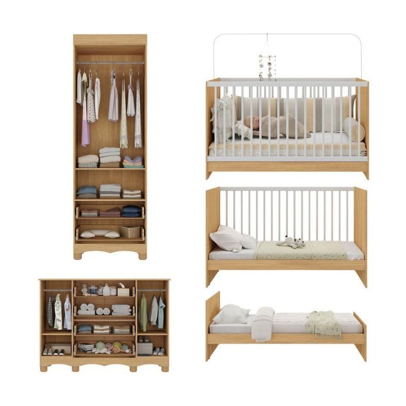 Quarto De Bebê Completo Com Berço 3 Em 1 Para Colchão 130x60cm Luna Multimóveis MP4532 Madeirado/brancoO Quarto de Bebê Completo com Berço 3 em 1 para Colchão 130x60cm Luna Multimóveis MP4532 é a escolha ideal para quem busca praticidade sem abrir mão do estilo. Com design moderno, materiais duráveis e acabamento encantador, ele oferece tudo o que você precisa para deixar o ambiente do bebê funcional, aconchegante e cheio de amor.Diferenciais:- Conjunto produzido em MDP/MDF (12/15mm) de reflorestamento com acabamento acetinado (cerca de 20% de brilho): sustentabilidade e durabilidade.- Berço 3 em 1 que se transforma em sofá e minicama, acompanhando o crescimento do bebê.- Lastro em madeira com 3 regulagens de altura e suporte para mosquiteiro para noites mais tranquilas e protegidas.- Berço certificado pelo INMETRO (Selo nº 000332/2025).- Padrão nacional (tamanho do colchão indicado: 130x60cm). Colchão não incluso.- Frentes e rodapés (guarda-roupa e cômoda) produzidos em MDF.- Guarda-roupa com 2 portas e 2 gavetas: amplo espaço para organizar roupinhas e acessórios.- Cômoda com 2 portas e 4 gavetas.- Detalhes de vidro incolor temperado 3mm nas portas: toque charmoso que permite visualizar o interior dos móveis.- Corrediças telescópicas: abertura total e silenciosa das gavetas.- Cabideiro em alumínio: permite acomodar roupas longas e curtas para que não amassem.- Puxadores em ABS delicados e práticos.- Rodapés usinados e pés em polipropileno: elegância e estabilidade para o guarda-roupa e a cômoda.- Sistema antitombamento no guarda-roupa e cômoda: proporciona segurança para o bebê e tranquilidade aos pais.Conteúdo da Embalagem:1 (um) Berço1 (um) Guarda-roupa1 (uma) CômodaManual de MontagemKit FerragemDimensões do Produto Montado:Berço - Altura: 80,5cm | Largura: 133cm | Profundidade: 66cmGuarda-roupa - Altura: 189cm | Largura: 62cm | Profundidade: 41cmCômoda - Altura: 88cm | Largura: 125cm | Profundidade: 42cm*Você pode consultar as medidas detalhadas na imagem técnica do produto.Observações Importantes:*As cores dos produtos podem sofrer variações de tonalidade de acordo com as configurações do seu dispositivo.*Obrigatório fixar o guarda-roupa e a cômoda na parede.*Imagens meramente ilustrativas (decoração não inclusa).*Os produtos serão entregues desmontados e não disponibilizamos o serviço de montagem. Acabamento: Finish Foil/Pintura UV | Tonalidade: Branco | Material: MDF/MDP | Referência do Modelo: MP4532 | Coleção: Luna | Sistema de Montagem: O produto acompanha manual de montagem juntamente com kit ferragem. O produto será entregue desmontado e não disponibilizamos o serviço de montagem. | Instruções de Cuidado: Limpar com pano seco para retirar o pó. Não utilizar produtos químicos ou abrasivos. Não aplicar lustra móveis. | Produto Composto por: 1 berço, 1 guarda-roupa, 1 cômoda, manual de montagem e kit ferragem. | Altura Montado: 189 | Largura Montado: 62 | Profundidade Montado: 41 | Tamanho (L x A x P): 62 x 189 x 41 | Peso do Produto: 103 | Corrediça: Telescópica | Inclui Berço: Sim | Acompanha Colchão: Não | Inclui Guarda-Roupa: Sim | Inclui Gaveteiro: Sim | Material do Puxador: ABS | Quantidade de Portas: 4 | Quantidade de Gavetas: 6 | Quantidade de Puxadores: 16 | RBN: 17352335011 | Quantidade de Pés: 10 | Quantidade de Peças: 3 | Material dos Pés: Polipropileno | Produto: Conjunto de Quarto | Portátil: Não | Registro INMETRO: 000332/2025 | Fabricante: Multimóveis | Regulamentado pelo INMETRO: Sim | Garantia do Fabricante: 3 | Requer Montagem: Sim | Altura do Produto com Embalagem: 47 | Largura do Produto com Embalagem: 74 | Comprimento do Produto com Embalagem: 188 | Peso do Produto com Embalagem: 103 | Nome do Produto no Fornecedor: Quarto de Bebê Completo com Berço 3 em 1 para Colchão 130x60cm Luna Multimóveis MP4532 Branco | Estado de Origem: RS | Produto precisa de Montagem?: Sim, sugerimos a contratação do nosso serviço de montagem (para os CEPs em que o serviço está disponível) ou de algum profissional experiente de sua preferência | Tempo de Garantia: 3 meses | Descrição do Tamanho: (L x A x P): 62 x 189 x 41 cm | Tipo de cama: Berço | Marca: Multimóveis | Tamanho da cama: Berço | Quantidade de criados mudos: 0 | Tipo de madeira: N/A | Comprimento da cama: 66 cm | Altura da cama: 80,5 cm | É Kit de fábrica: Sim | Estilo: Moderno | Largura da cama: 133 cm | Idade recomendada: 0-24 meses | Idade: Bebê | Quantidade de caixas de embalagem: 05 | Destaque 1: Produzido em MDP/MDF com acabamento acetinado: durabilidade e resistência. | Destaque 2: Berço 3 em 1: transforma-se em sofá e minicama, acompanhando as fases da criança. | Destaque 3: Guarda-roupa com 2 portas e 2 gavetas, cômoda com 2 portas e 4 gavetas: amplo espaço interno. | Destaque 4: Detalhes de vidro nas portas: permitem enxergar as roupas no interior, oferecendo um visual elegante e descontraído ao ambiente. | Destaque 5: Corrediças telescópicas: abertura total e silenciosa das gavetas. | Baterias são necessárias?: Não | Certificação de teste externa: 000332/2025 | Is Fragile: Sim | Dimensões do item P x L x A: length#value=41;length#unit=centimeters;width#value=62;width#unit=centimeters;height#value=189;height#unit=centimeters | Quantidade de itens: 1 | Peso do item: unit=kilograms;value=103 | Número da peça: MP4532.697 | Inclui manual de montagem: Sim | Tipo de Garantia: Garantia do Fabricante | Montagem: Necessita Montagem | País de Origem: Brasil | Palavras-chave: berco com colchao, berco pequeno bercos moveis, berco que vira cama, berco mini cama, berco, quarto completo de bebe, berco e guarda roupa, kit quarto bebe, quarto de bebe completo, quarto de bebe, quarto bebe, jogo de quarto bebe, quarto completo bebe, kit quarto bebe moveis, quarto infantil bebe, kit quarto de bebe, berço e guarda roupa | Inclui cômoda trocador: Não | Cor: Madeirado/Branco