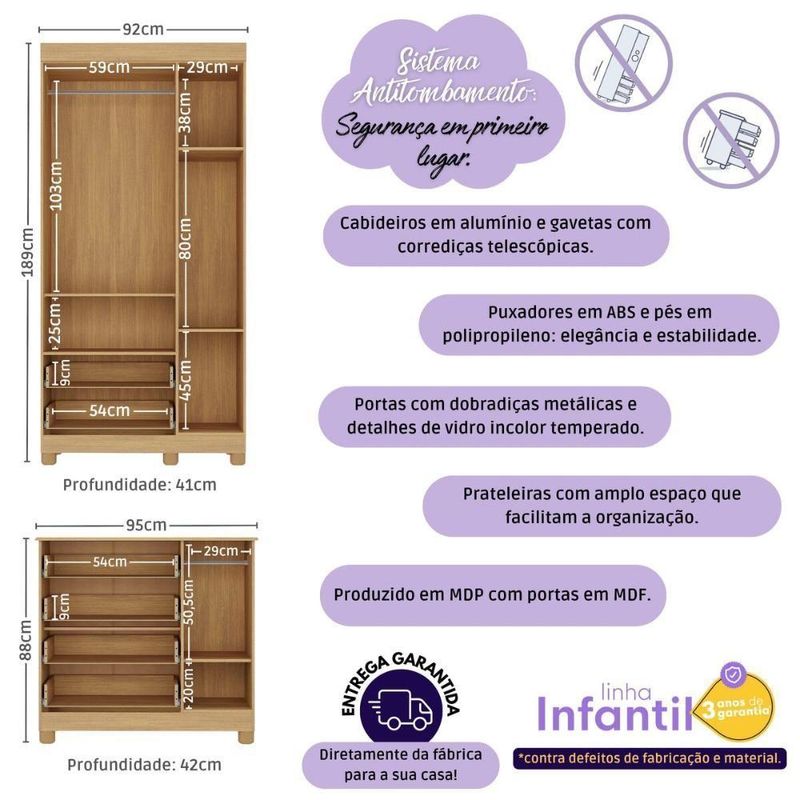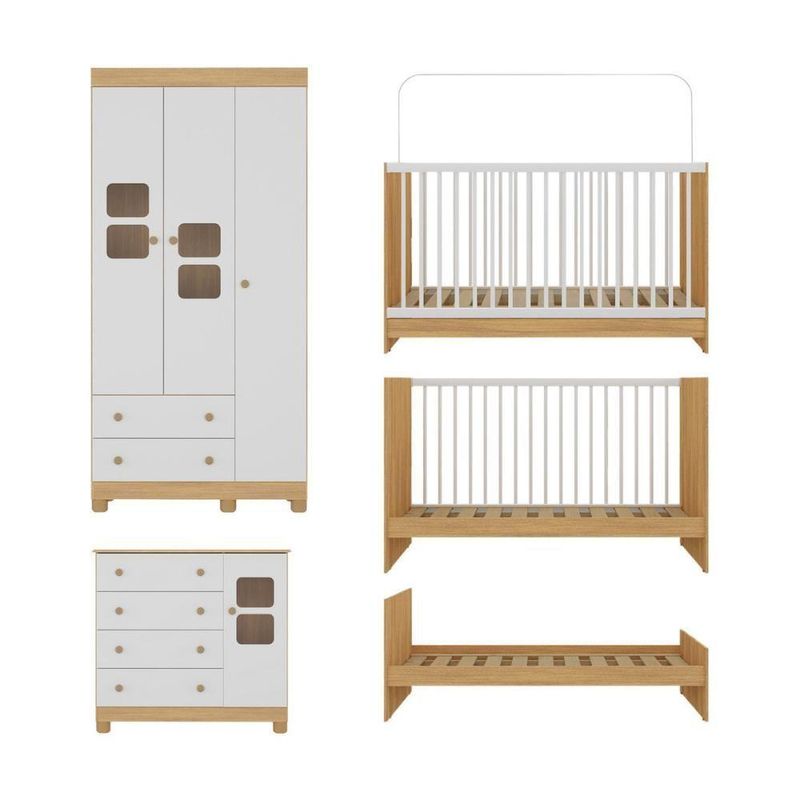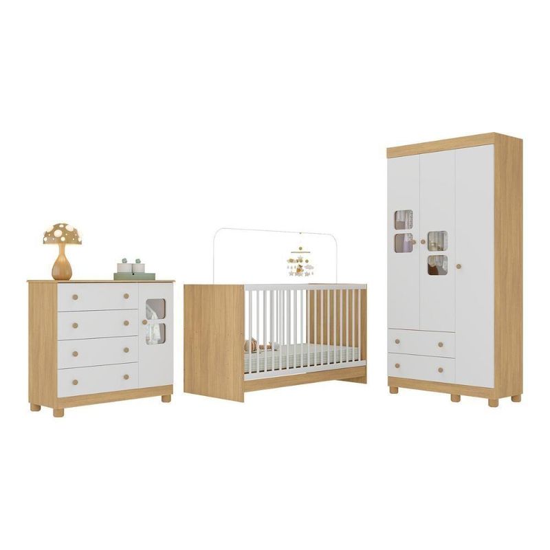 Quarto De Bebê Completo Com Berço 3 Em 1 Para Colchão 130x60cm Sol Multimóveis MP4526 Madeirado/brancoCada detalhe do Quarto de Bebê Completo com Berço 3 em 1 para Colchão 130x60cm Sol Multimóveis MP4526 foi pensado para receber seu pequeno com carinho e segurança. Um conjunto que une estilo, organização e qualidade, criando o cenário perfeito para os primeiros sorrisos, descobertas e sonhos do bebê.Diferenciais:- Conjunto produzido em MDP/MDF (12/15mm) de reflorestamento com acabamento acetinado (cerca de 20% de brilho): sustentabilidade e durabilidade.- Berço 3 em 1 que se transforma em sofá e minicama, acompanhando o crescimento do bebê.- Lastro em madeira com 3 regulagens de altura e suporte para mosquiteiro para noites mais tranquilas e protegidas.- Berço certificado pelo INMETRO (Selo nº 000332/2025).- Padrão nacional (tamanho do colchão indicado: 130x60cm). Colchão não incluso.- Frentes (guarda-roupa e cômoda) produzidas em MDF.- Guarda-roupa com 3 portas e 2 gavetas: amplo espaço para organizar roupinhas e acessórios.- Cômoda com 1 porta e 4 gavetas.- Detalhes de vidro incolor temperado 3mm nas portas: toque charmoso que permite visualizar o interior dos móveis.- Corrediças telescópicas: abertura total e silenciosa das gavetas.- Cabideiro em alumínio: permite acomodar roupas longas e curtas para que não amassem.- Puxadores em ABS delicados e práticos.- Pés em polipropileno e rodapés: visual elegante e estabilidade para o guarda-roupa e a cômoda.- Sistema antitombamento no guarda-roupa e cômoda: proporciona segurança para o bebê e tranquilidade aos pais.Conteúdo da Embalagem:1 (um) Berço1 (um) Guarda-roupa1 (uma) CômodaManual de MontagemKit FerragemDimensões do Produto Montado:Berço - Altura: 80,5cm | Largura: 133cm | Profundidade: 66cmGuarda-roupa - Altura: 189cm | Largura: 92cm | Profundidade: 41cmCômoda - Altura: 88cm | Largura: 95cm | Profundidade: 42cm*Você pode consultar as medidas detalhadas na imagem técnica do produto.Observações Importantes:*As cores dos produtos podem sofrer variações de tonalidade de acordo com as configurações do seu dispositivo.*Obrigatório fixar o guarda-roupa e a cômoda na parede.*Imagens meramente ilustrativas (decoração não inclusa).*Os produtos serão entregues desmontados e não disponibilizamos o serviço de montagem. Acabamento: Finish Foil/Pintura UV | Tonalidade: Branco | Material: MDF/MDP | Referência do Modelo: MP4526 | Coleção: Sol | Sistema de Montagem: O produto acompanha manual de montagem juntamente com kit ferragem. O produto será entregue desmontado e não disponibilizamos o serviço de montagem. | Instruções de Cuidado: Limpar com pano seco para retirar o pó. Não utilizar produtos químicos ou abrasivos. Não aplicar lustra móveis. | Produto Composto por: 1 berço, 1 guarda-roupa, 1 cômoda, manual de montagem e kit ferragem. | Altura Montado: 189 | Largura Montado: 92 | Profundidade Montado: 41 | Tamanho (L x A x P): 92 x 189 x 41 | Peso do Produto: 108 | Corrediça: Telescópica | Inclui Berço: Sim | Acompanha Colchão: Não | Inclui Guarda-Roupa: Sim | Inclui Gaveteiro: Sim | Material do Puxador: ABS | Quantidade de Portas: 4 | Quantidade de Gavetas: 6 | Quantidade de Puxadores: 16 | RBN: 17352335011 | Quantidade de Pés: 11 | Quantidade de Peças: 3 | Material dos Pés: Polipropileno | Produto: Conjunto de Quarto | Portátil: Não | Registro INMETRO: 000332/2025 | Fabricante: Multimóveis | Regulamentado pelo INMETRO: Sim | Garantia do Fabricante: 3 | Requer Montagem: Sim | Altura do Produto com Embalagem: 49 | Largura do Produto com Embalagem: 74 | Comprimento do Produto com Embalagem: 188 | Peso do Produto com Embalagem: 108 | Nome do Produto no Fornecedor: Quarto de Bebê Completo com Berço 3 em 1 para Colchão 130x60cm Sol Multimóveis MP4526 Branco | Estado de Origem: RS | Produto precisa de Montagem?: Sim, sugerimos a contratação do nosso serviço de montagem (para os CEPs em que o serviço está disponível) ou de algum profissional experiente de sua preferência | Tempo de Garantia: 3 meses | Descrição do Tamanho: (L x A x P): 92 x 189 x 41 cm | Tipo de cama: Berço | Marca: Multimóveis | Tamanho da cama: Berço | Quantidade de criados mudos: 0 | Tipo de madeira: N/A | Comprimento da cama: 66 cm | Altura da cama: 80,5 cm | É Kit de fábrica: Sim | Estilo: Moderno | Largura da cama: 133 cm | Idade recomendada: 0-24 meses | Idade: Bebê | Quantidade de caixas de embalagem: 05 | Destaque 1: Produzido em MDP/MDF com acabamento acetinado: durabilidade e resistência. | Destaque 2: Berço 3 em 1: transforma-se em sofá e minicama, acompanhando as fases da criança. | Destaque 3: Guarda-roupa com 3 portas e 2 gavetas, cômoda com 1 porta e 4 gavetas: amplo espaço interno. | Destaque 4: Detalhes de vidro nas portas: permitem enxergar as roupas no interior, oferecendo um visual elegante e descontraído ao ambiente. | Destaque 5: Corrediças telescópicas: abertura total e silenciosa das gavetas. | Baterias são necessárias?: Não | Certificação de teste externa: 000332/2025 | Is Fragile: Sim | Dimensões do item P x L x A: length#value=41;length#unit=centimeters;width#value=92;width#unit=centimeters;height#value=189;height#unit=centimeters | Quantidade de itens: 1 | Peso do item: unit=kilograms;value=108 | Número da peça: MP4526.697 | Inclui manual de montagem: Sim | Tipo de Garantia: Garantia do Fabricante | Montagem: Necessita Montagem | País de Origem: Brasil | Palavras-chave: berco com colchao, berco pequeno bercos moveis, berco que vira cama, berco mini cama, berco, quarto completo de bebe, berco e guarda roupa, kit quarto bebe, quarto de bebe completo, quarto de bebe, quarto bebe, jogo de quarto bebe, quarto completo bebe, kit quarto bebe moveis, quarto infantil bebe, kit quarto de bebe, berço e guarda roupa | Inclui cômoda trocador: Não | Cor: Madeirado/Branco