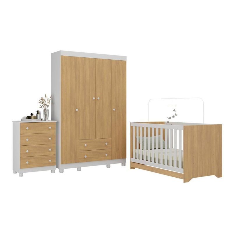 Quarto De Bebê Completo Com Berço Americano 3 Em 1 Allegra Multimóveis MP4586 Branco/madeiradoO quarto do seu bebê é o cenário dos sonhos que estão prestes a começar. Com o Quarto de Bebê Completo com Berço Americano 3 em 1 p/Colchão 130x70cm Multimóveis MP4586, você cria um ambiente repleto de doçura, praticidade e amor — perfeito para acompanhar cada nova descoberta do seu pequeno.Diferenciais:- 3 anos de garantia contra defeitos de fabricação e material.- Conjunto produzido em madeira de reflorestamento (MDP 12/15mm) com acabamento acetinado (cerca de 20% de brilho): sustentabilidade e durabilidade.- Berço 3 em 1 que se transforma em sofá e minicama, acompanhando o crescimento do bebê.- Lastro em madeira com 3 regulagens de altura e suporte para mosquiteiro para noites mais tranquilas e protegidas.- Berço certificado pelo INMETRO (Selo nº 0000085/2018).- Padrão americano (tamanho do colchão indicado: 130x70cm). Colchão não incluso.- Grade Soft (PVC): ecologicamente correta, com matéria-prima livre de metais pesados, atóxica e com proteção antiamarelamento.- Guarda-roupa com 4 portas e 2 gavetas: amplo espaço para organizar roupinhas e acessórios.- Cômoda com 4 gavetas.- Corrediças telescópicas: abertura total e silenciosa das gavetas.- Cabideiro em alumínio: permite acomodar roupas longas e curtas para que não amassem.- Puxadores em ABS delicados e práticos.- Pés em polipropileno e rodapés: visual elegante e estabilidade para o guarda-roupa e a cômoda.- Sistema antitombamento no guarda-roupa e cômoda: proporciona segurança para o bebê e tranquilidade aos pais.Conteúdo da Embalagem:1 (um) Berço1 (um) Guarda-roupa1 (uma) CômodaManual de MontagemKit FerragemDimensões do Produto Montado:Berço - Altura: 80,5cm | Largura: 133cm | Profundidade: 77,5cmGuarda-roupa - Altura: 189cm | Largura: 122cm | Profundidade: 41cmCômoda - Altura: 88cm | Largura: 65cm | Profundidade: 42cm*Você pode consultar as medidas detalhadas na imagem técnica do produto.Observações Importantes:*As cores dos produtos podem sofrer variações de tonalidade de acordo com as configurações do seu dispositivo.*Aqui na Loja Multimóveis, você pode concluir sua compra facilmente com toda segurança. A entrega é garantida e você está em 1° lugar.*Imagens meramente ilustrativas (decoração não inclusa).*Os produtos serão entregues desmontados e não disponibilizamos o serviço de montagem. Acabamento: Finish Foil/Pintura UV | Tonalidade: Branco | Material: MDP | Referência do Modelo: MP4586 | Coleção: Allegra | Sistema de Montagem: O produto acompanha manual de montagem juntamente com kit ferragem. O produto será entregue desmontado e não disponibilizamos o serviço de montagem. | Instruções de Cuidado: Limpar com pano seco para retirar o pó. Não utilizar produtos químicos ou abrasivos. Não aplicar lustra móveis. | Produto Composto por: 1 berço, 1 guarda-roupa, 1 cômoda, manual de montagem e kit ferragem. | Altura Montado: 189 | Largura Montado: 122 | Profundidade Montado: 41 | Tamanho (L x A x P): 122 x 189 x 41 | Peso do Produto: 116 | Corrediça: Telescópica | Inclui Berço: Sim | Acompanha Colchão: Não | Inclui Guarda-Roupa: Sim | Inclui Gaveteiro: Sim | Material do Puxador: ABS | Quantidade de Portas: 4 | Quantidade de Gavetas: 6 | Quantidade de Puxadores: 16 | RBN: 17352335011 | Quantidade de Pés: 12 | Quantidade de Peças: 3 | Material dos Pés: Polipropileno | Produto: Conjunto de Quarto | Portátil: Não | Registro INMETRO: 0000085/2018 | Fabricante: Multimóveis | Regulamentado pelo INMETRO: Sim | Garantia do Fabricante: 3 | Requer Montagem: Sim | Tempo de Garantia: 3 meses | Descrição do Tamanho: (L x A x P): 122 x 189 x 41 cm | Tipo de cama: Berço | Marca: Multimóveis | Tamanho da cama: Berço | Quantidade de criados mudos: 0 | Tipo de madeira: N/A | Comprimento da cama: 77,5 cm | Altura da cama: 80,5 cm | É Kit de fábrica: Sim | Estilo: Moderno | Largura da cama: 133 cm | Idade recomendada: 0-24 meses | Idade: Bebê | Quantidade de caixas de embalagem: 06 | Destaque 1: Produzido em MDP com acabamento acetinado: durabilidade e resistência. | Destaque 2: Berço 3 em 1: transforma-se em sofá e minicama, acompanhando as fases da criança. | Destaque 3: Guarda-roupa com 4 portas, 2 gavetas e cabideiro de alumínio. | Destaque 4: Cômoda com 4 gavetas: amplo espaço interno. | Destaque 5: Corrediças telescópicas: abertura total e silenciosa das gavetas. | Baterias são necessárias?: Não | Certificação de teste externa: 0000085/2018 | Is Fragile: Não | Dimensões do item P x L x A: length#value=41;length#unit=centimeters;width#value=122;width#unit=centimeters;height#value=189;height#unit=centimeters | Quantidade de itens: 1 | Peso do item: unit=kilograms;value=116 | Número da peça: MP4586.697 | Inclui manual de montagem: Sim | Tipo de Garantia: Garantia do Fabricante | Montagem: Necessita Montagem | País de Origem: Brasil | Palavras-chave: berco com colchao, berco pequeno bercos moveis, berco que vira cama, berco mini cama, berco, quarto completo de bebe, berco e guarda roupa, kit quarto bebe, quarto de bebe completo, quarto de bebe, quarto bebe, jogo de quarto bebe, quarto completo bebe, kit quarto bebe moveis, quarto infantil bebe, kit quarto de bebe, berço e guarda roupa | Inclui cômoda trocador: Não | Cor: Branco/Madeirado