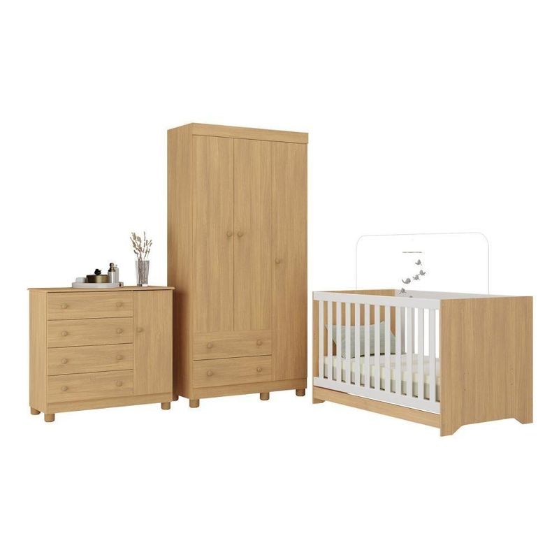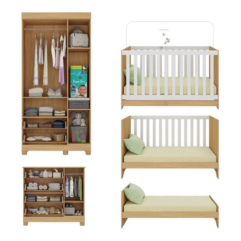 Quarto De Bebê Completo Com Berço Americano 3 Em 1 Allegra Multimóveis MP4590 MadeiradoMais do que um conjunto de móveis, o Quarto de Bebê Completo com Berço Americano 3 em 1 p/Colchão 130x70cm Multimóveis MP4590 é um abraço em forma de ambiente. Feito para garantir segurança, conforto e funcionalidade, ele envolve o bebê com o carinho que todo início de vida merece.Diferenciais:- 3 anos de garantia contra defeitos de fabricação e material.- Conjunto produzido em madeira de reflorestamento (MDP 12/15mm) com acabamento acetinado (cerca de 20% de brilho): sustentabilidade e durabilidade.- Berço 3 em 1 que se transforma em sofá e minicama, acompanhando o crescimento do bebê.- Lastro em madeira com 3 regulagens de altura e suporte para mosquiteiro para noites mais tranquilas e protegidas.- Berço certificado pelo INMETRO (Selo nº 0000085/2018).- Padrão americano (tamanho do colchão indicado: 130x70cm). Colchão não incluso. - Grade Soft (PVC): ecologicamente correta, com matéria-prima livre de metais pesados, atóxica e com proteção antiamarelamento.- Guarda-roupa com 3 portas e 2 gavetas: amplo espaço para organizar roupinhas e acessórios.- Cômoda com 1 porta e 4 gavetas.- Corrediças telescópicas: abertura total e silenciosa das gavetas.- Cabideiro em alumínio: permite acomodar roupas longas e curtas para que não amassem.- Puxadores em ABS delicados e práticos.- Pés em polipropileno e rodapés: visual elegante e estabilidade para o guarda-roupa e a cômoda.- Sistema antitombamento no guarda-roupa e cômoda: proporciona segurança para o bebê e tranquilidade aos pais.Conteúdo da Embalagem:1 (um) Berço1 (um) Guarda-roupa1 (uma) CômodaManual de MontagemKit FerragemDimensões do Produto Montado:Berço - Altura: 80,5cm | Largura: 133cm | Profundidade: 77,5cmGuarda-roupa - Altura: 189cm | Largura: 92cm | Profundidade: 41cmCômoda - Altura: 88cm | Largura: 95cm | Profundidade: 42cm*Você pode consultar as medidas detalhadas na imagem técnica do produto.Observações Importantes:*As cores dos produtos podem sofrer variações de tonalidade de acordo com as configurações do seu dispositivo.*Aqui na Loja Multimóveis, você pode concluir sua compra facilmente com toda segurança. A entrega é garantida e você está em 1° lugar.*Imagens meramente ilustrativas (decoração não inclusa).*Os produtos serão entregues desmontados e não disponibilizamos o serviço de montagem. Acabamento: Finish Foil/Pintura UV | Tonalidade: Branco | Material: MDP | Referência do Modelo: MP4590 | Coleção: Allegra | Sistema de Montagem: O produto acompanha manual de montagem juntamente com kit ferragem. O produto será entregue desmontado e não disponibilizamos o serviço de montagem. | Instruções de Cuidado: Limpar com pano seco para retirar o pó. Não utilizar produtos químicos ou abrasivos. Não aplicar lustra móveis. | Produto Composto por: 1 berço, 1 guarda-roupa, 1 cômoda, manual de montagem e kit ferragem. | Altura Montado: 189 | Largura Montado: 92 | Profundidade Montado: 41 | Tamanho (L x A x P): 92 x 189 x 41 | Peso do Produto: 107 | Corrediça: Telescópica | Inclui Berço: Sim | Acompanha Colchão: Não | Inclui Guarda-Roupa: Sim | Inclui Gaveteiro: Sim | Material do Puxador: ABS | Quantidade de Portas: 4 | Quantidade de Gavetas: 6 | Quantidade de Puxadores: 16 | RBN: 17352335011 | Quantidade de Pés: 11 | Quantidade de Peças: 3 | Material dos Pés: Polipropileno | Produto: Conjunto de Quarto | Portátil: Não | Registro INMETRO: 0000085/2018 | Fabricante: Multimóveis | Regulamentado pelo INMETRO: Sim | Garantia do Fabricante: 3 | Requer Montagem: Sim | Tempo de Garantia: 3 meses | Descrição do Tamanho: (L x A x P): 92 x 189 x 41 cm | Tipo de cama: Berço | Marca: Multimóveis | Tamanho da cama: Berço | Quantidade de criados mudos: 0 | Tipo de madeira: N/A | Comprimento da cama: 77,5 cm | Altura da cama: 80,5 cm | É Kit de fábrica: Sim | Estilo: Moderno | Largura da cama: 133 cm | Idade recomendada: 0-24 meses | Idade: Bebê | Quantidade de caixas de embalagem: 05 | Destaque 1: Produzido em MDP com acabamento acetinado: durabilidade e resistência. | Destaque 2: Berço 3 em 1: transforma-se em sofá e minicama, acompanhando as fases da criança. | Destaque 3: Guarda-roupa com 3 portas, 2 gavetas e cabideiro de alumínio. | Destaque 4: Cômoda com 1 porta e 4 gavetas: amplo espaço interno. | Destaque 5: Corrediças telescópicas: abertura total e silenciosa das gavetas. | Baterias são necessárias?: Não | Certificação de teste externa: 0000085/2018 | Is Fragile: Não | Dimensões do item P x L x A: length#value=41;length#unit=centimeters;width#value=92;width#unit=centimeters;height#value=189;height#unit=centimeters | Quantidade de itens: 1 | Peso do item: unit=kilograms;value=107 | Número da peça: MP4590.697 | Inclui manual de montagem: Sim | Tipo de Garantia: Garantia do Fabricante | Montagem: Necessita Montagem | País de Origem: Brasil | Palavras-chave: berco com colchao, berco pequeno bercos moveis, berco que vira cama, berco mini cama, berco, quarto completo de bebe, berco e guarda roupa, kit quarto bebe, quarto de bebe completo, quarto de bebe, quarto bebe, jogo de quarto bebe, quarto completo bebe, kit quarto bebe moveis, quarto infantil bebe, kit quarto de bebe, berço e guarda roupa | Inclui cômoda trocador: Não | Cor: Madeirado