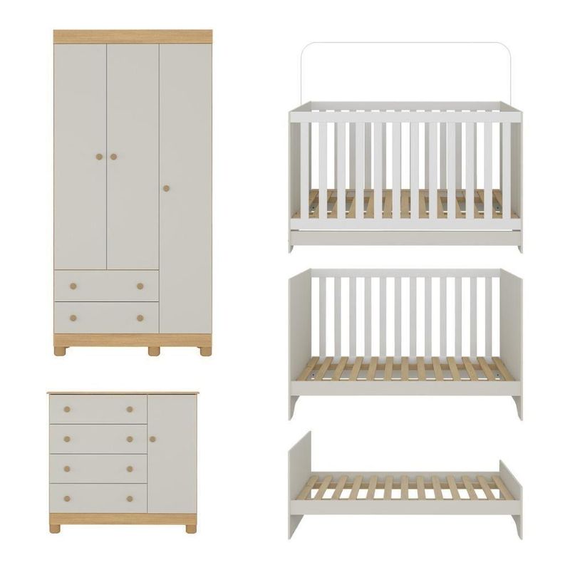 Quarto De Bebê Completo Com Berço Americano 3 Em 1 Allegra Multimóveis MP4590 Madeirado/off WhiteMais do que um conjunto de móveis, o Quarto de Bebê Completo com Berço Americano 3 em 1 p/Colchão 130x70cm Multimóveis MP4590 é um abraço em forma de ambiente. Feito para garantir segurança, conforto e funcionalidade, ele envolve o bebê com o carinho que todo início de vida merece.Diferenciais:- 3 anos de garantia contra defeitos de fabricação e material.- Conjunto produzido em madeira de reflorestamento (MDP 12/15mm) com acabamento acetinado (cerca de 20% de brilho): sustentabilidade e durabilidade.- Berço 3 em 1 que se transforma em sofá e minicama, acompanhando o crescimento do bebê.- Lastro em madeira com 3 regulagens de altura e suporte para mosquiteiro para noites mais tranquilas e protegidas.- Berço certificado pelo INMETRO (Selo nº 0000085/2018).- Padrão americano (tamanho do colchão indicado: 130x70cm). Colchão não incluso. - Grade Soft (PVC): ecologicamente correta, com matéria-prima livre de metais pesados, atóxica e com proteção antiamarelamento.- Guarda-roupa com 3 portas e 2 gavetas: amplo espaço para organizar roupinhas e acessórios.- Cômoda com 1 porta e 4 gavetas.- Corrediças telescópicas: abertura total e silenciosa das gavetas.- Cabideiro em alumínio: permite acomodar roupas longas e curtas para que não amassem.- Puxadores em ABS delicados e práticos.- Pés em polipropileno e rodapés: visual elegante e estabilidade para o guarda-roupa e a cômoda.- Sistema antitombamento no guarda-roupa e cômoda: proporciona segurança para o bebê e tranquilidade aos pais.Conteúdo da Embalagem:1 (um) Berço1 (um) Guarda-roupa1 (uma) CômodaManual de MontagemKit FerragemDimensões do Produto Montado:Berço - Altura: 80,5cm | Largura: 133cm | Profundidade: 77,5cmGuarda-roupa - Altura: 189cm | Largura: 92cm | Profundidade: 41cmCômoda - Altura: 88cm | Largura: 95cm | Profundidade: 42cm*Você pode consultar as medidas detalhadas na imagem técnica do produto.Observações Importantes:*As cores dos produtos podem sofrer variações de tonalidade de acordo com as configurações do seu dispositivo.*Aqui na Loja Multimóveis, você pode concluir sua compra facilmente com toda segurança. A entrega é garantida e você está em 1° lugar.*Imagens meramente ilustrativas (decoração não inclusa).*Os produtos serão entregues desmontados e não disponibilizamos o serviço de montagem. Acabamento: Finish Foil/Pintura UV | Tonalidade: Branco | Material: MDP | Referência do Modelo: MP4590 | Coleção: Allegra | Sistema de Montagem: O produto acompanha manual de montagem juntamente com kit ferragem. O produto será entregue desmontado e não disponibilizamos o serviço de montagem. | Instruções de Cuidado: Limpar com pano seco para retirar o pó. Não utilizar produtos químicos ou abrasivos. Não aplicar lustra móveis. | Produto Composto por: 1 berço, 1 guarda-roupa, 1 cômoda, manual de montagem e kit ferragem. | Altura Montado: 189 | Largura Montado: 92 | Profundidade Montado: 41 | Tamanho (L x A x P): 92 x 189 x 41 | Peso do Produto: 107 | Corrediça: Telescópica | Inclui Berço: Sim | Acompanha Colchão: Não | Inclui Guarda-Roupa: Sim | Inclui Gaveteiro: Sim | Material do Puxador: ABS | Quantidade de Portas: 4 | Quantidade de Gavetas: 6 | Quantidade de Puxadores: 16 | RBN: 17352335011 | Quantidade de Pés: 11 | Quantidade de Peças: 3 | Material dos Pés: Polipropileno | Produto: Conjunto de Quarto | Portátil: Não | Registro INMETRO: 0000085/2018 | Fabricante: Multimóveis | Regulamentado pelo INMETRO: Sim | Garantia do Fabricante: 3 | Requer Montagem: Sim | Tempo de Garantia: 3 meses | Descrição do Tamanho: (L x A x P): 92 x 189 x 41 cm | Tipo de cama: Berço | Marca: Multimóveis | Tamanho da cama: Berço | Quantidade de criados mudos: 0 | Tipo de madeira: N/A | Comprimento da cama: 77,5 cm | Altura da cama: 80,5 cm | É Kit de fábrica: Sim | Estilo: Moderno | Largura da cama: 133 cm | Idade recomendada: 0-24 meses | Idade: Bebê | Quantidade de caixas de embalagem: 05 | Destaque 1: Produzido em MDP com acabamento acetinado: durabilidade e resistência. | Destaque 2: Berço 3 em 1: transforma-se em sofá e minicama, acompanhando as fases da criança. | Destaque 3: Guarda-roupa com 3 portas, 2 gavetas e cabideiro de alumínio. | Destaque 4: Cômoda com 1 porta e 4 gavetas: amplo espaço interno. | Destaque 5: Corrediças telescópicas: abertura total e silenciosa das gavetas. | Baterias são necessárias?: Não | Certificação de teste externa: 0000085/2018 | Is Fragile: Não | Dimensões do item P x L x A: length#value=41;length#unit=centimeters;width#value=92;width#unit=centimeters;height#value=189;height#unit=centimeters | Quantidade de itens: 1 | Peso do item: unit=kilograms;value=107 | Número da peça: MP4590.697 | Inclui manual de montagem: Sim | Tipo de Garantia: Garantia do Fabricante | Montagem: Necessita Montagem | País de Origem: Brasil | Palavras-chave: berco com colchao, berco pequeno bercos moveis, berco que vira cama, berco mini cama, berco, quarto completo de bebe, berco e guarda roupa, kit quarto bebe, quarto de bebe completo, quarto de bebe, quarto bebe, jogo de quarto bebe, quarto completo bebe, kit quarto bebe moveis, quarto infantil bebe, kit quarto de bebe, berço e guarda roupa | Inclui cômoda trocador: Não | Cor: Madeirado/Off White