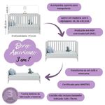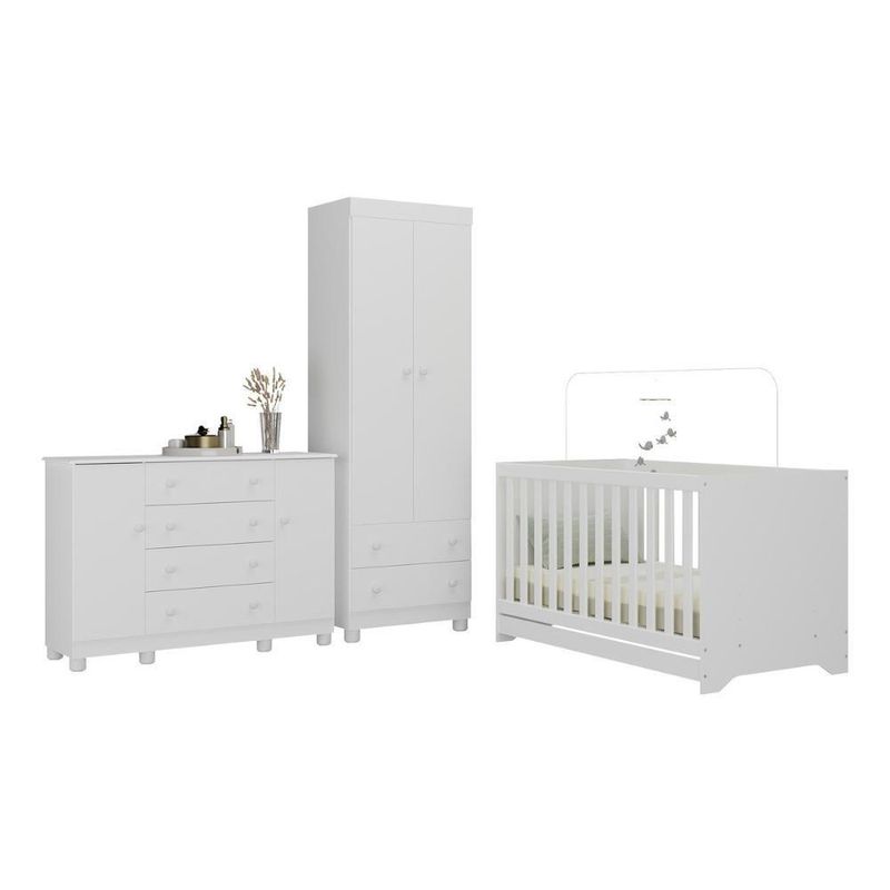 Quarto De Bebê Completo Com Berço Americano 3 Em 1 Allegra Multimóveis MP4594 BrancoO Quarto de Bebê Completo com Berço Americano 3 em 1 p/Colchão 130x70cm Multimóveis MP4594 une design moderno, praticidade e um toque de afeto para tornar o cantinho do seu bebê simplesmente encantador. Cada móvel reflete cuidado e proteção, criando o espaço perfeito para o amor crescer todos os dias.Diferenciais:- 3 anos de garantia contra defeitos de fabricação e material.- Conjunto produzido em madeira de reflorestamento (MDP 12/15mm) com acabamento acetinado (cerca de 20% de brilho): sustentabilidade e durabilidade.- Berço 3 em 1 que se transforma em sofá e minicama, acompanhando o crescimento do bebê.- Lastro em madeira com 3 regulagens de altura e suporte para mosquiteiro para noites mais tranquilas e protegidas.- Berço certificado pelo INMETRO (Selo nº 0000085/2018).- Padrão americano (tamanho do colchão indicado: 130x70cm). Colchão não incluso.- Grade Soft (PVC): ecologicamente correta, com matéria-prima livre de metais pesados, atóxica e com proteção antiamarelamento.- Guarda-roupa com 2 portas e 2 gavetas: amplo espaço para organizar roupinhas e acessórios.- Cômoda com 2 portas e 4 gavetas.- Corrediças telescópicas: abertura total e silenciosa das gavetas.- Cabideiro em alumínio: permite acomodar roupas longas e curtas para que não amassem.- Puxadores em ABS delicados e práticos.- Pés em polipropileno e rodapés: visual elegante e estabilidade para o guarda-roupa e a cômoda.- Sistema antitombamento no guarda-roupa e cômoda: proporciona segurança para o bebê e tranquilidade aos pais.Conteúdo da Embalagem:1 (um) Berço1 (um) Guarda-roupa1 (uma) CômodaManual de MontagemKit FerragemDimensões do Produto Montado:Berço - Altura: 80,5cm | Largura: 133cm | Profundidade: 77,5cmGuarda-roupa - Altura: 189cm | Largura: 62cm | Profundidade: 41cmCômoda - Altura: 88cm | Largura: 125cm | Profundidade: 42cm*Você pode consultar as medidas detalhadas na imagem técnica do produto.Observações Importantes:*As cores dos produtos podem sofrer variações de tonalidade de acordo com as configurações do seu dispositivo.*Aqui na Loja Multimóveis, você pode concluir sua compra facilmente com toda segurança. A entrega é garantida e você está em 1° lugar.*Imagens meramente ilustrativas (decoração não inclusa).*Os produtos serão entregues desmontados e não disponibilizamos o serviço de montagem. Acabamento: Finish Foil/Pintura UV | Tonalidade: Branco | Material: MDP | Referência do Modelo: MP4594 | Coleção: Allegra | Sistema de Montagem: O produto acompanha manual de montagem juntamente com kit ferragem. O produto será entregue desmontado e não disponibilizamos o serviço de montagem. | Instruções de Cuidado: Limpar com pano seco para retirar o pó. Não utilizar produtos químicos ou abrasivos. Não aplicar lustra móveis. | Produto Composto por: 1 berço, 1 guarda-roupa, 1 cômoda, manual de montagem e kit ferragem. | Altura Montado: 189 | Largura Montado: 62 | Profundidade Montado: 41 | Tamanho (L x A x P): 62 x 189 x 41 | Peso do Produto: 102 | Corrediça: Telescópica | Inclui Berço: Sim | Acompanha Colchão: Não | Inclui Guarda-Roupa: Sim | Inclui Gaveteiro: Sim | Material do Puxador: ABS | Quantidade de Portas: 4 | Quantidade de Gavetas: 6 | Quantidade de Puxadores: 16 | RBN: 17352335011 | Quantidade de Pés: 10 | Quantidade de Peças: 3 | Material dos Pés: Polipropileno | Produto: Conjunto de Quarto | Portátil: Não | Registro INMETRO: 0000085/2018 | Fabricante: Multimóveis | Regulamentado pelo INMETRO: Sim | Garantia do Fabricante: 3 | Requer Montagem: Sim | Tempo de Garantia: 3 meses | Descrição do Tamanho: (L x A x P): 62 x 189 x 41 cm | Tipo de cama: Berço | Marca: Multimóveis | Tamanho da cama: Berço | Quantidade de criados mudos: 0 | Tipo de madeira: N/A | Comprimento da cama: 77,5 cm | Altura da cama: 80,5 cm | É Kit de fábrica: Sim | Estilo: Moderno | Largura da cama: 133 cm | Idade recomendada: 0-24 meses | Idade: Bebê | Quantidade de caixas de embalagem: 05 | Destaque 1: Produzido em MDP com acabamento acetinado: durabilidade e resistência. | Destaque 2: Berço 3 em 1: transforma-se em sofá e minicama, acompanhando as fases da criança. | Destaque 3: Guarda-roupa com 2 portas, 2 gavetas e cabideiro de alumínio. | Destaque 4: Cômoda com 2 portas e 4 gavetas: amplo espaço interno. | Destaque 5: Corrediças telescópicas: abertura total e silenciosa das gavetas. | Baterias são necessárias?: Não | Certificação de teste externa: 0000085/2018 | Is Fragile: Não | Dimensões do item P x L x A: length#value=41;length#unit=centimeters;width#value=62;width#unit=centimeters;height#value=189;height#unit=centimeters | Quantidade de itens: 1 | Peso do item: unit=kilograms;value=102 | Número da peça: MP4594.697 | Inclui manual de montagem: Sim | Tipo de Garantia: Garantia do Fabricante | Montagem: Necessita Montagem | País de Origem: Brasil | Palavras-chave: berco com colchao, berco pequeno bercos moveis, berco que vira cama, berco mini cama, berco, quarto completo de bebe, berco e guarda roupa, kit quarto bebe, quarto de bebe completo, quarto de bebe, quarto bebe, jogo de quarto bebe, quarto completo bebe, kit quarto bebe moveis, quarto infantil bebe, kit quarto de bebe, berço e guarda roupa | Inclui cômoda trocador: Não | Cor: Branco