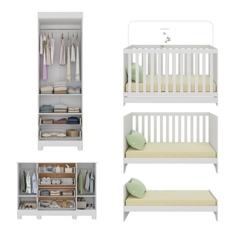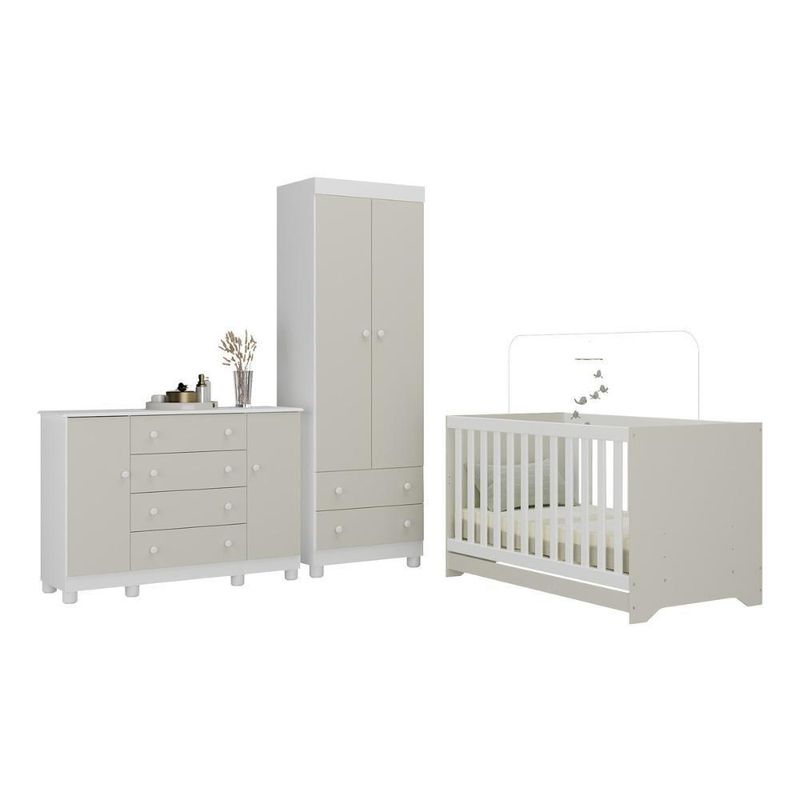 Quarto De Bebê Completo Com Berço Americano 3 Em 1 Allegra Multimóveis MP4594 Branco/off WhiteO Quarto de Bebê Completo com Berço Americano 3 em 1 p/Colchão 130x70cm Multimóveis MP4594 une design moderno, praticidade e um toque de afeto para tornar o cantinho do seu bebê simplesmente encantador. Cada móvel reflete cuidado e proteção, criando o espaço perfeito para o amor crescer todos os dias.Diferenciais:- 3 anos de garantia contra defeitos de fabricação e material.- Conjunto produzido em madeira de reflorestamento (MDP 12/15mm) com acabamento acetinado (cerca de 20% de brilho): sustentabilidade e durabilidade.- Berço 3 em 1 que se transforma em sofá e minicama, acompanhando o crescimento do bebê.- Lastro em madeira com 3 regulagens de altura e suporte para mosquiteiro para noites mais tranquilas e protegidas.- Berço certificado pelo INMETRO (Selo nº 0000085/2018).- Padrão americano (tamanho do colchão indicado: 130x70cm). Colchão não incluso.- Grade Soft (PVC): ecologicamente correta, com matéria-prima livre de metais pesados, atóxica e com proteção antiamarelamento.- Guarda-roupa com 2 portas e 2 gavetas: amplo espaço para organizar roupinhas e acessórios.- Cômoda com 2 portas e 4 gavetas.- Corrediças telescópicas: abertura total e silenciosa das gavetas.- Cabideiro em alumínio: permite acomodar roupas longas e curtas para que não amassem.- Puxadores em ABS delicados e práticos.- Pés em polipropileno e rodapés: visual elegante e estabilidade para o guarda-roupa e a cômoda.- Sistema antitombamento no guarda-roupa e cômoda: proporciona segurança para o bebê e tranquilidade aos pais.Conteúdo da Embalagem:1 (um) Berço1 (um) Guarda-roupa1 (uma) CômodaManual de MontagemKit FerragemDimensões do Produto Montado:Berço - Altura: 80,5cm | Largura: 133cm | Profundidade: 77,5cmGuarda-roupa - Altura: 189cm | Largura: 62cm | Profundidade: 41cmCômoda - Altura: 88cm | Largura: 125cm | Profundidade: 42cm*Você pode consultar as medidas detalhadas na imagem técnica do produto.Observações Importantes:*As cores dos produtos podem sofrer variações de tonalidade de acordo com as configurações do seu dispositivo.*Aqui na Loja Multimóveis, você pode concluir sua compra facilmente com toda segurança. A entrega é garantida e você está em 1° lugar.*Imagens meramente ilustrativas (decoração não inclusa).*Os produtos serão entregues desmontados e não disponibilizamos o serviço de montagem. Acabamento: Finish Foil/Pintura UV | Tonalidade: Branco | Material: MDP | Referência do Modelo: MP4594 | Coleção: Allegra | Sistema de Montagem: O produto acompanha manual de montagem juntamente com kit ferragem. O produto será entregue desmontado e não disponibilizamos o serviço de montagem. | Instruções de Cuidado: Limpar com pano seco para retirar o pó. Não utilizar produtos químicos ou abrasivos. Não aplicar lustra móveis. | Produto Composto por: 1 berço, 1 guarda-roupa, 1 cômoda, manual de montagem e kit ferragem. | Altura Montado: 189 | Largura Montado: 62 | Profundidade Montado: 41 | Tamanho (L x A x P): 62 x 189 x 41 | Peso do Produto: 102 | Corrediça: Telescópica | Inclui Berço: Sim | Acompanha Colchão: Não | Inclui Guarda-Roupa: Sim | Inclui Gaveteiro: Sim | Material do Puxador: ABS | Quantidade de Portas: 4 | Quantidade de Gavetas: 6 | Quantidade de Puxadores: 16 | RBN: 17352335011 | Quantidade de Pés: 10 | Quantidade de Peças: 3 | Material dos Pés: Polipropileno | Produto: Conjunto de Quarto | Portátil: Não | Registro INMETRO: 0000085/2018 | Fabricante: Multimóveis | Regulamentado pelo INMETRO: Sim | Garantia do Fabricante: 3 | Requer Montagem: Sim | Tempo de Garantia: 3 meses | Descrição do Tamanho: (L x A x P): 62 x 189 x 41 cm | Tipo de cama: Berço | Marca: Multimóveis | Tamanho da cama: Berço | Quantidade de criados mudos: 0 | Tipo de madeira: N/A | Comprimento da cama: 77,5 cm | Altura da cama: 80,5 cm | É Kit de fábrica: Sim | Estilo: Moderno | Largura da cama: 133 cm | Idade recomendada: 0-24 meses | Idade: Bebê | Quantidade de caixas de embalagem: 05 | Destaque 1: Produzido em MDP com acabamento acetinado: durabilidade e resistência. | Destaque 2: Berço 3 em 1: transforma-se em sofá e minicama, acompanhando as fases da criança. | Destaque 3: Guarda-roupa com 2 portas, 2 gavetas e cabideiro de alumínio. | Destaque 4: Cômoda com 2 portas e 4 gavetas: amplo espaço interno. | Destaque 5: Corrediças telescópicas: abertura total e silenciosa das gavetas. | Baterias são necessárias?: Não | Certificação de teste externa: 0000085/2018 | Is Fragile: Não | Dimensões do item P x L x A: length#value=41;length#unit=centimeters;width#value=62;width#unit=centimeters;height#value=189;height#unit=centimeters | Quantidade de itens: 1 | Peso do item: unit=kilograms;value=102 | Número da peça: MP4594.697 | Inclui manual de montagem: Sim | Tipo de Garantia: Garantia do Fabricante | Montagem: Necessita Montagem | País de Origem: Brasil | Palavras-chave: berco com colchao, berco pequeno bercos moveis, berco que vira cama, berco mini cama, berco, quarto completo de bebe, berco e guarda roupa, kit quarto bebe, quarto de bebe completo, quarto de bebe, quarto bebe, jogo de quarto bebe, quarto completo bebe, kit quarto bebe moveis, quarto infantil bebe, kit quarto de bebe, berço e guarda roupa | Inclui cômoda trocador: Não | Cor: Branco/Off White