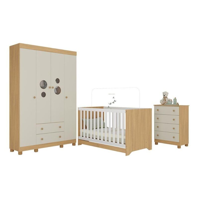 Quarto De Bebê Completo Com Berço Americano 3 Em 1 Bombom Multimóveis MP4618 Madeirado/off WhiteTudo o que o bebê precisa está aqui! O Quarto de Bebê Completo com Berço Americano 3 em 1 p/Colchão 130x70cm Multimóveis MP4618 garante funcionalidade, beleza e qualidade em um único conjunto. A solução ideal para quem quer montar um ambiente completo sem complicações.Diferenciais:- 3 anos de garantia contra defeitos de fabricação e material.- Conjunto produzido em madeira de reflorestamento (MDP 12/15mm) com acabamento acetinado (cerca de 20% de brilho): sustentabilidade e durabilidade.- Berço 3 em 1 que se transforma em sofá e minicama, acompanhando o crescimento do bebê.- Lastro em madeira com 3 regulagens de altura e suporte para mosquiteiro para noites mais tranquilas e protegidas.- Berço certificado pelo INMETRO (Selo nº 0000085/2018).- Padrão americano (tamanho do colchão indicado: 130x70cm). Colchão não incluso.- Grade Soft (PVC): ecologicamente correta, com matéria-prima livre de metais pesados, atóxica e com proteção antiamarelamento.- Guarda-roupa com 4 portas e 2 gavetas produzidas em MDF: amplo espaço para organizar roupinhas e acessórios.- Cômoda com 4 gavetas.- Detalhes de vidro incolor temperado 3mm nas portas: toque charmoso que permite visualizar o interior dos móveis.- Corrediças telescópicas: abertura total e silenciosa das gavetas.- Cabideiro em alumínio: permite acomodar roupas longas e curtas para que não amassem.- Puxadores em ABS delicados e práticos.- Pés em polipropileno e rodapés: visual elegante e estabilidade para o guarda-roupa e a cômoda.- Sistema antitombamento no guarda-roupa e cômoda: proporciona segurança para o bebê e tranquilidade aos pais.Conteúdo da Embalagem:1 (um) Berço1 (um) Guarda-roupa1 (uma) CômodaManual de MontagemKit FerragemDimensões do Produto Montado:Berço - Altura: 80,5cm | Largura: 133cm | Profundidade: 77,5cmGuarda-roupa - Altura: 189cm | Largura: 122cm | Profundidade: 41cmCômoda - Altura: 88cm | Largura: 65cm | Profundidade: 42cm*Você pode consultar as medidas detalhadas na imagem técnica do produto.Observações Importantes:*As cores dos produtos podem sofrer variações de tonalidade de acordo com as configurações do seu dispositivo.*Aqui na Loja Multimóveis, você pode concluir sua compra facilmente com toda segurança. A entrega é garantida e você está em 1° lugar.*Imagens meramente ilustrativas (decoração não inclusa).*Os produtos serão entregues desmontados e não disponibilizamos o serviço de montagem. Acabamento: Finish Foil/Pintura UV | Tonalidade: Branco | Material: MDP/MDF | Referência do Modelo: MP4618 | Coleção: Bombom | Sistema de Montagem: O produto acompanha manual de montagem juntamente com kit ferragem. O produto será entregue desmontado e não disponibilizamos o serviço de montagem. | Instruções de Cuidado: Limpar com pano seco para retirar o pó. Não utilizar produtos químicos ou abrasivos. Não aplicar lustra móveis. | Produto Composto por: 1 berço, 1 guarda-roupa, 1 cômoda, manual de montagem e kit ferragem. | Altura Montado: 189 | Largura Montado: 122 | Profundidade Montado: 41 | Tamanho (L x A x P): 122 x 189 x 41 | Peso do Produto: 116 | Corrediça: Telescópica | Inclui Berço: Sim | Acompanha Colchão: Não | Inclui Guarda-Roupa: Sim | Inclui Gaveteiro: Sim | Material do Puxador: ABS | Quantidade de Portas: 4 | Quantidade de Gavetas: 6 | Quantidade de Puxadores: 16 | RBN: 17352335011 | Quantidade de Pés: 12 | Quantidade de Peças: 3 | Material dos Pés: Polipropileno | Produto: Conjunto de Quarto | Portátil: Não | Registro INMETRO: 0000085/2018 | Fabricante: Multimóveis | Regulamentado pelo INMETRO: Sim | Garantia do Fabricante: 3 | Requer Montagem: Sim | Altura do Produto com Embalagem: 54 | Largura do Produto com Embalagem: 82 | Comprimento do Produto com Embalagem: 188 | Peso do Produto com Embalagem: 116 | Nome do Produto no Fornecedor: | Estado de Origem: RS | Produto precisa de Montagem?: Sim, sugerimos a contratação do nosso serviço de montagem (para os CEPs em que o serviço está disponível) ou de algum profissional experiente de sua preferência | Tempo de Garantia: 3 meses | Descrição do Tamanho: (L x A x P): 122 x 189 x 41 cm | Tipo de cama: Berço | Marca: Multimóveis | Tamanho da cama: Berço | Quantidade de criados mudos: 0 | Tipo de madeira: N/A | Comprimento da cama: 77,5 cm | Altura da cama: 80,5 cm | É Kit de fábrica: Sim | Estilo: Moderno | Largura da cama: 133 cm | Idade recomendada: 0-24 meses | Idade: Bebê | Quantidade de caixas de embalagem: 06 | Destaque 1: Produzido em MDP/MDF com acabamento acetinado: durabilidade e resistência. | Destaque 2: Berço 3 em 1: transforma-se em sofá e minicama, acompanhando as fases da criança. | Destaque 3: Guarda-roupa com 4 portas, 2 gavetas e cabideiro de alumínio. | Destaque 4: Cômoda com 4 gavetas: amplo espaço interno. | Destaque 5: Corrediças telescópicas: abertura total e silenciosa das gavetas. | Baterias são necessárias?: Não | Certificação de teste externa: 0000085/2018 | Is Fragile: Não | Dimensões do item P x L x A: length#value=41;length#unit=centimeters;width#value=122;width#unit=centimeters;height#value=189;height#unit=centimeters | Quantidade de itens: 1 | Peso do item: unit=kilograms;value=116 | Número da peça: MP4618.499 | Inclui manual de montagem: Sim | Tipo de Garantia: Garantia do Fabricante | Montagem: Necessita Montagem | País de Origem: Brasil | Palavras-chave: berco com colchao, berco pequeno bercos moveis, berco que vira cama, berco mini cama, berco, quarto completo de bebe, berco e guarda roupa, kit quarto bebe, quarto de bebe completo, quarto de bebe, quarto bebe, jogo de quarto bebe, quarto completo bebe, kit quarto bebe moveis, quarto infantil bebe, kit quarto de bebe, berço e guarda roupa | Inclui cômoda trocador: Não | Cor: Madeirado/Off White