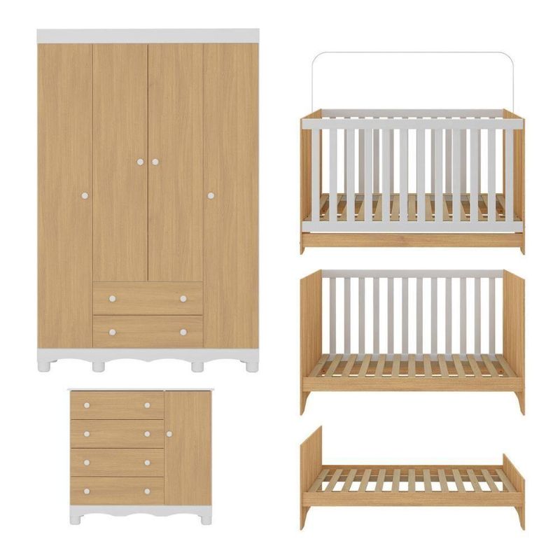 Quarto De Bebê Completo Com Berço Americano 3 Em 1 Dengo Multimóveis MP4584 Branco/madeiradoCada detalhe do Quarto de Bebê Completo com Berço Americano 3 em 1 p/Colchão 130x70cm Multimóveis MP4584 foi pensado para acolher o seu pequeno com amor, conforto e segurança. Um espaço encantador que transmite tranquilidade e transforma os primeiros momentos do bebê em lembranças cheias de ternura.Diferenciais:- 3 anos de garantia contra defeitos de fabricação e material.- Conjunto produzido em madeira de reflorestamento (MDP 12/15mm) com acabamento acetinado (cerca de 20% de brilho): sustentabilidade e durabilidade.- Berço 3 em 1 que se transforma em sofá e minicama, acompanhando o crescimento do bebê.- Lastro em madeira com 3 regulagens de altura e suporte para mosquiteiro para noites mais tranquilas e protegidas.- Berço certificado pelo INMETRO (Selo nº 0000085/2018).- Padrão americano (tamanho do colchão indicado: 130x70cm). Colchão não incluso.- Grade Soft (PVC): ecologicamente correta, com matéria-prima livre de metais pesados, atóxica e com proteção antiamarelamento.- Guarda-roupa com 4 portas e 2 gavetas: amplo espaço para organizar roupinhas e acessórios.- Cômoda com 1 porta e 4 gavetas.- Corrediças telescópicas: abertura total e silenciosa das gavetas.- Cabideiro em alumínio: permite acomodar roupas longas e curtas para que não amassem.- Puxadores em ABS delicados e práticos.- Pés em polipropileno e rodapés usinados em MDF: visual elegante e estabilidade para o guarda-roupa e a cômoda.- Sistema antitombamento no guarda-roupa e cômoda: proporciona segurança para o bebê e tranquilidade aos pais.Conteúdo da Embalagem:1 (um) Berço1 (um) Guarda-roupa1 (uma) CômodaManual de MontagemKit FerragemDimensões do Produto Montado:Berço - Altura: 80,5cm | Largura: 133cm | Profundidade: 77,5cmGuarda-roupa - Altura: 189cm | Largura: 122cm | Profundidade: 41cmCômoda - Altura: 88cm | Largura: 95cm | Profundidade: 42cm*Você pode consultar as medidas detalhadas na imagem técnica do produto.Observações Importantes:*As cores dos produtos podem sofrer variações de tonalidade de acordo com as configurações do seu dispositivo.*Aqui na Loja Multimóveis, você pode concluir sua compra facilmente com toda segurança. A entrega é garantida e você está em 1° lugar.*Imagens meramente ilustrativas (decoração não inclusa).*Os produtos serão entregues desmontados e não disponibilizamos o serviço de montagem. Acabamento: Finish Foil/Pintura UV | Tonalidade: Branco | Material: MDP | Referência do Modelo: MP4584 | Coleção: Dengo | Sistema de Montagem: O produto acompanha manual de montagem juntamente com kit ferragem. O produto será entregue desmontado e não disponibilizamos o serviço de montagem. | Instruções de Cuidado: Limpar com pano seco para retirar o pó. Não utilizar produtos químicos ou abrasivos. Não aplicar lustra móveis. | Produto Composto por: 1 berço, 1 guarda-roupa, 1 cômoda, manual de montagem e kit ferragem. | Altura Montado: 189 | Largura Montado: 122 | Profundidade Montado: 41 | Tamanho (L x A x P): 122 x 189 x 41 | Peso do Produto: 125 | Corrediça: Telescópica | Inclui Berço: Sim | Acompanha Colchão: Não | Inclui Guarda-Roupa: Sim | Inclui Gaveteiro: Sim | Material do Puxador: ABS | Quantidade de Portas: 5 | Quantidade de Gavetas: 6 | Quantidade de Puxadores: 17 | RBN: 17352335011 | Quantidade de Pés: 13 | Quantidade de Peças: 3 | Material dos Pés: Polipropileno | Produto: Conjunto de Quarto | Portátil: Não | Registro INMETRO: 0000085/2018 | Fabricante: Multimóveis | Regulamentado pelo INMETRO: Sim | Garantia do Fabricante: 3 | Requer Montagem: Sim | Tempo de Garantia: 3 meses | Descrição do Tamanho: (L x A x P): 122 x 189 x 41 cm | Tipo de cama: Berço | Marca: Multimóveis | Tamanho da cama: Berço | Quantidade de criados mudos: 0 | Tipo de madeira: N/A | Comprimento da cama: 77,5 cm | Altura da cama: 80,5 cm | É Kit de fábrica: Sim | Estilo: Moderno | Largura da cama: 133 cm | Idade recomendada: 0-24 meses | Idade: Bebê | Quantidade de caixas de embalagem: 06 | Destaque 1: Produzido em MDP com acabamento acetinado: durabilidade e resistência. | Destaque 2: Berço 3 em 1: transforma-se em sofá e minicama, acompanhando as fases da criança. | Destaque 3: Guarda-roupa com 4 portas, 2 gavetas e cabideiro de alumínio. | Destaque 4: Cômoda com 1 porta e 4 gavetas: amplo espaço interno. | Destaque 5: Corrediças telescópicas: abertura total e silenciosa das gavetas. | Baterias são necessárias?: Não | Certificação de teste externa: 0000085/2018 | Is Fragile: Não | Dimensões do item P x L x A: length#value=41;length#unit=centimeters;width#value=122;width#unit=centimeters;height#value=189;height#unit=centimeters | Quantidade de itens: 1 | Peso do item: unit=kilograms;value=125 | Número da peça: MP4584.697 | Inclui manual de montagem: Sim | Tipo de Garantia: Garantia do Fabricante | Montagem: Necessita Montagem | País de Origem: Brasil | Palavras-chave: berco com colchao, berco pequeno bercos moveis, berco que vira cama, berco mini cama, berco, quarto completo de bebe, berco e guarda roupa, kit quarto bebe, quarto de bebe completo, quarto de bebe, quarto bebe, jogo de quarto bebe, quarto completo bebe, kit quarto bebe moveis, quarto infantil bebe, kit quarto de bebe, berço e guarda roupa | Inclui cômoda trocador: Não | Cor: Branco/Madeirado