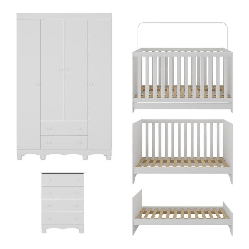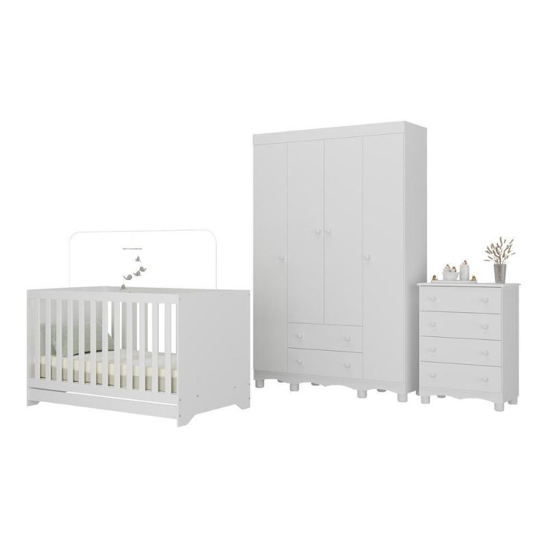 Quarto De Bebê Completo Com Berço Americano 3 Em 1 Dengo Multimóveis MP4588 BrancoO quarto do seu bebê é o cenário dos sonhos que estão prestes a começar. Com o Quarto de Bebê Completo com Berço Americano 3 em 1 p/Colchão 130x70cm Multimóveis MP4588, você cria um ambiente repleto de doçura, praticidade e amor — perfeito para acompanhar cada nova descoberta do seu pequeno.Diferenciais:- 3 anos de garantia contra defeitos de fabricação e material.- Conjunto produzido em madeira de reflorestamento (MDP 12/15mm) com acabamento acetinado (cerca de 20% de brilho): sustentabilidade e durabilidade.- Berço 3 em 1 que se transforma em sofá e minicama, acompanhando o crescimento do bebê.- Lastro em madeira com 3 regulagens de altura e suporte para mosquiteiro para noites mais tranquilas e protegidas.- Berço certificado pelo INMETRO (Selo nº 0000085/2018).- Padrão americano (tamanho do colchão indicado: 130x70cm). Colchão não incluso.- Grade Soft (PVC): ecologicamente correta, com matéria-prima livre de metais pesados, atóxica e com proteção antiamarelamento.- Guarda-roupa com 4 portas e 2 gavetas: amplo espaço para organizar roupinhas e acessórios.- Cômoda com 4 gavetas.- Corrediças telescópicas: abertura total e silenciosa das gavetas.- Cabideiro em alumínio: permite acomodar roupas longas e curtas para que não amassem.- Puxadores em ABS delicados e práticos.- Pés em polipropileno e rodapés usinados em MDF: visual elegante e estabilidade para o guarda-roupa e a cômoda.- Sistema antitombamento no guarda-roupa e cômoda: proporciona segurança para o bebê e tranquilidade aos pais.Conteúdo da Embalagem:1 (um) Berço1 (um) Guarda-roupa1 (uma) CômodaManual de MontagemKit FerragemDimensões do Produto Montado:Berço - Altura: 80,5cm | Largura: 133cm | Profundidade: 77,5cmGuarda-roupa - Altura: 189cm | Largura: 122cm | Profundidade: 41cmCômoda - Altura: 88cm | Largura: 65cm | Profundidade: 42cm*Você pode consultar as medidas detalhadas na imagem técnica do produto.Observações Importantes:*As cores dos produtos podem sofrer variações de tonalidade de acordo com as configurações do seu dispositivo.*Aqui na Loja Multimóveis, você pode concluir sua compra facilmente com toda segurança. A entrega é garantida e você está em 1° lugar.*Imagens meramente ilustrativas (decoração não inclusa).*Os produtos serão entregues desmontados e não disponibilizamos o serviço de montagem. Acabamento: Finish Foil/Pintura UV | Tonalidade: Branco | Material: MDP | Referência do Modelo: MP4588 | Coleção: Dengo | Sistema de Montagem: O produto acompanha manual de montagem juntamente com kit ferragem. O produto será entregue desmontado e não disponibilizamos o serviço de montagem. | Instruções de Cuidado: Limpar com pano seco para retirar o pó. Não utilizar produtos químicos ou abrasivos. Não aplicar lustra móveis. | Produto Composto por: 1 berço, 1 guarda-roupa, 1 cômoda, manual de montagem e kit ferragem. | Altura Montado: 189 | Largura Montado: 122 | Profundidade Montado: 41 | Tamanho (L x A x P): 122 x 189 x 41 | Peso do Produto: 116 | Corrediça: Telescópica | Inclui Berço: Sim | Acompanha Colchão: Não | Inclui Guarda-Roupa: Sim | Inclui Gaveteiro: Sim | Material do Puxador: ABS | Quantidade de Portas: 4 | Quantidade de Gavetas: 6 | Quantidade de Puxadores: 16 | RBN: 17352335011 | Quantidade de Pés: 12 | Quantidade de Peças: 3 | Material dos Pés: Polipropileno | Produto: Conjunto de Quarto | Portátil: Não | Registro INMETRO: 0000085/2018 | Fabricante: Multimóveis | Regulamentado pelo INMETRO: Sim | Garantia do Fabricante: 3 | Requer Montagem: Sim | Tempo de Garantia: 3 meses | Descrição do Tamanho: (L x A x P): 122 x 189 x 41 cm | Tipo de cama: Berço | Marca: Multimóveis | Tamanho da cama: Berço | Quantidade de criados mudos: 0 | Tipo de madeira: N/A | Comprimento da cama: 77,5 cm | Altura da cama: 80,5 cm | É Kit de fábrica: Sim | Estilo: Moderno | Largura da cama: 133 cm | Idade recomendada: 0-24 meses | Idade: Bebê | Quantidade de caixas de embalagem: 06 | Destaque 1: Produzido em MDP com acabamento acetinado: durabilidade e resistência. | Destaque 2: Berço 3 em 1: transforma-se em sofá e minicama, acompanhando as fases da criança. | Destaque 3: Guarda-roupa com 4 portas, 2 gavetas e cabideiro de alumínio. | Destaque 4: Cômoda com 4 gavetas: amplo espaço interno. | Destaque 5: Corrediças telescópicas: abertura total e silenciosa das gavetas. | Baterias são necessárias?: Não | Certificação de teste externa: 0000085/2018 | Is Fragile: Não | Dimensões do item P x L x A: length#value=41;length#unit=centimeters;width#value=122;width#unit=centimeters;height#value=189;height#unit=centimeters | Quantidade de itens: 1 | Peso do item: unit=kilograms;value=116 | Número da peça: MP4588.697 | Inclui manual de montagem: Sim | Tipo de Garantia: Garantia do Fabricante | Montagem: Necessita Montagem | País de Origem: Brasil | Palavras-chave: berco com colchao, berco pequeno bercos moveis, berco que vira cama, berco mini cama, berco, quarto completo de bebe, berco e guarda roupa, kit quarto bebe, quarto de bebe completo, quarto de bebe, quarto bebe, jogo de quarto bebe, quarto completo bebe, kit quarto bebe moveis, quarto infantil bebe, kit quarto de bebe, berço e guarda roupa | Inclui cômoda trocador: Não | Cor: Branco