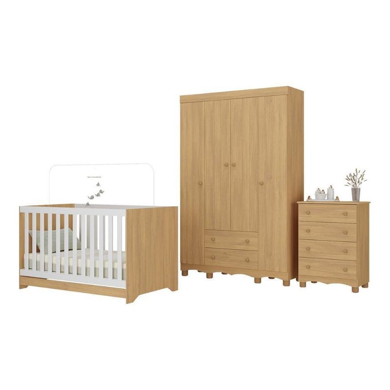 Quarto De Bebê Completo Com Berço Americano 3 Em 1 Dengo Multimóveis MP4588 MadeiradoO quarto do seu bebê é o cenário dos sonhos que estão prestes a começar. Com o Quarto de Bebê Completo com Berço Americano 3 em 1 p/Colchão 130x70cm Multimóveis MP4588, você cria um ambiente repleto de doçura, praticidade e amor — perfeito para acompanhar cada nova descoberta do seu pequeno.Diferenciais:- 3 anos de garantia contra defeitos de fabricação e material.- Conjunto produzido em madeira de reflorestamento (MDP 12/15mm) com acabamento acetinado (cerca de 20% de brilho): sustentabilidade e durabilidade.- Berço 3 em 1 que se transforma em sofá e minicama, acompanhando o crescimento do bebê.- Lastro em madeira com 3 regulagens de altura e suporte para mosquiteiro para noites mais tranquilas e protegidas.- Berço certificado pelo INMETRO (Selo nº 0000085/2018).- Padrão americano (tamanho do colchão indicado: 130x70cm). Colchão não incluso.- Grade Soft (PVC): ecologicamente correta, com matéria-prima livre de metais pesados, atóxica e com proteção antiamarelamento.- Guarda-roupa com 4 portas e 2 gavetas: amplo espaço para organizar roupinhas e acessórios.- Cômoda com 4 gavetas.- Corrediças telescópicas: abertura total e silenciosa das gavetas.- Cabideiro em alumínio: permite acomodar roupas longas e curtas para que não amassem.- Puxadores em ABS delicados e práticos.- Pés em polipropileno e rodapés usinados em MDF: visual elegante e estabilidade para o guarda-roupa e a cômoda.- Sistema antitombamento no guarda-roupa e cômoda: proporciona segurança para o bebê e tranquilidade aos pais.Conteúdo da Embalagem:1 (um) Berço1 (um) Guarda-roupa1 (uma) CômodaManual de MontagemKit FerragemDimensões do Produto Montado:Berço - Altura: 80,5cm | Largura: 133cm | Profundidade: 77,5cmGuarda-roupa - Altura: 189cm | Largura: 122cm | Profundidade: 41cmCômoda - Altura: 88cm | Largura: 65cm | Profundidade: 42cm*Você pode consultar as medidas detalhadas na imagem técnica do produto.Observações Importantes:*As cores dos produtos podem sofrer variações de tonalidade de acordo com as configurações do seu dispositivo.*Aqui na Loja Multimóveis, você pode concluir sua compra facilmente com toda segurança. A entrega é garantida e você está em 1° lugar.*Imagens meramente ilustrativas (decoração não inclusa).*Os produtos serão entregues desmontados e não disponibilizamos o serviço de montagem. Acabamento: Finish Foil/Pintura UV | Tonalidade: Branco | Material: MDP | Referência do Modelo: MP4588 | Coleção: Dengo | Sistema de Montagem: O produto acompanha manual de montagem juntamente com kit ferragem. O produto será entregue desmontado e não disponibilizamos o serviço de montagem. | Instruções de Cuidado: Limpar com pano seco para retirar o pó. Não utilizar produtos químicos ou abrasivos. Não aplicar lustra móveis. | Produto Composto por: 1 berço, 1 guarda-roupa, 1 cômoda, manual de montagem e kit ferragem. | Altura Montado: 189 | Largura Montado: 122 | Profundidade Montado: 41 | Tamanho (L x A x P): 122 x 189 x 41 | Peso do Produto: 116 | Corrediça: Telescópica | Inclui Berço: Sim | Acompanha Colchão: Não | Inclui Guarda-Roupa: Sim | Inclui Gaveteiro: Sim | Material do Puxador: ABS | Quantidade de Portas: 4 | Quantidade de Gavetas: 6 | Quantidade de Puxadores: 16 | RBN: 17352335011 | Quantidade de Pés: 12 | Quantidade de Peças: 3 | Material dos Pés: Polipropileno | Produto: Conjunto de Quarto | Portátil: Não | Registro INMETRO: 0000085/2018 | Fabricante: Multimóveis | Regulamentado pelo INMETRO: Sim | Garantia do Fabricante: 3 | Requer Montagem: Sim | Tempo de Garantia: 3 meses | Descrição do Tamanho: (L x A x P): 122 x 189 x 41 cm | Tipo de cama: Berço | Marca: Multimóveis | Tamanho da cama: Berço | Quantidade de criados mudos: 0 | Tipo de madeira: N/A | Comprimento da cama: 77,5 cm | Altura da cama: 80,5 cm | É Kit de fábrica: Sim | Estilo: Moderno | Largura da cama: 133 cm | Idade recomendada: 0-24 meses | Idade: Bebê | Quantidade de caixas de embalagem: 06 | Destaque 1: Produzido em MDP com acabamento acetinado: durabilidade e resistência. | Destaque 2: Berço 3 em 1: transforma-se em sofá e minicama, acompanhando as fases da criança. | Destaque 3: Guarda-roupa com 4 portas, 2 gavetas e cabideiro de alumínio. | Destaque 4: Cômoda com 4 gavetas: amplo espaço interno. | Destaque 5: Corrediças telescópicas: abertura total e silenciosa das gavetas. | Baterias são necessárias?: Não | Certificação de teste externa: 0000085/2018 | Is Fragile: Não | Dimensões do item P x L x A: length#value=41;length#unit=centimeters;width#value=122;width#unit=centimeters;height#value=189;height#unit=centimeters | Quantidade de itens: 1 | Peso do item: unit=kilograms;value=116 | Número da peça: MP4588.697 | Inclui manual de montagem: Sim | Tipo de Garantia: Garantia do Fabricante | Montagem: Necessita Montagem | País de Origem: Brasil | Palavras-chave: berco com colchao, berco pequeno bercos moveis, berco que vira cama, berco mini cama, berco, quarto completo de bebe, berco e guarda roupa, kit quarto bebe, quarto de bebe completo, quarto de bebe, quarto bebe, jogo de quarto bebe, quarto completo bebe, kit quarto bebe moveis, quarto infantil bebe, kit quarto de bebe, berço e guarda roupa | Inclui cômoda trocador: Não | Cor: Madeirado