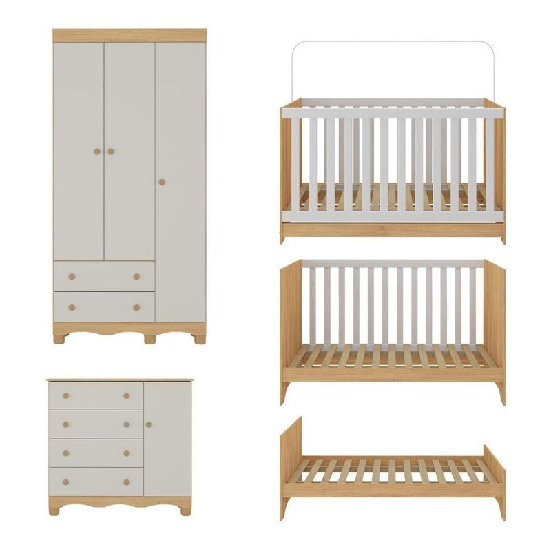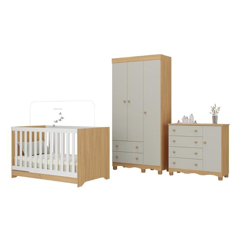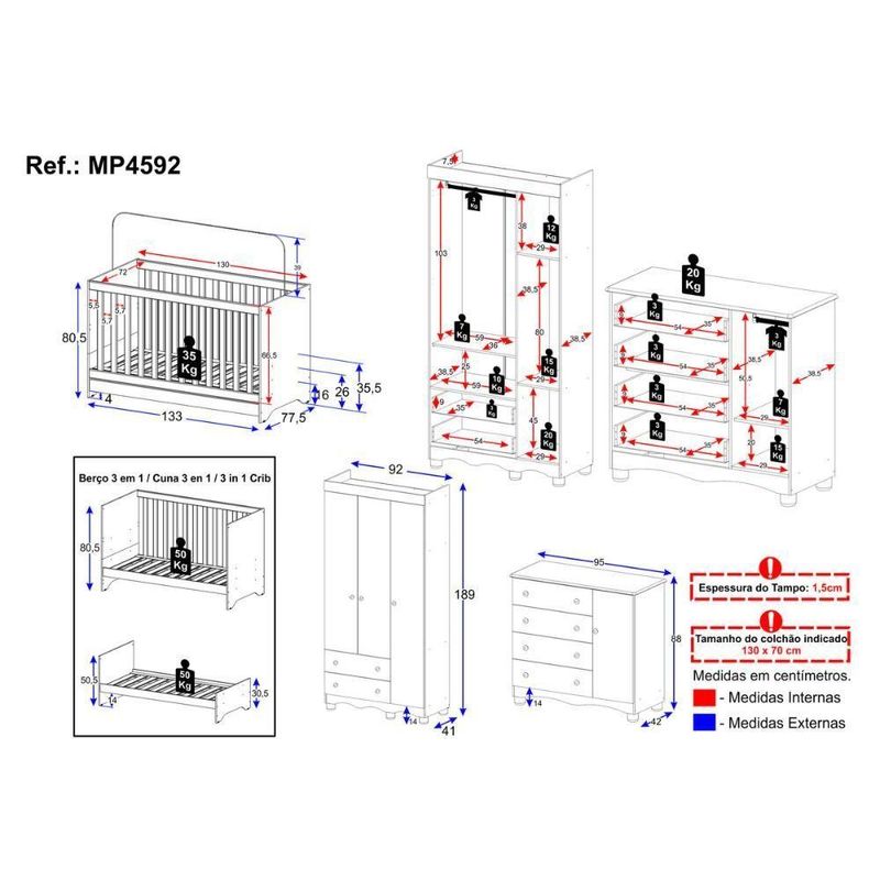 Quarto De Bebê Completo Com Berço Americano 3 Em 1 Dengo Multimóveis MP4592 Madeirado/off WhiteMais do que um conjunto de móveis, o Quarto de Bebê Completo com Berço Americano 3 em 1 p/Colchão 130x70cm Multimóveis MP4592 é um abraço em forma de ambiente. Feito para garantir segurança, conforto e funcionalidade, ele envolve o bebê com o carinho que todo início de vida merece.Diferenciais:- 3 anos de garantia contra defeitos de fabricação e material.- Conjunto produzido em madeira de reflorestamento (MDP 12/15mm) com acabamento acetinado (cerca de 20% de brilho): sustentabilidade e durabilidade.- Berço 3 em 1 que se transforma em sofá e minicama, acompanhando o crescimento do bebê.- Lastro em madeira com 3 regulagens de altura e suporte para mosquiteiro para noites mais tranquilas e protegidas.- Berço certificado pelo INMETRO (Selo nº 0000085/2018).- Padrão americano (tamanho do colchão indicado: 130x70cm). Colchão não incluso. - Grade Soft (PVC): ecologicamente correta, com matéria-prima livre de metais pesados, atóxica e com proteção antiamarelamento.- Guarda-roupa com 3 portas e 2 gavetas: amplo espaço para organizar roupinhas e acessórios.- Cômoda com 1 porta e 4 gavetas.- Corrediças telescópicas: abertura total e silenciosa das gavetas.- Cabideiro em alumínio: permite acomodar roupas longas e curtas para que não amassem.- Puxadores em ABS delicados e práticos.- Pés em polipropileno e rodapés usinados em MDF: visual elegante e estabilidade para o guarda-roupa e a cômoda.- Sistema antitombamento no guarda-roupa e cômoda: proporciona segurança para o bebê e tranquilidade aos pais.Conteúdo da Embalagem:1 (um) Berço1 (um) Guarda-roupa1 (uma) CômodaManual de MontagemKit FerragemDimensões do Produto Montado:Berço - Altura: 80,5cm | Largura: 133cm | Profundidade: 77,5cmGuarda-roupa - Altura: 189cm | Largura: 92cm | Profundidade: 41cmCômoda - Altura: 88cm | Largura: 95cm | Profundidade: 42cm*Você pode consultar as medidas detalhadas na imagem técnica do produto.Observações Importantes:*As cores dos produtos podem sofrer variações de tonalidade de acordo com as configurações do seu dispositivo.*Aqui na Loja Multimóveis, você pode concluir sua compra facilmente com toda segurança. A entrega é garantida e você está em 1° lugar.*Imagens meramente ilustrativas (decoração não inclusa).*Os produtos serão entregues desmontados e não disponibilizamos o serviço de montagem. Acabamento: Finish Foil/Pintura UV | Tonalidade: Branco | Material: MDP | Referência do Modelo: MP4592 | Coleção: Dengo | Sistema de Montagem: O produto acompanha manual de montagem juntamente com kit ferragem. O produto será entregue desmontado e não disponibilizamos o serviço de montagem. | Instruções de Cuidado: Limpar com pano seco para retirar o pó. Não utilizar produtos químicos ou abrasivos. Não aplicar lustra móveis. | Produto Composto por: 1 berço, 1 guarda-roupa, 1 cômoda, manual de montagem e kit ferragem. | Altura Montado: 189 | Largura Montado: 92 | Profundidade Montado: 41 | Tamanho (L x A x P): 92 x 189 x 41 | Peso do Produto: 107 | Corrediça: Telescópica | Inclui Berço: Sim | Acompanha Colchão: Não | Inclui Guarda-Roupa: Sim | Inclui Gaveteiro: Sim | Material do Puxador: ABS | Quantidade de Portas: 4 | Quantidade de Gavetas: 6 | Quantidade de Puxadores: 16 | RBN: 17352335011 | Quantidade de Pés: 11 | Quantidade de Peças: 3 | Material dos Pés: Polipropileno | Produto: Conjunto de Quarto | Portátil: Não | Registro INMETRO: 0000085/2018 | Fabricante: Multimóveis | Regulamentado pelo INMETRO: Sim | Garantia do Fabricante: 3 | Requer Montagem: Sim | Tempo de Garantia: 3 meses | Descrição do Tamanho: (L x A x P): 92 x 189 x 41 cm | Tipo de cama: Berço | Marca: Multimóveis | Tamanho da cama: Berço | Quantidade de criados mudos: 0 | Tipo de madeira: N/A | Comprimento da cama: 77,5 cm | Altura da cama: 80,5 cm | É Kit de fábrica: Sim | Estilo: Moderno | Largura da cama: 133 cm | Idade recomendada: 0-24 meses | Idade: Bebê | Quantidade de caixas de embalagem: 05 | Destaque 1: Produzido em MDP com acabamento acetinado: durabilidade e resistência. | Destaque 2: Berço 3 em 1: transforma-se em sofá e minicama, acompanhando as fases da criança. | Destaque 3: Guarda-roupa com 3 portas, 2 gavetas e cabideiro de alumínio. | Destaque 4: Cômoda com 1 porta e 4 gavetas: amplo espaço interno. | Destaque 5: Corrediças telescópicas: abertura total e silenciosa das gavetas. | Baterias são necessárias?: Não | Certificação de teste externa: 0000085/2018 | Is Fragile: Não | Dimensões do item P x L x A: length#value=41;length#unit=centimeters;width#value=92;width#unit=centimeters;height#value=189;height#unit=centimeters | Quantidade de itens: 1 | Peso do item: unit=kilograms;value=107 | Número da peça: MP4592.697 | Inclui manual de montagem: Sim | Tipo de Garantia: Garantia do Fabricante | Montagem: Necessita Montagem | País de Origem: Brasil | Palavras-chave: berco com colchao, berco pequeno bercos moveis, berco que vira cama, berco mini cama, berco, quarto completo de bebe, berco e guarda roupa, kit quarto bebe, quarto de bebe completo, quarto de bebe, quarto bebe, jogo de quarto bebe, quarto completo bebe, kit quarto bebe moveis, quarto infantil bebe, kit quarto de bebe, berço e guarda roupa | Inclui cômoda trocador: Não | Cor: Madeirado/Off White
