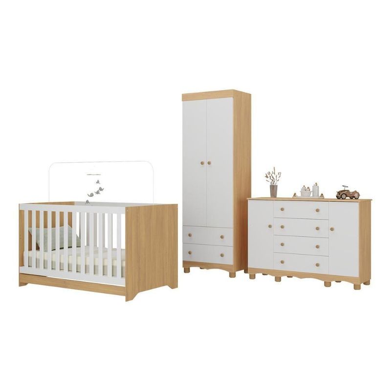 Quarto De Bebê Completo Com Berço Americano 3 Em 1 Dengo Multimóveis MP4596 Madeirado/brancoO Quarto de Bebê Completo com Berço Americano 3 em 1 p/Colchão 130x70cm Multimóveis MP4596 une design moderno, praticidade e um toque de afeto para tornar o cantinho do seu bebê simplesmente encantador. Cada móvel reflete cuidado e proteção, criando o espaço perfeito para o amor crescer todos os dias.Diferenciais:- 3 anos de garantia contra defeitos de fabricação e material.- Conjunto produzido em madeira de reflorestamento (MDP 12/15mm) com acabamento acetinado (cerca de 20% de brilho): sustentabilidade e durabilidade.- Berço 3 em 1 que se transforma em sofá e minicama, acompanhando o crescimento do bebê.- Lastro em madeira com 3 regulagens de altura e suporte para mosquiteiro para noites mais tranquilas e protegidas.- Berço certificado pelo INMETRO (Selo nº 0000085/2018).- Padrão americano (tamanho do colchão indicado: 130x70cm). Colchão não incluso.- Grade Soft (PVC): ecologicamente correta, com matéria-prima livre de metais pesados, atóxica e com proteção antiamarelamento.- Guarda-roupa com 2 portas e 2 gavetas: amplo espaço para organizar roupinhas e acessórios.- Cômoda com 2 portas e 4 gavetas.- Corrediças telescópicas: abertura total e silenciosa das gavetas.- Cabideiro em alumínio: permite acomodar roupas longas e curtas para que não amassem.- Puxadores em ABS delicados e práticos.- Pés em polipropileno e rodapés usinados em MDF: visual elegante e estabilidade para o guarda-roupa e a cômoda.- Sistema antitombamento no guarda-roupa e cômoda: proporciona segurança para o bebê e tranquilidade aos pais.Conteúdo da Embalagem:1 (um) Berço1 (um) Guarda-roupa1 (uma) CômodaManual de MontagemKit FerragemDimensões do Produto Montado:Berço - Altura: 80,5cm | Largura: 133cm | Profundidade: 77,5cmGuarda-roupa - Altura: 189cm | Largura: 62cm | Profundidade: 41cmCômoda - Altura: 88cm | Largura: 125cm | Profundidade: 42cm*Você pode consultar as medidas detalhadas na imagem técnica do produto.Observações Importantes:*As cores dos produtos podem sofrer variações de tonalidade de acordo com as configurações do seu dispositivo.*Aqui na Loja Multimóveis, você pode concluir sua compra facilmente com toda segurança. A entrega é garantida e você está em 1° lugar.*Imagens meramente ilustrativas (decoração não inclusa).*Os produtos serão entregues desmontados e não disponibilizamos o serviço de montagem. Acabamento: Finish Foil/Pintura UV | Tonalidade: Branco | Material: MDP | Referência do Modelo: MP4596 | Coleção: Dengo | Sistema de Montagem: O produto acompanha manual de montagem juntamente com kit ferragem. O produto será entregue desmontado e não disponibilizamos o serviço de montagem. | Instruções de Cuidado: Limpar com pano seco para retirar o pó. Não utilizar produtos químicos ou abrasivos. Não aplicar lustra móveis. | Produto Composto por: 1 berço, 1 guarda-roupa, 1 cômoda, manual de montagem e kit ferragem. | Altura Montado: 189 | Largura Montado: 62 | Profundidade Montado: 41 | Tamanho (L x A x P): 62 x 189 x 41 | Peso do Produto: 102 | Corrediça: Telescópica | Inclui Berço: Sim | Acompanha Colchão: Não | Inclui Guarda-Roupa: Sim | Inclui Gaveteiro: Sim | Material do Puxador: ABS | Quantidade de Portas: 4 | Quantidade de Gavetas: 6 | Quantidade de Puxadores: 16 | RBN: 17352335011 | Quantidade de Pés: 10 | Quantidade de Peças: 3 | Material dos Pés: Polipropileno | Produto: Conjunto de Quarto | Portátil: Não | Registro INMETRO: 0000085/2018 | Fabricante: Multimóveis | Regulamentado pelo INMETRO: Sim | Garantia do Fabricante: 3 | Requer Montagem: Sim | Tempo de Garantia: 3 meses | Descrição do Tamanho: (L x A x P): 62 x 189 x 41 cm | Tipo de cama: Berço | Marca: Multimóveis | Tamanho da cama: Berço | Quantidade de criados mudos: 0 | Tipo de madeira: N/A | Comprimento da cama: 77,5 cm | Altura da cama: 80,5 cm | É Kit de fábrica: Sim | Estilo: Moderno | Largura da cama: 133 cm | Idade recomendada: 0-24 meses | Idade: Bebê | Quantidade de caixas de embalagem: 05 | Destaque 1: Produzido em MDP com acabamento acetinado: durabilidade e resistência. | Destaque 2: Berço 3 em 1: transforma-se em sofá e minicama, acompanhando as fases da criança. | Destaque 3: Guarda-roupa com 2 portas, 2 gavetas e cabideiro de alumínio. | Destaque 4: Cômoda com 2 portas e 4 gavetas: amplo espaço interno. | Destaque 5: Corrediças telescópicas: abertura total e silenciosa das gavetas. | Baterias são necessárias?: Não | Certificação de teste externa: 0000085/2018 | Is Fragile: Não | Dimensões do item P x L x A: length#value=41;length#unit=centimeters;width#value=62;width#unit=centimeters;height#value=189;height#unit=centimeters | Quantidade de itens: 1 | Peso do item: unit=kilograms;value=102 | Número da peça: MP4596.697 | Inclui manual de montagem: Sim | Tipo de Garantia: Garantia do Fabricante | Montagem: Necessita Montagem | País de Origem: Brasil | Palavras-chave: berco com colchao, berco pequeno bercos moveis, berco que vira cama, berco mini cama, berco, quarto completo de bebe, berco e guarda roupa, kit quarto bebe, quarto de bebe completo, quarto de bebe, quarto bebe, jogo de quarto bebe, quarto completo bebe, kit quarto bebe moveis, quarto infantil bebe, kit quarto de bebe, berço e guarda roupa | Inclui cômoda trocador: Não | Cor: Madeirado/Branco