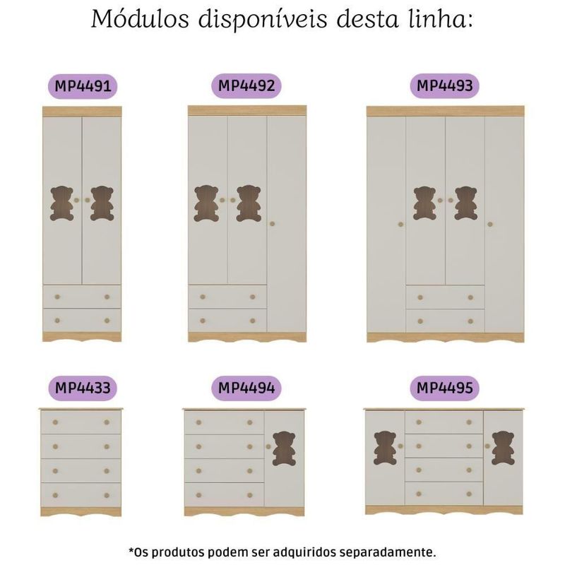Quarto De Bebê Completo Com Berço Americano 3 Em 1 Doçura Multimóveis MP4654 Madeirado/off WhiteImagine um espaço onde o amor se transforma em aconchego. O Quarto de Bebê Completo com Berço Americano 3 em 1 p/Colchão 130x70cm Multimóveis MP4654 foi projetado para oferecer bem-estar e tranquilidade, criando o cenário perfeito para os primeiros anos de vida do bebê.Diferenciais:- 3 anos de garantia contra defeitos de fabricação e material.- Conjunto produzido em madeira de reflorestamento (MDP 12/15mm) com acabamento acetinado (cerca de 20% de brilho): sustentabilidade e durabilidade.- Berço 3 em 1 que se transforma em sofá e minicama, acompanhando o crescimento do bebê.- Lastro em madeira com 3 regulagens de altura e suporte para mosquiteiro para noites mais tranquilas e protegidas.- Berço certificado pelo INMETRO (Selo nº 0000085/2018).- Padrão americano (tamanho do colchão indicado: 130x70cm). Colchão não incluso.- Grade Soft (PVC): ecologicamente correta, com matéria-prima livre de metais pesados, atóxica e com proteção antiamarelamento.- Guarda-roupa com 3 portas e 2 gavetas: amplo espaço para organizar roupinhas e acessórios.- Cômoda com 1 porta e 4 gavetas.- Portas e gavetas produzidas em MDF.- Detalhes de vidro incolor temperado 3mm nas portas: toque charmoso que permite visualizar o interior dos móveis.- Corrediças telescópicas: abertura total e silenciosa das gavetas.- Cabideiro em alumínio: permite acomodar roupas longas e curtas para que não amassem.- Puxadores em ABS delicados e práticos.- Rodapés usinados em MDF: visual elegante para o guarda-roupa e a cômoda.- Sistema antitombamento no guarda-roupa e cômoda: proporciona segurança para o bebê e tranquilidade aos pais.Conteúdo da Embalagem:1 (um) Berço1 (um) Guarda-roupa1 (uma) CômodaManual de MontagemKit FerragemDimensões do Produto Montado:Berço - Altura: 80,5cm | Largura: 133cm | Profundidade: 77,5cmGuarda-roupa - Altura: 184cm | Largura: 92cm | Profundidade: 41cmCômoda - Altura: 83cm | Largura: 95cm | Profundidade: 42cm*Você pode consultar as medidas detalhadas na imagem técnica do produto.Observações Importantes:*As cores dos produtos podem sofrer variações de tonalidade de acordo com as configurações do seu dispositivo.*Aqui na Loja Multimóveis, você pode concluir sua compra facilmente com toda segurança. A entrega é garantida e você está em 1° lugar.*Imagens meramente ilustrativas (decoração não inclusa).*Os produtos serão entregues desmontados e não disponibilizamos o serviço de montagem. Acabamento: Finish Foil/Pintura UV | Tonalidade: Branco | Material: MDP | Referência do Modelo: MP4654 | Coleção: Doçura | Sistema de Montagem: O produto acompanha manual de montagem juntamente com kit ferragem. O produto será entregue desmontado e não disponibilizamos o serviço de montagem. | Instruções de Cuidado: Limpar com pano seco para retirar o pó. Não utilizar produtos químicos ou abrasivos. Não aplicar lustra móveis. | Produto Composto por: 1 berço, 1 guarda-roupa, 1 cômoda, manual de montagem e kit ferragem. | Altura Montado: 184 | Largura Montado: 92 | Profundidade Montado: 41 | Tamanho (L x A x P): 92 x 184 x 41 | Peso do Produto: 107 | Corrediça: Telescópica | Inclui Berço: Sim | Acompanha Colchão: Não | Inclui Guarda-Roupa: Sim | Inclui Gaveteiro: Sim | Material do Puxador: ABS | Quantidade de Portas: 4 | Quantidade de Gavetas: 6 | Quantidade de Puxadores: 16 | RBN: 17352335011 | Quantidade de Pés: 0 | Quantidade de Peças: 3 | Material dos Pés: N/A | Produto: Conjunto de Quarto | Portátil: Não | Registro INMETRO: 0000085/2018 | Fabricante: Multimóveis | Regulamentado pelo INMETRO: Sim | Garantia do Fabricante: 3 | Requer Montagem: Sim | Altura do Produto com Embalagem: 48 | Largura do Produto com Embalagem: 82 | Comprimento do Produto com Embalagem: 188 | Peso do Produto com Embalagem: 107 | Nome do Produto no Fornecedor: | Estado de Origem: RS | Produto precisa de Montagem?: Sim, sugerimos a contratação do nosso serviço de montagem (para os CEPs em que o serviço está disponível) ou de algum profissional experiente de sua preferência | Tempo de Garantia: 3 meses | Descrição do Tamanho: (L x A x P): 92 x 184 x 41 cm | Tipo de cama: Berço | Marca: Multimóveis | Tamanho da cama: Berço | Quantidade de criados mudos: 0 | Tipo de madeira: N/A | Comprimento da cama: 77,5 cm | Altura da cama: 80,5 cm | É Kit de fábrica: Sim | Estilo: Moderno | Largura da cama: 133 cm | Idade recomendada: 0-24 meses | Idade: Bebê | Quantidade de caixas de embalagem: 05 | Destaque 1: Produzido em MDP/MDF com acabamento acetinado: durabilidade e resistência. | Destaque 2: Berço 3 em 1: transforma-se em sofá e minicama, acompanhando as fases da criança. | Destaque 3: Guarda-roupa com 3 portas, 2 gavetas e cabideiro de alumínio. | Destaque 4: Cômoda com 1 porta e 4 gavetas: amplo espaço interno. | Destaque 5: Corrediças telescópicas: abertura total e silenciosa das gavetas. | Baterias são necessárias?: Não | Certificação de teste externa: 0000085/2018 | Is Fragile: Não | Dimensões do item P x L x A: length#value=41;length#unit=centimeters;width#value=92;width#unit=centimeters;height#value=184;height#unit=centimeters | Quantidade de itens: 1 | Peso do item: unit=kilograms;value=107 | Número da peça: MP4654.697 | Inclui manual de montagem: Sim | Tipo de Garantia: Garantia do Fabricante | Montagem: Necessita Montagem | País de Origem: Brasil | Palavras-chave: berco com colchao, berco pequeno bercos moveis, berco que vira cama, berco mini cama, berco, quarto completo de bebe, berco e guarda roupa, kit quarto bebe, quarto de bebe completo, quarto de bebe, quarto bebe, jogo de quarto bebe, quarto completo bebe, kit quarto bebe moveis, quarto infantil bebe, kit quarto de bebe, berço e guarda roupa | Inclui cômoda trocador: Não | Cor: Madeirado/Off White