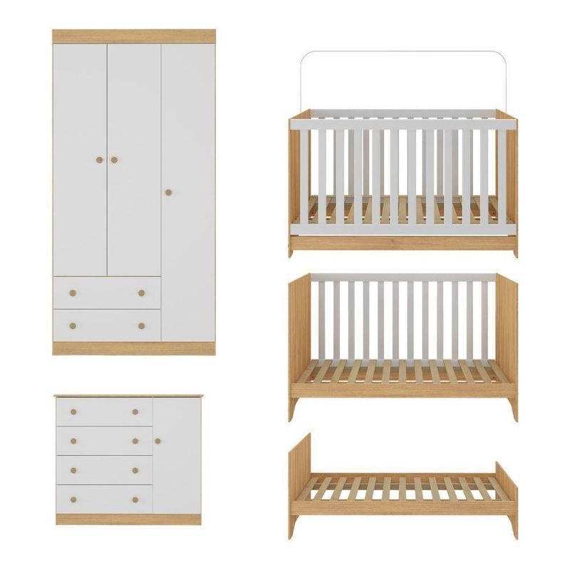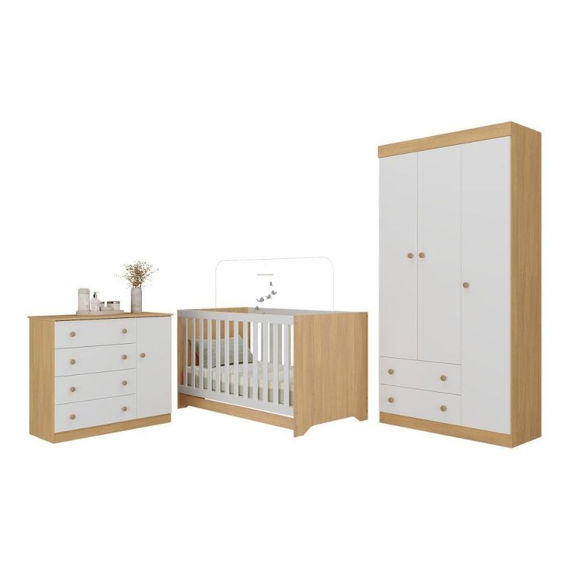 Quarto De Bebê Completo Com Berço Americano 3 Em 1 Encanto Multimóveis MP4589 Madeirado/brancoMais do que um conjunto de móveis, o Quarto de Bebê Completo com Berço Americano 3 em 1 p/Colchão 130x70cm Multimóveis MP4589 é um abraço em forma de ambiente. Feito para garantir segurança, conforto e funcionalidade, ele envolve o bebê com o carinho que todo início de vida merece.Diferenciais:- 3 anos de garantia contra defeitos de fabricação e material.- Conjunto produzido em madeira de reflorestamento (MDP 12/15mm) com acabamento acetinado (cerca de 20% de brilho): sustentabilidade e durabilidade.- Berço 3 em 1 que se transforma em sofá e minicama, acompanhando o crescimento do bebê.- Lastro em madeira com 3 regulagens de altura e suporte para mosquiteiro para noites mais tranquilas e protegidas.- Berço certificado pelo INMETRO (Selo nº 0000085/2018).- Padrão americano (tamanho do colchão indicado: 130x70cm). Colchão não incluso.- Grade Soft (PVC): ecologicamente correta, com matéria-prima livre de metais pesados, atóxica e com proteção antiamarelamento.- Guarda-roupa com 3 portas e 2 gavetas: amplo espaço para organizar roupinhas e acessórios.- Cômoda com 1 porta e 4 gavetas.- Corrediças telescópicas: abertura total e silenciosa das gavetas.- Cabideiro em alumínio: permite acomodar roupas longas e curtas para que não amassem.- Puxadores em ABS delicados e práticos.- Rodapés: visual elegante para o guarda-roupa e a cômoda.- Sistema antitombamento no guarda-roupa e cômoda: proporciona segurança para o bebê e tranquilidade aos pais.Conteúdo da Embalagem:1 (um) Berço1 (um) Guarda-roupa1 (uma) CômodaManual de MontagemKit FerragemDimensões do Produto Montado:Berço - Altura: 80,5cm | Largura: 133cm | Profundidade: 77,5cmGuarda-roupa - Altura: 184cm | Largura: 92cm | Profundidade: 41cmCômoda - Altura: 83cm | Largura: 95cm | Profundidade: 42cm*Você pode consultar as medidas detalhadas na imagem técnica do produto.Observações Importantes:*As cores dos produtos podem sofrer variações de tonalidade de acordo com as configurações do seu dispositivo.*Aqui na Loja Multimóveis, você pode concluir sua compra facilmente com toda segurança. A entrega é garantida e você está em 1° lugar.*Imagens meramente ilustrativas (decoração não inclusa).*Os produtos serão entregues desmontados e não disponibilizamos o serviço de montagem. Acabamento: Finish Foil/Pintura UV | Tonalidade: Branco | Material: MDP | Referência do Modelo: MP4589 | Coleção: Encanto | Sistema de Montagem: O produto acompanha manual de montagem juntamente com kit ferragem. O produto será entregue desmontado e não disponibilizamos o serviço de montagem. | Instruções de Cuidado: Limpar com pano seco para retirar o pó. Não utilizar produtos químicos ou abrasivos. Não aplicar lustra móveis. | Produto Composto por: 1 berço, 1 guarda-roupa, 1 cômoda, manual de montagem e kit ferragem. | Altura Montado: 184 | Largura Montado: 92 | Profundidade Montado: 41 | Tamanho (L x A x P): 92 x 184 x 41 | Peso do Produto: 107 | Corrediça: Telescópica | Inclui Berço: Sim | Acompanha Colchão: Não | Inclui Guarda-Roupa: Sim | Inclui Gaveteiro: Sim | Material do Puxador: ABS | Quantidade de Portas: 4 | Quantidade de Gavetas: 6 | Quantidade de Puxadores: 16 | RBN: 17352335011 | Quantidade de Pés: 0 | Quantidade de Peças: 3 | Material dos Pés: N/A | Produto: Conjunto de Quarto | Portátil: Não | Registro INMETRO: 0000085/2018 | Fabricante: Multimóveis | Regulamentado pelo INMETRO: Sim | Garantia do Fabricante: 3 | Requer Montagem: Sim | Tempo de Garantia: 3 meses | Descrição do Tamanho: (L x A x P): 92 x 184 x 41 cm | Tipo de cama: Berço | Marca: Multimóveis | Tamanho da cama: Berço | Quantidade de criados mudos: 0 | Tipo de madeira: N/A | Comprimento da cama: 77,5 cm | Altura da cama: 80,5 cm | É Kit de fábrica: Sim | Estilo: Moderno | Largura da cama: 133 cm | Idade recomendada: 0-24 meses | Idade: Bebê | Quantidade de caixas de embalagem: 05 | Destaque 1: Produzido em MDP com acabamento acetinado: durabilidade e resistência. | Destaque 2: Berço 3 em 1: transforma-se em sofá e minicama, acompanhando as fases da criança. | Destaque 3: Guarda-roupa com 3 portas, 2 gavetas e cabideiro de alumínio. | Destaque 4: Cômoda com 1 porta e 4 gavetas: amplo espaço interno. | Destaque 5: Corrediças telescópicas: abertura total e silenciosa das gavetas. | Baterias são necessárias?: Não | Certificação de teste externa: 0000085/2018 | Is Fragile: Não | Dimensões do item P x L x A: length#value=41;length#unit=centimeters;width#value=92;width#unit=centimeters;height#value=184;height#unit=centimeters | Quantidade de itens: 1 | Peso do item: unit=kilograms;value=107 | Número da peça: MP4589.697 | Inclui manual de montagem: Sim | Tipo de Garantia: Garantia do Fabricante | Montagem: Necessita Montagem | País de Origem: Brasil | Palavras-chave: berco com colchao, berco pequeno bercos moveis, berco que vira cama, berco mini cama, berco, quarto completo de bebe, berco e guarda roupa, kit quarto bebe, quarto de bebe completo, quarto de bebe, quarto bebe, jogo de quarto bebe, quarto completo bebe, kit quarto bebe moveis, quarto infantil bebe, kit quarto de bebe, berço e guarda roupa | Inclui cômoda trocador: Não | Cor: Madeirado/Branco