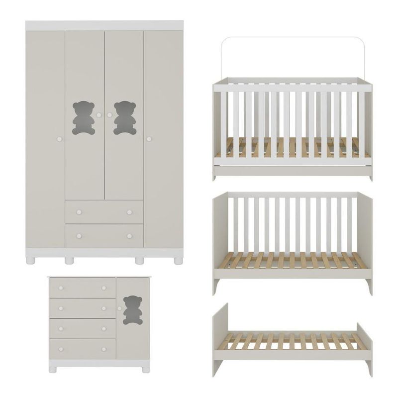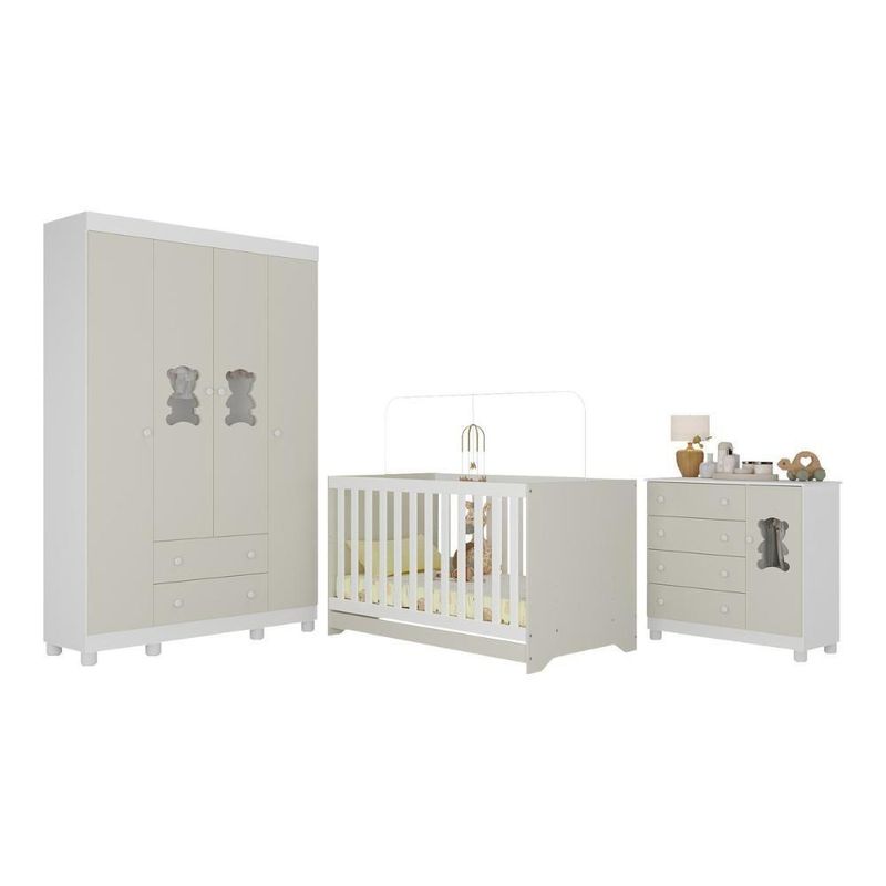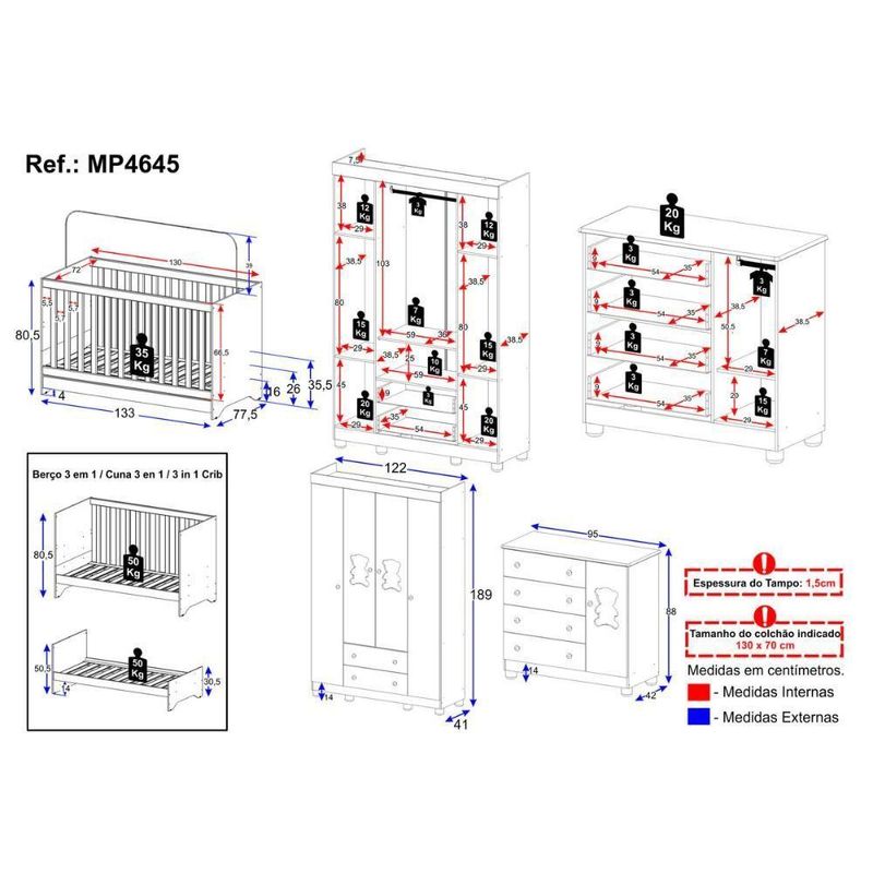 Quarto De Bebê Completo Com Berço Americano 3 Em 1 Fofura Multimóveis MP4645 Branco/off WhiteCada detalhe do Quarto de Bebê Completo com Berço Americano 3 em 1 p/Colchão 130x70cm Multimóveis MP4645 foi criado para acolher o bebê com carinho. O design delicado e o visual encantador tornam o ambiente um verdadeiro abraço — ideal para viver os momentos mais doces da infância.Diferenciais:- 3 anos de garantia contra defeitos de fabricação e material.- Conjunto produzido em madeira de reflorestamento (MDP 12/15mm) com acabamento acetinado (cerca de 20% de brilho): sustentabilidade e durabilidade.- Berço 3 em 1 que se transforma em sofá e minicama, acompanhando o crescimento do bebê.- Lastro em madeira com 3 regulagens de altura e suporte para mosquiteiro para noites mais tranquilas e protegidas.- Berço certificado pelo INMETRO (Selo nº 0000085/2018).- Padrão americano (tamanho do colchão indicado: 130x70cm). Colchão não incluso.- Grade Soft (PVC): ecologicamente correta, com matéria-prima livre de metais pesados, atóxica e com proteção antiamarelamento.- Guarda-roupa com 4 portas e 2 gavetas: amplo espaço para organizar roupinhas e acessórios.- Cômoda com 1 porta e 4 gavetas.- Portas e gavetas produzidas em MDF.- Detalhes de vidro incolor temperado 3mm nas portas: toque charmoso que permite visualizar o interior dos móveis.- Corrediças telescópicas: abertura total e silenciosa das gavetas.- Cabideiro em alumínio: permite acomodar roupas longas e curtas para que não amassem.- Puxadores em ABS delicados e práticos.- Pés em polipropileno e rodapés: visual elegante e estabilidade para o guarda-roupa e a cômoda.- Sistema antitombamento no guarda-roupa e cômoda: proporciona segurança para o bebê e tranquilidade aos pais.Conteúdo da Embalagem:1 (um) Berço1 (um) Guarda-roupa1 (uma) CômodaManual de MontagemKit FerragemDimensões do Produto Montado:Berço - Altura: 80,5cm | Largura: 133cm | Profundidade: 77,5cmGuarda-roupa - Altura: 189cm | Largura: 122cm | Profundidade: 41cmCômoda - Altura: 88cm | Largura: 95cm | Profundidade: 42cm*Você pode consultar as medidas detalhadas na imagem técnica do produto.Observações Importantes:*As cores dos produtos podem sofrer variações de tonalidade de acordo com as configurações do seu dispositivo.*Aqui na Loja Multimóveis, você pode concluir sua compra facilmente com toda segurança. A entrega é garantida e você está em 1° lugar.*Imagens meramente ilustrativas (decoração não inclusa).*Os produtos serão entregues desmontados e não disponibilizamos o serviço de montagem. Acabamento: Finish Foil/Pintura UV | Tonalidade: Branco | Material: MDP | Referência do Modelo: MP4645 | Coleção: Fofura | Sistema de Montagem: O produto acompanha manual de montagem juntamente com kit ferragem. O produto será entregue desmontado e não disponibilizamos o serviço de montagem. | Instruções de Cuidado: Limpar com pano seco para retirar o pó. Não utilizar produtos químicos ou abrasivos. Não aplicar lustra móveis. | Produto Composto por: 1 berço, 1 guarda-roupa, 1 cômoda, manual de montagem e kit ferragem. | Altura Montado: 189 | Largura Montado: 122 | Profundidade Montado: 41 | Tamanho (L x A x P): 122 x 189 x 41 | Peso do Produto: 125 | Corrediça: Telescópica | Inclui Berço: Sim | Acompanha Colchão: Não | Inclui Guarda-Roupa: Sim | Inclui Gaveteiro: Sim | Material do Puxador: ABS | Quantidade de Portas: 5 | Quantidade de Gavetas: 6 | Quantidade de Puxadores: 17 | RBN: 17352335011 | Quantidade de Pés: 13 | Quantidade de Peças: 3 | Material dos Pés: Polipropileno | Produto: Conjunto de Quarto | Portátil: Não | Registro INMETRO: 0000085/2018 | Fabricante: Multimóveis | Regulamentado pelo INMETRO: Sim | Garantia do Fabricante: 3 | Requer Montagem: Sim | Altura do Produto com Embalagem: 54 | Largura do Produto com Embalagem: 82 | Comprimento do Produto com Embalagem: 188 | Peso do Produto com Embalagem: 125 | Nome do Produto no Fornecedor: | Estado de Origem: RS | Produto precisa de Montagem?: Sim, sugerimos a contratação do nosso serviço de montagem (para os CEPs em que o serviço está disponível) ou de algum profissional experiente de sua preferência | Tempo de Garantia: 3 meses | Descrição do Tamanho: (L x A x P): 122 x 189 x 41 cm | Tipo de cama: Berço | Marca: Multimóveis | Tamanho da cama: Berço | Quantidade de criados mudos: 0 | Tipo de madeira: N/A | Comprimento da cama: 77,5 cm | Altura da cama: 80,5 cm | É Kit de fábrica: Sim | Estilo: Moderno | Largura da cama: 133 cm | Idade recomendada: 0-24 meses | Idade: Bebê | Quantidade de caixas de embalagem: 06 | Destaque 1: Produzido em MDP/MDF com acabamento acetinado: durabilidade e resistência. | Destaque 2: Berço 3 em 1: transforma-se em sofá e minicama, acompanhando as fases da criança. | Destaque 3: Guarda-roupa com 4 portas, 2 gavetas e cabideiro de alumínio. | Destaque 4: Cômoda com 1 porta e 4 gavetas: amplo espaço interno. | Destaque 5: Corrediças telescópicas: abertura total e silenciosa das gavetas. | Baterias são necessárias?: Não | Certificação de teste externa: 0000085/2018 | Is Fragile: Não | Dimensões do item P x L x A: length#value=41;length#unit=centimeters;width#value=122;width#unit=centimeters;height#value=189;height#unit=centimeters | Quantidade de itens: 1 | Peso do item: unit=kilograms;value=125 | Número da peça: MP4645.697 | Inclui manual de montagem: Sim | Tipo de Garantia: Garantia do Fabricante | Montagem: Necessita Montagem | País de Origem: Brasil | Palavras-chave: berco com colchao, berco pequeno bercos moveis, berco que vira cama, berco mini cama, berco, quarto completo de bebe, berco e guarda roupa, kit quarto bebe, quarto de bebe completo, quarto de bebe, quarto bebe, jogo de quarto bebe, quarto completo bebe, kit quarto bebe moveis, quarto infantil bebe, kit quarto de bebe, berço e guarda roupa | Inclui cômoda trocador: Não | Cor: Branco/Off White
