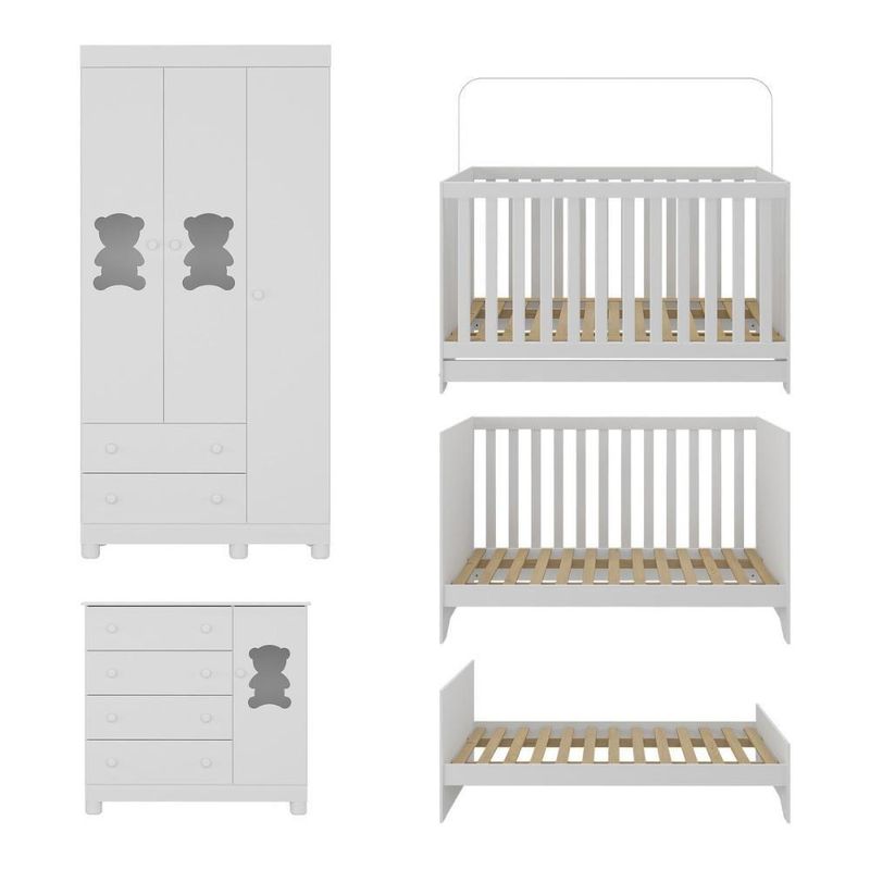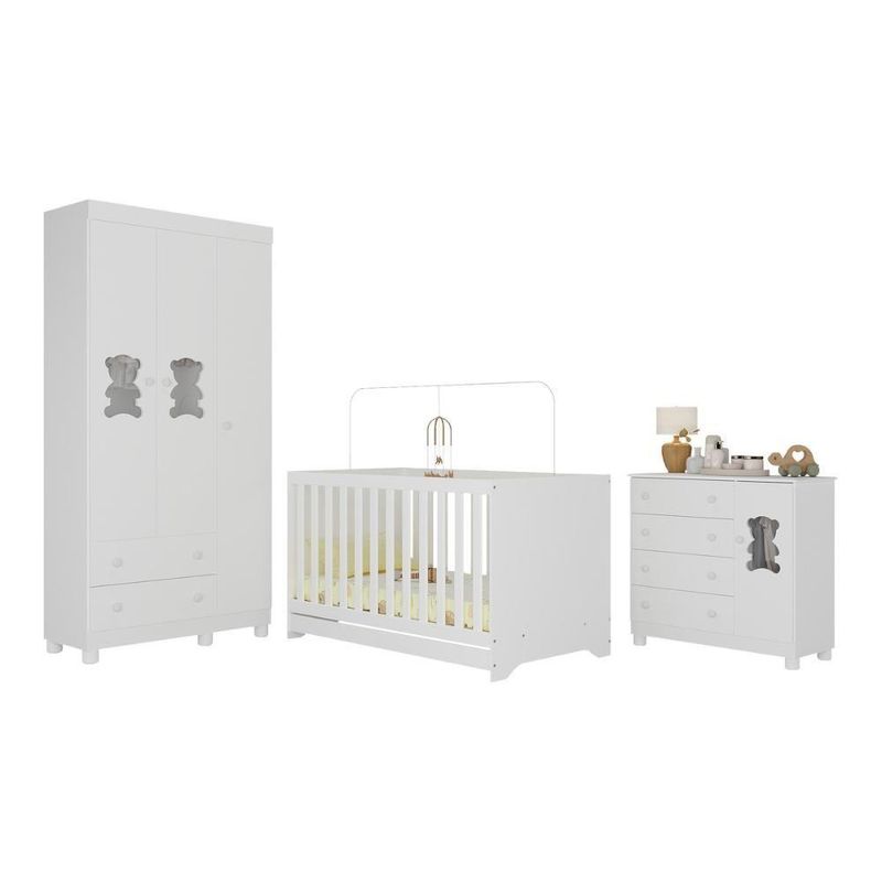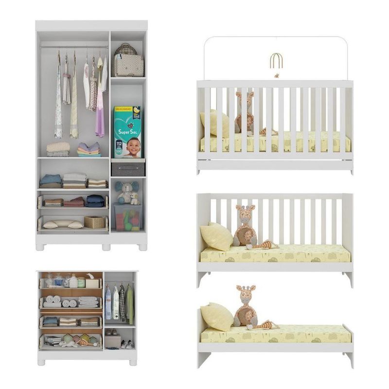 Quarto De Bebê Completo Com Berço Americano 3 Em 1 Fofura Multimóveis MP4653 BrancoImagine um espaço onde o amor se transforma em aconchego. O Quarto de Bebê Completo com Berço Americano 3 em 1 p/Colchão 130x70cm Multimóveis MP4653 foi projetado para oferecer bem-estar e tranquilidade, criando o cenário perfeito para os primeiros anos de vida do bebê.Diferenciais:- 3 anos de garantia contra defeitos de fabricação e material.- Conjunto produzido em madeira de reflorestamento (MDP 12/15mm) com acabamento acetinado (cerca de 20% de brilho): sustentabilidade e durabilidade.- Berço 3 em 1 que se transforma em sofá e minicama, acompanhando o crescimento do bebê.- Lastro em madeira com 3 regulagens de altura e suporte para mosquiteiro para noites mais tranquilas e protegidas.- Berço certificado pelo INMETRO (Selo nº 0000085/2018).- Padrão americano (tamanho do colchão indicado: 130x70cm). Colchão não incluso. - Grade Soft (PVC): ecologicamente correta, com matéria-prima livre de metais pesados, atóxica e com proteção antiamarelamento.- Guarda-roupa com 3 portas e 2 gavetas: amplo espaço para organizar roupinhas e acessórios.- Cômoda com 1 porta e 4 gavetas.- Portas e gavetas produzidas em MDF.- Detalhes de vidro incolor temperado 3mm nas portas: toque charmoso que permite visualizar o interior dos móveis.- Corrediças telescópicas: abertura total e silenciosa das gavetas.- Cabideiro em alumínio: permite acomodar roupas longas e curtas para que não amassem.- Puxadores em ABS delicados e práticos.- Pés em polipropileno e rodapés: visual elegante e estabilidade para o guarda-roupa e a cômoda.- Sistema antitombamento no guarda-roupa e cômoda: proporciona segurança para o bebê e tranquilidade aos pais.Conteúdo da Embalagem:1 (um) Berço1 (um) Guarda-roupa1 (uma) CômodaManual de MontagemKit FerragemDimensões do Produto Montado:Berço - Altura: 80,5cm | Largura: 133cm | Profundidade: 77,5cmGuarda-roupa - Altura: 189cm | Largura: 92cm | Profundidade: 41cmCômoda - Altura: 88cm | Largura: 95cm | Profundidade: 42cm*Você pode consultar as medidas detalhadas na imagem técnica do produto.Observações Importantes:*As cores dos produtos podem sofrer variações de tonalidade de acordo com as configurações do seu dispositivo.*Aqui na Loja Multimóveis, você pode concluir sua compra facilmente com toda segurança. A entrega é garantida e você está em 1° lugar.*Imagens meramente ilustrativas (decoração não inclusa).*Os produtos serão entregues desmontados e não disponibilizamos o serviço de montagem. Acabamento: Finish Foil/Pintura UV | Tonalidade: Branco | Material: MDP | Referência do Modelo: MP4653 | Coleção: Fofura | Sistema de Montagem: O produto acompanha manual de montagem juntamente com kit ferragem. O produto será entregue desmontado e não disponibilizamos o serviço de montagem. | Instruções de Cuidado: Limpar com pano seco para retirar o pó. Não utilizar produtos químicos ou abrasivos. Não aplicar lustra móveis. | Produto Composto por: 1 berço, 1 guarda-roupa, 1 cômoda, manual de montagem e kit ferragem. | Altura Montado: 189 | Largura Montado: 92 | Profundidade Montado: 41 | Tamanho (L x A x P): 92 x 189 x 41 | Peso do Produto: 107 | Corrediça: Telescópica | Inclui Berço: Sim | Acompanha Colchão: Não | Inclui Guarda-Roupa: Sim | Inclui Gaveteiro: Sim | Material do Puxador: ABS | Quantidade de Portas: 4 | Quantidade de Gavetas: 6 | Quantidade de Puxadores: 16 | RBN: 17352335011 | Quantidade de Pés: 11 | Quantidade de Peças: 3 | Material dos Pés: Polipropileno | Produto: Conjunto de Quarto | Portátil: Não | Registro INMETRO: 0000085/2018 | Fabricante: Multimóveis | Regulamentado pelo INMETRO: Sim | Garantia do Fabricante: 3 | Requer Montagem: Sim | Altura do Produto com Embalagem: 48 | Largura do Produto com Embalagem: 82 | Comprimento do Produto com Embalagem: 188 | Peso do Produto com Embalagem: 107 | Nome do Produto no Fornecedor: | Estado de Origem: RS | Produto precisa de Montagem?: Sim, sugerimos a contratação do nosso serviço de montagem (para os CEPs em que o serviço está disponível) ou de algum profissional experiente de sua preferência | Tempo de Garantia: 3 meses | Descrição do Tamanho: (L x A x P): 92 x 189 x 41 cm | Tipo de cama: Berço | Marca: Multimóveis | Tamanho da cama: Berço | Quantidade de criados mudos: 0 | Tipo de madeira: N/A | Comprimento da cama: 77,5 cm | Altura da cama: 80,5 cm | É Kit de fábrica: Sim | Estilo: Moderno | Largura da cama: 133 cm | Idade recomendada: 0-24 meses | Idade: Bebê | Quantidade de caixas de embalagem: 05 | Destaque 1: Produzido em MDP/MDF com acabamento acetinado: durabilidade e resistência. | Destaque 2: Berço 3 em 1: transforma-se em sofá e minicama, acompanhando as fases da criança. | Destaque 3: Guarda-roupa com 3 portas, 2 gavetas e cabideiro de alumínio. | Destaque 4: Cômoda com 1 porta e 4 gavetas: amplo espaço interno. | Destaque 5: Corrediças telescópicas: abertura total e silenciosa das gavetas. | Baterias são necessárias?: Não | Certificação de teste externa: 0000085/2018 | Is Fragile: Não | Dimensões do item P x L x A: length#value=41;length#unit=centimeters;width#value=92;width#unit=centimeters;height#value=189;height#unit=centimeters | Quantidade de itens: 1 | Peso do item: unit=kilograms;value=107 | Número da peça: MP4653.697 | Inclui manual de montagem: Sim | Tipo de Garantia: Garantia do Fabricante | Montagem: Necessita Montagem | País de Origem: Brasil | Palavras-chave: berco com colchao, berco pequeno bercos moveis, berco que vira cama, berco mini cama, berco, quarto completo de bebe, berco e guarda roupa, kit quarto bebe, quarto de bebe completo, quarto de bebe, quarto bebe, jogo de quarto bebe, quarto completo bebe, kit quarto bebe moveis, quarto infantil bebe, kit quarto de bebe, berço e guarda roupa | Inclui cômoda trocador: Não | Cor: Branco
