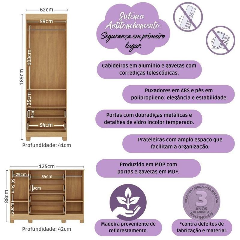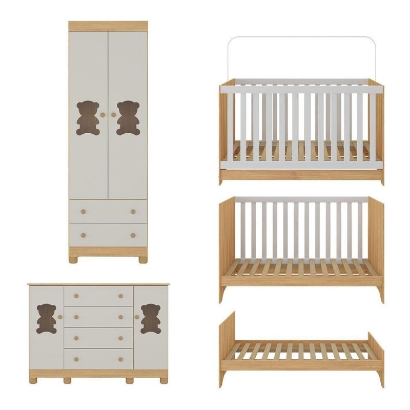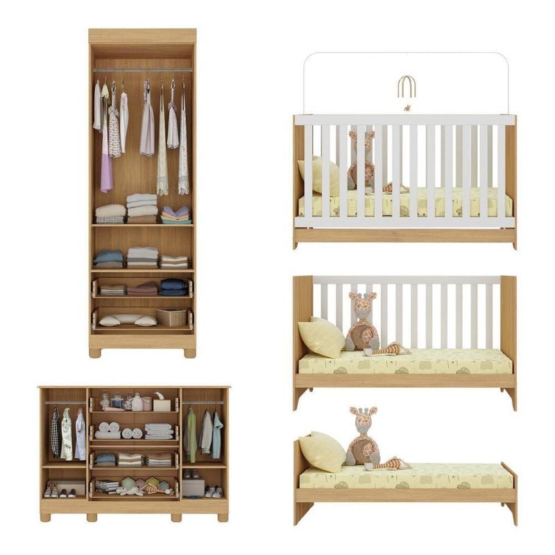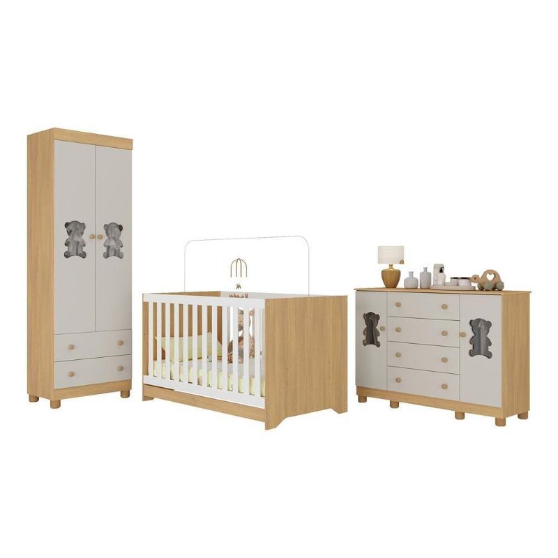 Quarto De Bebê Completo Com Berço Americano 3 Em 1 Fofura Multimóveis MP4657 Madeirado/off WhiteO Quarto de Bebê Completo com Berço Americano 3 em 1 p/Colchão 130x70cm Multimóveis MP4657 é cheio de carinho e significado! Pensado para acolher com amor, o conjunto transforma o cantinho do bebê em um espaço especial para os primeiros sorrisos e momentos inesquecíveis em família.Diferenciais:- 3 anos de garantia contra defeitos de fabricação e material.- Conjunto produzido em madeira de reflorestamento (MDP 12/15mm) com acabamento acetinado (cerca de 20% de brilho): sustentabilidade e durabilidade.- Berço 3 em 1 que se transforma em sofá e minicama, acompanhando o crescimento do bebê.- Lastro em madeira com 3 regulagens de altura e suporte para mosquiteiro para noites mais tranquilas e protegidas.- Berço certificado pelo INMETRO (Selo nº 0000085/2018).- Padrão americano (tamanho do colchão indicado: 130x70cm). Colchão não incluso.- Grade Soft (PVC): ecologicamente correta, com matéria-prima livre de metais pesados, atóxica e com proteção antiamarelamento.- Guarda-roupa com 2 portas e 2 gavetas: amplo espaço para organizar roupinhas e acessórios.- Cômoda com 2 portas e 4 gavetas.- Portas e gavetas produzidas em MDF.- Detalhes de vidro incolor temperado 3mm nas portas: toque charmoso que permite visualizar o interior dos móveis.- Corrediças telescópicas: abertura total e silenciosa das gavetas.- Cabideiro em alumínio: permite acomodar roupas longas e curtas para que não amassem.- Puxadores em ABS delicados e práticos.- Pés em polipropileno e rodapés: visual elegante e estabilidade para o guarda-roupa e a cômoda.- Sistema antitombamento no guarda-roupa e cômoda: proporciona segurança para o bebê e tranquilidade aos pais.Conteúdo da Embalagem:1 (um) Berço1 (um) Guarda-roupa1 (uma) CômodaManual de MontagemKit FerragemDimensões do Produto Montado:Berço - Altura: 80,5cm | Largura: 133cm | Profundidade: 77,5cmGuarda-roupa - Altura: 189cm | Largura: 62cm | Profundidade: 41cmCômoda - Altura: 88cm | Largura: 125cm | Profundidade: 42cm*Você pode consultar as medidas detalhadas na imagem técnica do produto.Observações Importantes:*As cores dos produtos podem sofrer variações de tonalidade de acordo com as configurações do seu dispositivo.*Aqui na Loja Multimóveis, você pode concluir sua compra facilmente com toda segurança. A entrega é garantida e você está em 1° lugar.*Imagens meramente ilustrativas (decoração não inclusa).*Os produtos serão entregues desmontados e não disponibilizamos o serviço de montagem. Acabamento: Finish Foil/Pintura UV | Tonalidade: Branco | Material: MDP | Referência do Modelo: MP4657 | Coleção: Fofura | Sistema de Montagem: O produto acompanha manual de montagem juntamente com kit ferragem. O produto será entregue desmontado e não disponibilizamos o serviço de montagem. | Instruções de Cuidado: Limpar com pano seco para retirar o pó. Não utilizar produtos químicos ou abrasivos. Não aplicar lustra móveis. | Produto Composto por: 1 berço, 1 guarda-roupa, 1 cômoda, manual de montagem e kit ferragem. | Altura Montado: 189 | Largura Montado: 62 | Profundidade Montado: 41 | Tamanho (L x A x P): 62 x 189 x 41 | Peso do Produto: 102 | Corrediça: Telescópica | Inclui Berço: Sim | Acompanha Colchão: Não | Inclui Guarda-Roupa: Sim | Inclui Gaveteiro: Sim | Material do Puxador: ABS | Quantidade de Portas: 4 | Quantidade de Gavetas: 6 | Quantidade de Puxadores: 16 | RBN: 17352335011 | Quantidade de Pés: 10 | Quantidade de Peças: 3 | Material dos Pés: Polipropileno | Produto: Conjunto de Quarto | Portátil: Não | Registro INMETRO: 0000085/2018 | Fabricante: Multimóveis | Regulamentado pelo INMETRO: Sim | Garantia do Fabricante: 3 | Requer Montagem: Sim | Altura do Produto com Embalagem: 47 | Largura do Produto com Embalagem: 82 | Comprimento do Produto com Embalagem: 188 | Peso do Produto com Embalagem: 102 | Nome do Produto no Fornecedor: | Estado de Origem: RS | Produto precisa de Montagem?: Sim, sugerimos a contratação do nosso serviço de montagem (para os CEPs em que o serviço está disponível) ou de algum profissional experiente de sua preferência | Tempo de Garantia: 3 meses | Descrição do Tamanho: (L x A x P): 62 x 189 x 41 cm | Tipo de cama: Berço | Marca: Multimóveis | Tamanho da cama: Berço | Quantidade de criados mudos: 0 | Tipo de madeira: N/A | Comprimento da cama: 77,5 cm | Altura da cama: 80,5 cm | É Kit de fábrica: Sim | Estilo: Moderno | Largura da cama: 133 cm | Idade recomendada: 0-24 meses | Idade: Bebê | Quantidade de caixas de embalagem: 05 | Destaque 1: Produzido em MDP/MDF com acabamento acetinado: durabilidade e resistência. | Destaque 2: Berço 3 em 1: transforma-se em sofá e minicama, acompanhando as fases da criança. | Destaque 3: Guarda-roupa com 2 portas, 2 gavetas e cabideiro de alumínio. | Destaque 4: Cômoda com 2 portas e 4 gavetas: amplo espaço interno. | Destaque 5: Corrediças telescópicas: abertura total e silenciosa das gavetas. | Baterias são necessárias?: Não | Certificação de teste externa: 0000085/2018 | Is Fragile: Não | Dimensões do item P x L x A: length#value=41;length#unit=centimeters;width#value=62;width#unit=centimeters;height#value=189;height#unit=centimeters | Quantidade de itens: 1 | Peso do item: unit=kilograms;value=102 | Número da peça: MP4657.697 | Inclui manual de montagem: Sim | Tipo de Garantia: Garantia do Fabricante | Montagem: Necessita Montagem | País de Origem: Brasil | Palavras-chave: berco com colchao, berco pequeno bercos moveis, berco que vira cama, berco mini cama, berco, quarto completo de bebe, berco e guarda roupa, kit quarto bebe, quarto de bebe completo, quarto de bebe, quarto bebe, jogo de quarto bebe, quarto completo bebe, kit quarto bebe moveis, quarto infantil bebe, kit quarto de bebe, berço e guarda roupa | Inclui cômoda trocador: Não | Cor: Madeirado/Off White