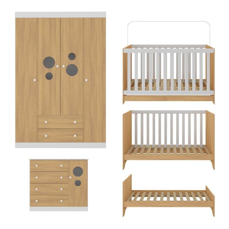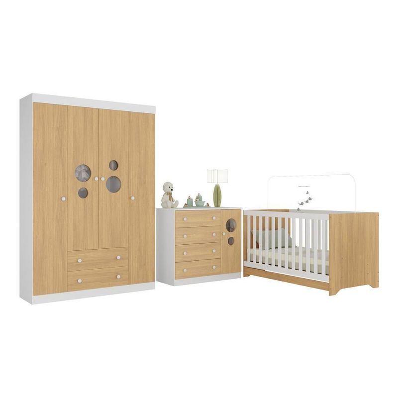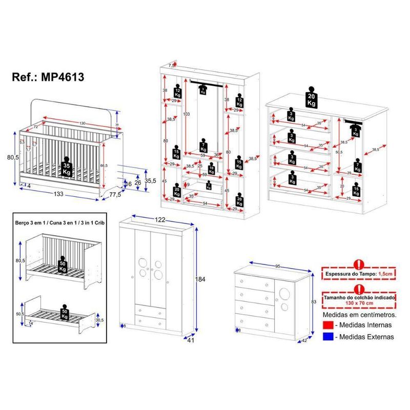 Quarto De Bebê Completo Com Berço Americano 3 Em 1 Pirulito Multimóveis MP4613 Branco/madeiradoO primeiro cantinho do bebê merece ser cheio de amor e conforto. O Quarto de Bebê Completo com Berço Americano 3 em 1 p/Colchão 130x70cm Multimóveis MP4613 traz tudo o que você precisa para montar um espaço acolhedor, seguro e cheio de ternura — perfeito para receber seu pequeno com tranquilidade e praticidade.Diferenciais:- 3 anos de garantia contra defeitos de fabricação e material.- Conjunto produzido em madeira de reflorestamento (MDP 12/15mm) com acabamento acetinado (cerca de 20% de brilho): sustentabilidade e durabilidade.- Berço 3 em 1 que se transforma em sofá e minicama, acompanhando o crescimento do bebê.- Lastro em madeira com 3 regulagens de altura e suporte para mosquiteiro para noites mais tranquilas e protegidas.- Grade Soft (PVC): ecologicamente correta, com matéria-prima livre de metais pesados, atóxica e com proteção antiamarelamento.- Berço certificado pelo INMETRO (Selo nº 0000085/2018).- Padrão americano (tamanho do colchão indicado: 130x70cm). Colchão não incluso.- Guarda-roupa com 4 portas e 2 gavetas: amplo espaço para organizar roupinhas e acessórios.- Cômoda com 1 porta e 4 gavetas.- Portas e gavetas produzidas em MDF.- Detalhes de vidro incolor temperado 3mm nas portas: toque charmoso que permite visualizar o interior dos móveis.- Corrediças telescópicas: abertura total e silenciosa das gavetas.- Cabideiro em alumínio: permite acomodar roupas longas e curtas para que não amassem.- Puxadores em ABS delicados e práticos.- Rodapés: visual elegante para o guarda-roupa e a cômoda.- Sistema antitombamento no guarda-roupa e cômoda: proporciona segurança para o bebê e tranquilidade aos pais.Conteúdo da Embalagem:1 (um) Berço1 (um) Guarda-roupa1 (uma) CômodaManual de MontagemKit FerragemDimensões do Produto Montado:Berço - Altura: 80,5cm | Largura: 133cm | Profundidade: 77,5cmGuarda-roupa - Altura: 184cm | Largura: 122cm | Profundidade: 41cmCômoda - Altura: 83cm | Largura: 95cm | Profundidade: 42cm*Você pode consultar as medidas detalhadas na imagem técnica do produto.Observações Importantes:*As cores dos produtos podem sofrer variações de tonalidade de acordo com as configurações do seu dispositivo.*Aqui na Loja Multimóveis, você pode concluir sua compra facilmente com toda segurança. A entrega é garantida e você está em 1° lugar.*Imagens meramente ilustrativas (decoração não inclusa).*Os produtos serão entregues desmontados e não disponibilizamos o serviço de montagem. Acabamento: Finish Foil/Pintura UV | Tonalidade: Branco | Material: MDP/MDF | Referência do Modelo: MP4613 | Coleção: Pirulito | Sistema de Montagem: O produto acompanha manual de montagem juntamente com kit ferragem. O produto será entregue desmontado e não disponibilizamos o serviço de montagem. | Instruções de Cuidado: Limpar com pano seco para retirar o pó. Não utilizar produtos químicos ou abrasivos. Não aplicar lustra móveis. | Produto Composto por: 1 berço, 1 guarda-roupa, 1 cômoda, manual de montagem e kit ferragem. | Altura Montado: 184 | Largura Montado: 122 | Profundidade Montado: 41 | Tamanho (L x A x P): 122 x 184 x 41 | Peso do Produto: 125 | Corrediça: Telescópica | Inclui Berço: Sim | Acompanha Colchão: Não | Inclui Guarda-Roupa: Sim | Inclui Gaveteiro: Sim | Material do Puxador: ABS | Quantidade de Portas: 5 | Quantidade de Gavetas: 6 | Quantidade de Puxadores: 17 | RBN: 17352335011 | Quantidade de Pés: 0 | Quantidade de Peças: 3 | Material dos Pés: N/A | Produto: Conjunto de Quarto | Portátil: Não | Registro INMETRO: 0000085/2018 | Fabricante: Multimóveis | Regulamentado pelo INMETRO: Sim | Garantia do Fabricante: 3 | Requer Montagem: Sim | Altura do Produto com Embalagem: 54 | Largura do Produto com Embalagem: 82 | Comprimento do Produto com Embalagem: 188 | Peso do Produto com Embalagem: 125 | Nome do Produto no Fornecedor: | Estado de Origem: RS | Produto precisa de Montagem?: Sim, sugerimos a contratação do nosso serviço de montagem (para os CEPs em que o serviço está disponível) ou de algum profissional experiente de sua preferência | Tempo de Garantia: 3 meses | Descrição do Tamanho: (L x A x P): 122 x 184 x 41 cm | Tipo de cama: Berço | Marca: Multimóveis | Tamanho da cama: Berço | Quantidade de criados mudos: 0 | Tipo de madeira: N/A | Comprimento da cama: 77,5 cm | Altura da cama: 80,5 cm | É Kit de fábrica: Sim | Estilo: Moderno | Largura da cama: 133 cm | Idade recomendada: 0-24 meses | Idade: Bebê | Quantidade de caixas de embalagem: 06 | Destaque 1: Produzido em MDP/MDF com acabamento acetinado: durabilidade e resistência. | Destaque 2: Berço 3 em 1: transforma-se em sofá e minicama, acompanhando as fases da criança. | Destaque 3: Guarda-roupa com 4 portas, 2 gavetas e cabideiro de alumínio. | Destaque 4: Cômoda com 1 porta e 4 gavetas: amplo espaço interno. | Destaque 5: Corrediças telescópicas: abertura total e silenciosa das gavetas. | Baterias são necessárias?: Não | Certificação de teste externa: 0000085/2018 | Is Fragile: Não | Dimensões do item P x L x A: length#value=41;length#unit=centimeters;width#value=122;width#unit=centimeters;height#value=184;height#unit=centimeters | Quantidade de itens: 1 | Peso do item: unit=kilograms;value=125 | Número da peça: MP4613.499 | Inclui manual de montagem: Sim | Tipo de Garantia: Garantia do Fabricante | Montagem: Necessita Montagem | País de Origem: Brasil | Palavras-chave: berco com colchao, berco pequeno bercos moveis, berco que vira cama, berco mini cama, berco, quarto completo de bebe, berco e guarda roupa, kit quarto bebe, quarto de bebe completo, quarto de bebe, quarto bebe, jogo de quarto bebe, quarto completo bebe, kit quarto bebe moveis, quarto infantil bebe, kit quarto de bebe, berço e guarda roupa | Inclui cômoda trocador: Não | Cor: Branco/Madeirado