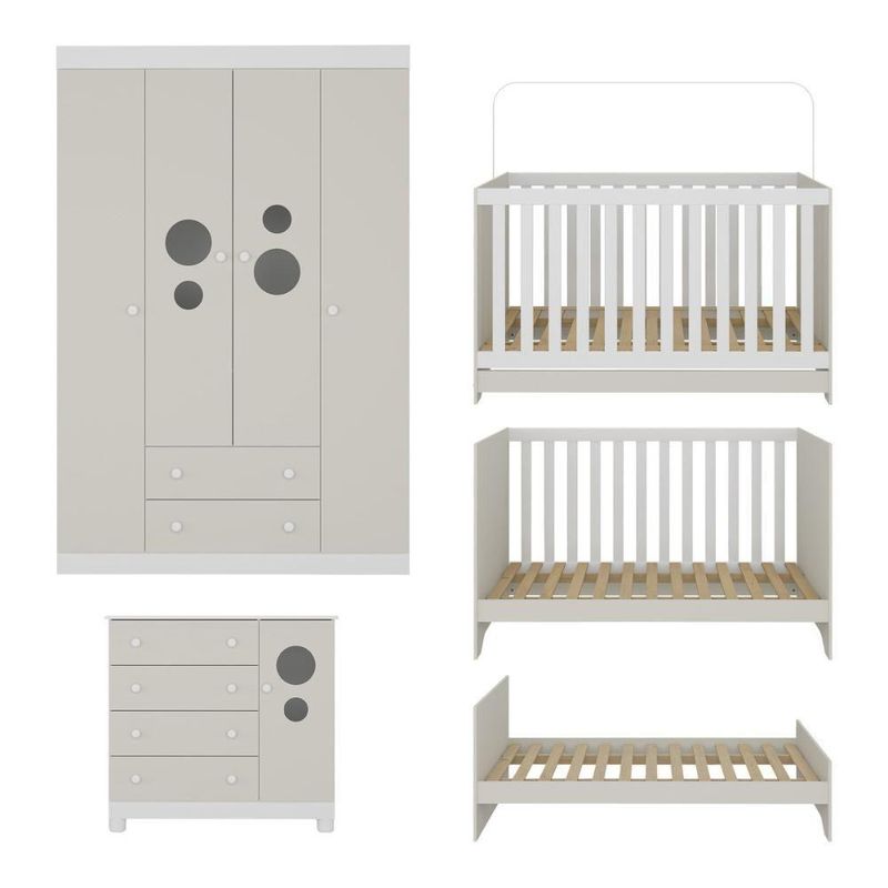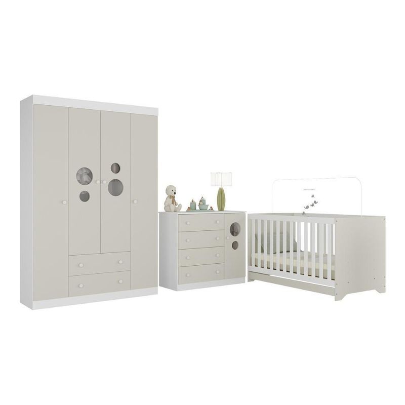 Quarto De Bebê Completo Com Berço Americano 3 Em 1 Pirulito Multimóveis MP4613 Branco/off WhiteO primeiro cantinho do bebê merece ser cheio de amor e conforto. O Quarto de Bebê Completo com Berço Americano 3 em 1 p/Colchão 130x70cm Multimóveis MP4613 traz tudo o que você precisa para montar um espaço acolhedor, seguro e cheio de ternura — perfeito para receber seu pequeno com tranquilidade e praticidade.Diferenciais:- 3 anos de garantia contra defeitos de fabricação e material.- Conjunto produzido em madeira de reflorestamento (MDP 12/15mm) com acabamento acetinado (cerca de 20% de brilho): sustentabilidade e durabilidade.- Berço 3 em 1 que se transforma em sofá e minicama, acompanhando o crescimento do bebê.- Lastro em madeira com 3 regulagens de altura e suporte para mosquiteiro para noites mais tranquilas e protegidas.- Grade Soft (PVC): ecologicamente correta, com matéria-prima livre de metais pesados, atóxica e com proteção antiamarelamento.- Berço certificado pelo INMETRO (Selo nº 0000085/2018).- Padrão americano (tamanho do colchão indicado: 130x70cm). Colchão não incluso.- Guarda-roupa com 4 portas e 2 gavetas: amplo espaço para organizar roupinhas e acessórios.- Cômoda com 1 porta e 4 gavetas.- Portas e gavetas produzidas em MDF.- Detalhes de vidro incolor temperado 3mm nas portas: toque charmoso que permite visualizar o interior dos móveis.- Corrediças telescópicas: abertura total e silenciosa das gavetas.- Cabideiro em alumínio: permite acomodar roupas longas e curtas para que não amassem.- Puxadores em ABS delicados e práticos.- Rodapés: visual elegante para o guarda-roupa e a cômoda.- Sistema antitombamento no guarda-roupa e cômoda: proporciona segurança para o bebê e tranquilidade aos pais.Conteúdo da Embalagem:1 (um) Berço1 (um) Guarda-roupa1 (uma) CômodaManual de MontagemKit FerragemDimensões do Produto Montado:Berço - Altura: 80,5cm | Largura: 133cm | Profundidade: 77,5cmGuarda-roupa - Altura: 184cm | Largura: 122cm | Profundidade: 41cmCômoda - Altura: 83cm | Largura: 95cm | Profundidade: 42cm*Você pode consultar as medidas detalhadas na imagem técnica do produto.Observações Importantes:*As cores dos produtos podem sofrer variações de tonalidade de acordo com as configurações do seu dispositivo.*Aqui na Loja Multimóveis, você pode concluir sua compra facilmente com toda segurança. A entrega é garantida e você está em 1° lugar.*Imagens meramente ilustrativas (decoração não inclusa).*Os produtos serão entregues desmontados e não disponibilizamos o serviço de montagem. Acabamento: Finish Foil/Pintura UV | Tonalidade: Branco | Material: MDP/MDF | Referência do Modelo: MP4613 | Coleção: Pirulito | Sistema de Montagem: O produto acompanha manual de montagem juntamente com kit ferragem. O produto será entregue desmontado e não disponibilizamos o serviço de montagem. | Instruções de Cuidado: Limpar com pano seco para retirar o pó. Não utilizar produtos químicos ou abrasivos. Não aplicar lustra móveis. | Produto Composto por: 1 berço, 1 guarda-roupa, 1 cômoda, manual de montagem e kit ferragem. | Altura Montado: 184 | Largura Montado: 122 | Profundidade Montado: 41 | Tamanho (L x A x P): 122 x 184 x 41 | Peso do Produto: 125 | Corrediça: Telescópica | Inclui Berço: Sim | Acompanha Colchão: Não | Inclui Guarda-Roupa: Sim | Inclui Gaveteiro: Sim | Material do Puxador: ABS | Quantidade de Portas: 5 | Quantidade de Gavetas: 6 | Quantidade de Puxadores: 17 | RBN: 17352335011 | Quantidade de Pés: 0 | Quantidade de Peças: 3 | Material dos Pés: N/A | Produto: Conjunto de Quarto | Portátil: Não | Registro INMETRO: 0000085/2018 | Fabricante: Multimóveis | Regulamentado pelo INMETRO: Sim | Garantia do Fabricante: 3 | Requer Montagem: Sim | Altura do Produto com Embalagem: 54 | Largura do Produto com Embalagem: 82 | Comprimento do Produto com Embalagem: 188 | Peso do Produto com Embalagem: 125 | Nome do Produto no Fornecedor: | Estado de Origem: RS | Produto precisa de Montagem?: Sim, sugerimos a contratação do nosso serviço de montagem (para os CEPs em que o serviço está disponível) ou de algum profissional experiente de sua preferência | Tempo de Garantia: 3 meses | Descrição do Tamanho: (L x A x P): 122 x 184 x 41 cm | Tipo de cama: Berço | Marca: Multimóveis | Tamanho da cama: Berço | Quantidade de criados mudos: 0 | Tipo de madeira: N/A | Comprimento da cama: 77,5 cm | Altura da cama: 80,5 cm | É Kit de fábrica: Sim | Estilo: Moderno | Largura da cama: 133 cm | Idade recomendada: 0-24 meses | Idade: Bebê | Quantidade de caixas de embalagem: 06 | Destaque 1: Produzido em MDP/MDF com acabamento acetinado: durabilidade e resistência. | Destaque 2: Berço 3 em 1: transforma-se em sofá e minicama, acompanhando as fases da criança. | Destaque 3: Guarda-roupa com 4 portas, 2 gavetas e cabideiro de alumínio. | Destaque 4: Cômoda com 1 porta e 4 gavetas: amplo espaço interno. | Destaque 5: Corrediças telescópicas: abertura total e silenciosa das gavetas. | Baterias são necessárias?: Não | Certificação de teste externa: 0000085/2018 | Is Fragile: Não | Dimensões do item P x L x A: length#value=41;length#unit=centimeters;width#value=122;width#unit=centimeters;height#value=184;height#unit=centimeters | Quantidade de itens: 1 | Peso do item: unit=kilograms;value=125 | Número da peça: MP4613.499 | Inclui manual de montagem: Sim | Tipo de Garantia: Garantia do Fabricante | Montagem: Necessita Montagem | País de Origem: Brasil | Palavras-chave: berco com colchao, berco pequeno bercos moveis, berco que vira cama, berco mini cama, berco, quarto completo de bebe, berco e guarda roupa, kit quarto bebe, quarto de bebe completo, quarto de bebe, quarto bebe, jogo de quarto bebe, quarto completo bebe, kit quarto bebe moveis, quarto infantil bebe, kit quarto de bebe, berço e guarda roupa | Inclui cômoda trocador: Não | Cor: Branco/Off White