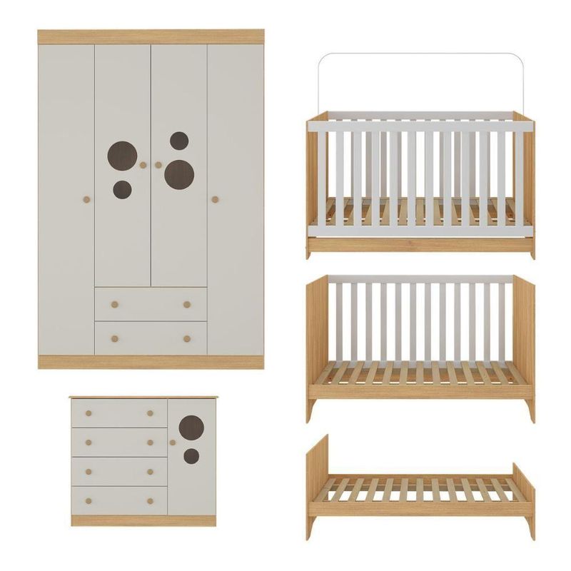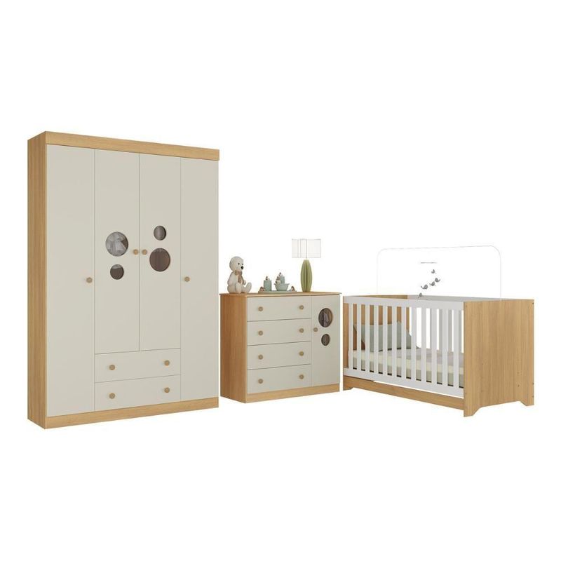 Quarto De Bebê Completo Com Berço Americano 3 Em 1 Pirulito Multimóveis MP4613 Madeirado/off WhiteO primeiro cantinho do bebê merece ser cheio de amor e conforto. O Quarto de Bebê Completo com Berço Americano 3 em 1 p/Colchão 130x70cm Multimóveis MP4613 traz tudo o que você precisa para montar um espaço acolhedor, seguro e cheio de ternura — perfeito para receber seu pequeno com tranquilidade e praticidade.Diferenciais:- 3 anos de garantia contra defeitos de fabricação e material.- Conjunto produzido em madeira de reflorestamento (MDP 12/15mm) com acabamento acetinado (cerca de 20% de brilho): sustentabilidade e durabilidade.- Berço 3 em 1 que se transforma em sofá e minicama, acompanhando o crescimento do bebê.- Lastro em madeira com 3 regulagens de altura e suporte para mosquiteiro para noites mais tranquilas e protegidas.- Grade Soft (PVC): ecologicamente correta, com matéria-prima livre de metais pesados, atóxica e com proteção antiamarelamento.- Berço certificado pelo INMETRO (Selo nº 0000085/2018).- Padrão americano (tamanho do colchão indicado: 130x70cm). Colchão não incluso.- Guarda-roupa com 4 portas e 2 gavetas: amplo espaço para organizar roupinhas e acessórios.- Cômoda com 1 porta e 4 gavetas.- Portas e gavetas produzidas em MDF.- Detalhes de vidro incolor temperado 3mm nas portas: toque charmoso que permite visualizar o interior dos móveis.- Corrediças telescópicas: abertura total e silenciosa das gavetas.- Cabideiro em alumínio: permite acomodar roupas longas e curtas para que não amassem.- Puxadores em ABS delicados e práticos.- Rodapés: visual elegante para o guarda-roupa e a cômoda.- Sistema antitombamento no guarda-roupa e cômoda: proporciona segurança para o bebê e tranquilidade aos pais.Conteúdo da Embalagem:1 (um) Berço1 (um) Guarda-roupa1 (uma) CômodaManual de MontagemKit FerragemDimensões do Produto Montado:Berço - Altura: 80,5cm | Largura: 133cm | Profundidade: 77,5cmGuarda-roupa - Altura: 184cm | Largura: 122cm | Profundidade: 41cmCômoda - Altura: 83cm | Largura: 95cm | Profundidade: 42cm*Você pode consultar as medidas detalhadas na imagem técnica do produto.Observações Importantes:*As cores dos produtos podem sofrer variações de tonalidade de acordo com as configurações do seu dispositivo.*Aqui na Loja Multimóveis, você pode concluir sua compra facilmente com toda segurança. A entrega é garantida e você está em 1° lugar.*Imagens meramente ilustrativas (decoração não inclusa).*Os produtos serão entregues desmontados e não disponibilizamos o serviço de montagem. Acabamento: Finish Foil/Pintura UV | Tonalidade: Branco | Material: MDP/MDF | Referência do Modelo: MP4613 | Coleção: Pirulito | Sistema de Montagem: O produto acompanha manual de montagem juntamente com kit ferragem. O produto será entregue desmontado e não disponibilizamos o serviço de montagem. | Instruções de Cuidado: Limpar com pano seco para retirar o pó. Não utilizar produtos químicos ou abrasivos. Não aplicar lustra móveis. | Produto Composto por: 1 berço, 1 guarda-roupa, 1 cômoda, manual de montagem e kit ferragem. | Altura Montado: 184 | Largura Montado: 122 | Profundidade Montado: 41 | Tamanho (L x A x P): 122 x 184 x 41 | Peso do Produto: 125 | Corrediça: Telescópica | Inclui Berço: Sim | Acompanha Colchão: Não | Inclui Guarda-Roupa: Sim | Inclui Gaveteiro: Sim | Material do Puxador: ABS | Quantidade de Portas: 5 | Quantidade de Gavetas: 6 | Quantidade de Puxadores: 17 | RBN: 17352335011 | Quantidade de Pés: 0 | Quantidade de Peças: 3 | Material dos Pés: N/A | Produto: Conjunto de Quarto | Portátil: Não | Registro INMETRO: 0000085/2018 | Fabricante: Multimóveis | Regulamentado pelo INMETRO: Sim | Garantia do Fabricante: 3 | Requer Montagem: Sim | Altura do Produto com Embalagem: 54 | Largura do Produto com Embalagem: 82 | Comprimento do Produto com Embalagem: 188 | Peso do Produto com Embalagem: 125 | Nome do Produto no Fornecedor: | Estado de Origem: RS | Produto precisa de Montagem?: Sim, sugerimos a contratação do nosso serviço de montagem (para os CEPs em que o serviço está disponível) ou de algum profissional experiente de sua preferência | Tempo de Garantia: 3 meses | Descrição do Tamanho: (L x A x P): 122 x 184 x 41 cm | Tipo de cama: Berço | Marca: Multimóveis | Tamanho da cama: Berço | Quantidade de criados mudos: 0 | Tipo de madeira: N/A | Comprimento da cama: 77,5 cm | Altura da cama: 80,5 cm | É Kit de fábrica: Sim | Estilo: Moderno | Largura da cama: 133 cm | Idade recomendada: 0-24 meses | Idade: Bebê | Quantidade de caixas de embalagem: 06 | Destaque 1: Produzido em MDP/MDF com acabamento acetinado: durabilidade e resistência. | Destaque 2: Berço 3 em 1: transforma-se em sofá e minicama, acompanhando as fases da criança. | Destaque 3: Guarda-roupa com 4 portas, 2 gavetas e cabideiro de alumínio. | Destaque 4: Cômoda com 1 porta e 4 gavetas: amplo espaço interno. | Destaque 5: Corrediças telescópicas: abertura total e silenciosa das gavetas. | Baterias são necessárias?: Não | Certificação de teste externa: 0000085/2018 | Is Fragile: Não | Dimensões do item P x L x A: length#value=41;length#unit=centimeters;width#value=122;width#unit=centimeters;height#value=184;height#unit=centimeters | Quantidade de itens: 1 | Peso do item: unit=kilograms;value=125 | Número da peça: MP4613.499 | Inclui manual de montagem: Sim | Tipo de Garantia: Garantia do Fabricante | Montagem: Necessita Montagem | País de Origem: Brasil | Palavras-chave: berco com colchao, berco pequeno bercos moveis, berco que vira cama, berco mini cama, berco, quarto completo de bebe, berco e guarda roupa, kit quarto bebe, quarto de bebe completo, quarto de bebe, quarto bebe, jogo de quarto bebe, quarto completo bebe, kit quarto bebe moveis, quarto infantil bebe, kit quarto de bebe, berço e guarda roupa | Inclui cômoda trocador: Não | Cor: Madeirado/Off White