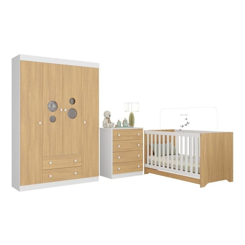 Quarto De Bebê Completo Com Berço Americano 3 Em 1 Pirulito Multimóveis MP4617 Branco/madeiradoTudo o que o bebê precisa está aqui! O Quarto de Bebê Completo com Berço Americano 3 em 1 p/Colchão 130x70cm Multimóveis MP4617 garante funcionalidade, beleza e qualidade em um único conjunto. A solução ideal para quem quer montar um ambiente completo sem complicações.Diferenciais:- 3 anos de garantia contra defeitos de fabricação e material.- Conjunto produzido em madeira de reflorestamento (MDP 12/15mm) com acabamento acetinado (cerca de 20% de brilho): sustentabilidade e durabilidade.- Berço 3 em 1 que se transforma em sofá e minicama, acompanhando o crescimento do bebê.- Lastro em madeira com 3 regulagens de altura e suporte para mosquiteiro para noites mais tranquilas e protegidas.- Berço certificado pelo INMETRO (Selo nº 0000085/2018).- Padrão americano (tamanho do colchão indicado: 130x70cm). Colchão não incluso.- Grade Soft (PVC): ecologicamente correta, com matéria-prima livre de metais pesados, atóxica e com proteção antiamarelamento.- Guarda-roupa com 4 portas e 2 gavetas produzidas em MDF: amplo espaço para organizar roupinhas e acessórios.- Cômoda com 4 gavetas.- Detalhes de vidro incolor temperado 3mm nas portas: toque charmoso que permite visualizar o interior dos móveis.- Corrediças telescópicas: abertura total e silenciosa das gavetas.- Cabideiro em alumínio: permite acomodar roupas longas e curtas para que não amassem.- Puxadores em ABS delicados e práticos.- Rodapés: visual elegante para o guarda-roupa e a cômoda.- Sistema antitombamento no guarda-roupa e cômoda: proporciona segurança para o bebê e tranquilidade aos pais.Conteúdo da Embalagem:1 (um) Berço1 (um) Guarda-roupa1 (uma) CômodaManual de MontagemKit FerragemDimensões do Produto Montado:Berço - Altura: 80,5cm | Largura: 133cm | Profundidade: 77,5cmGuarda-roupa - Altura: 184cm | Largura: 122cm | Profundidade: 41cmCômoda - Altura: 83cm | Largura: 65cm | Profundidade: 42cm*Você pode consultar as medidas detalhadas na imagem técnica do produto.Observações Importantes:*As cores dos produtos podem sofrer variações de tonalidade de acordo com as configurações do seu dispositivo.*Aqui na Loja Multimóveis, você pode concluir sua compra facilmente com toda segurança. A entrega é garantida e você está em 1° lugar.*Imagens meramente ilustrativas (decoração não inclusa).*Os produtos serão entregues desmontados e não disponibilizamos o serviço de montagem. Acabamento: Finish Foil/Pintura UV | Tonalidade: Branco | Material: MDP/MDF | Referência do Modelo: MP4617 | Coleção: Pirulito | Sistema de Montagem: O produto acompanha manual de montagem juntamente com kit ferragem. O produto será entregue desmontado e não disponibilizamos o serviço de montagem. | Instruções de Cuidado: Limpar com pano seco para retirar o pó. Não utilizar produtos químicos ou abrasivos. Não aplicar lustra móveis. | Produto Composto por: 1 berço, 1 guarda-roupa, 1 cômoda, manual de montagem e kit ferragem. | Altura Montado: 184 | Largura Montado: 122 | Profundidade Montado: 41 | Tamanho (L x A x P): 122 x 184 x 41 | Peso do Produto: 116 | Corrediça: Telescópica | Inclui Berço: Sim | Acompanha Colchão: Não | Inclui Guarda-Roupa: Sim | Inclui Gaveteiro: Sim | Material do Puxador: ABS | Quantidade de Portas: 4 | Quantidade de Gavetas: 6 | Quantidade de Puxadores: 16 | RBN: 17352335011 | Quantidade de Pés: 0 | Quantidade de Peças: 3 | Material dos Pés: N/A | Produto: Conjunto de Quarto | Portátil: Não | Registro INMETRO: 0000085/2018 | Fabricante: Multimóveis | Regulamentado pelo INMETRO: Sim | Garantia do Fabricante: 3 | Requer Montagem: Sim | Altura do Produto com Embalagem: 54 | Largura do Produto com Embalagem: 82 | Comprimento do Produto com Embalagem: 188 | Peso do Produto com Embalagem: 116 | Nome do Produto no Fornecedor: | Estado de Origem: RS | Produto precisa de Montagem?: Sim, sugerimos a contratação do nosso serviço de montagem (para os CEPs em que o serviço está disponível) ou de algum profissional experiente de sua preferência | Tempo de Garantia: 3 meses | Descrição do Tamanho: (L x A x P): 122 x 184 x 41 cm | Tipo de cama: Berço | Marca: Multimóveis | Tamanho da cama: Berço | Quantidade de criados mudos: 0 | Tipo de madeira: N/A | Comprimento da cama: 77,5 cm | Altura da cama: 80,5 cm | É Kit de fábrica: Sim | Estilo: Moderno | Largura da cama: 133 cm | Idade recomendada: 0-24 meses | Idade: Bebê | Quantidade de caixas de embalagem: 06 | Destaque 1: Produzido em MDP/MDF com acabamento acetinado: durabilidade e resistência. | Destaque 2: Berço 3 em 1: transforma-se em sofá e minicama, acompanhando as fases da criança. | Destaque 3: Guarda-roupa com 4 portas, 2 gavetas e cabideiro de alumínio. | Destaque 4: Cômoda com 4 gavetas: amplo espaço interno. | Destaque 5: Corrediças telescópicas: abertura total e silenciosa das gavetas. | Baterias são necessárias?: Não | Certificação de teste externa: 0000085/2018 | Is Fragile: Não | Dimensões do item P x L x A: length#value=41;length#unit=centimeters;width#value=122;width#unit=centimeters;height#value=184;height#unit=centimeters | Quantidade de itens: 1 | Peso do item: unit=kilograms;value=116 | Número da peça: MP4617.499 | Inclui manual de montagem: Sim | Tipo de Garantia: Garantia do Fabricante | Montagem: Necessita Montagem | País de Origem: Brasil | Palavras-chave: berco com colchao, berco pequeno bercos moveis, berco que vira cama, berco mini cama, berco, quarto completo de bebe, berco e guarda roupa, kit quarto bebe, quarto de bebe completo, quarto de bebe, quarto bebe, jogo de quarto bebe, quarto completo bebe, kit quarto bebe moveis, quarto infantil bebe, kit quarto de bebe, berço e guarda roupa | Inclui cômoda trocador: Não | Cor: Branco/Madeirado