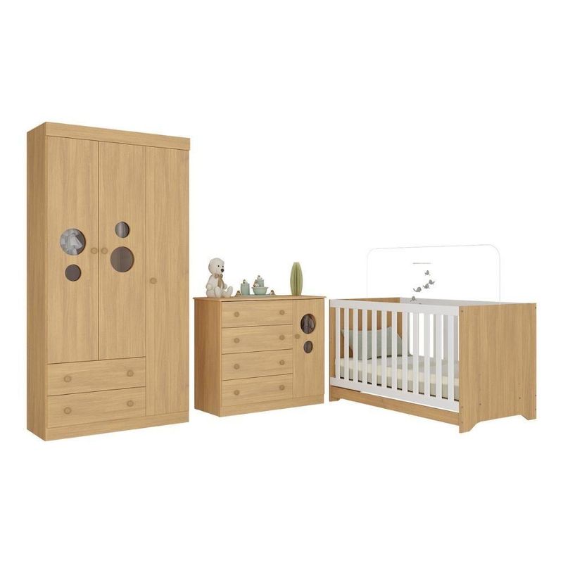 Quarto De Bebê Completo Com Berço Americano 3 Em 1 Pirulito Multimóveis MP4621 MadeiradoO Quarto de Bebê Completo com Berço Americano 3 em 1 p/Colchão 130x70cm Multimóveis MP4621 foi pensado para embalar os primeiros sonhos do pequeno e eternizar lembranças. Cada detalhe foi criado para transmitir amor, carinho e serenidade — transformando o espaço em um refúgio cheio de afeto.Diferenciais:- 3 anos de garantia contra defeitos de fabricação e material.- Conjunto produzido em madeira de reflorestamento (MDP 12/15mm) com acabamento acetinado (cerca de 20% de brilho): sustentabilidade e durabilidade.- Berço 3 em 1 que se transforma em sofá e minicama, acompanhando o crescimento do bebê.- Lastro em madeira com 3 regulagens de altura e suporte para mosquiteiro para noites mais tranquilas e protegidas.- Berço certificado pelo INMETRO (Selo nº 0000085/2018).- Padrão americano (tamanho do colchão indicado: 130x70cm). Colchão não incluso.- Grade Soft (PVC): ecologicamente correta, com matéria-prima livre de metais pesados, atóxica e com proteção antiamarelamento.- Guarda-roupa com 3 portas e 2 gavetas: amplo espaço para organizar roupinhas e acessórios.- Cômoda com 1 porta e 4 gavetas.- Portas e gavetas produzidas em MDF.- Detalhes de vidro incolor temperado 3mm nas portas: toque charmoso que permite visualizar o interior dos móveis.- Corrediças telescópicas: abertura total e silenciosa das gavetas.- Cabideiro em alumínio: permite acomodar roupas longas e curtas para que não amassem.- Puxadores em ABS delicados e práticos.- Rodapés: visual elegante para o guarda-roupa e a cômoda.- Sistema antitombamento no guarda-roupa e cômoda: proporciona segurança para o bebê e tranquilidade aos pais.Conteúdo da Embalagem:1 (um) Berço1 (um) Guarda-roupa1 (uma) CômodaManual de MontagemKit FerragemDimensões do Produto Montado:Berço - Altura: 80,5cm | Largura: 133cm | Profundidade: 77,5cmGuarda-roupa - Altura: 184cm | Largura: 92cm | Profundidade: 41cmCômoda - Altura: 83cm | Largura: 95cm | Profundidade: 42cm*Você pode consultar as medidas detalhadas na imagem técnica do produto.Observações Importantes:*As cores dos produtos podem sofrer variações de tonalidade de acordo com as configurações do seu dispositivo.*Aqui na Loja Multimóveis, você pode concluir sua compra facilmente com toda segurança. A entrega é garantida e você está em 1° lugar.*Imagens meramente ilustrativas (decoração não inclusa).*Os produtos serão entregues desmontados e não disponibilizamos o serviço de montagem. Acabamento: Finish Foil/Pintura UV | Tonalidade: Branco | Material: MDP/MDF | Referência do Modelo: MP4621 | Coleção: Pirulito | Sistema de Montagem: O produto acompanha manual de montagem juntamente com kit ferragem. O produto será entregue desmontado e não disponibilizamos o serviço de montagem. | Instruções de Cuidado: Limpar com pano seco para retirar o pó. Não utilizar produtos químicos ou abrasivos. Não aplicar lustra móveis. | Produto Composto por: 1 berço, 1 guarda-roupa, 1 cômoda, manual de montagem e kit ferragem. | Altura Montado: 184 | Largura Montado: 92 | Profundidade Montado: 41 | Tamanho (L x A x P): 92 x 184 x 41 | Peso do Produto: 107 | Corrediça: Telescópica | Inclui Berço: Sim | Acompanha Colchão: Não | Inclui Guarda-Roupa: Sim | Inclui Gaveteiro: Sim | Material do Puxador: ABS | Quantidade de Portas: 4 | Quantidade de Gavetas: 6 | Quantidade de Puxadores: 16 | RBN: 17352335011 | Quantidade de Pés: 0 | Quantidade de Peças: 3 | Material dos Pés: N/A | Produto: Conjunto de Quarto | Portátil: Não | Registro INMETRO: 0000085/2018 | Fabricante: Multimóveis | Regulamentado pelo INMETRO: Sim | Garantia do Fabricante: 3 | Requer Montagem: Sim | Altura do Produto com Embalagem: 48 | Largura do Produto com Embalagem: 82 | Comprimento do Produto com Embalagem: 188 | Peso do Produto com Embalagem: 107 | Nome do Produto no Fornecedor: | Estado de Origem: RS | Produto precisa de Montagem?: Sim, sugerimos a contratação do nosso serviço de montagem (para os CEPs em que o serviço está disponível) ou de algum profissional experiente de sua preferência | Tempo de Garantia: 3 meses | Descrição do Tamanho: (L x A x P): 92 x 184 x 41 cm | Tipo de cama: Berço | Marca: Multimóveis | Tamanho da cama: Berço | Quantidade de criados mudos: 0 | Tipo de madeira: N/A | Comprimento da cama: 77,5 cm | Altura da cama: 80,5 cm | É Kit de fábrica: Sim | Estilo: Moderno | Largura da cama: 133 cm | Idade recomendada: 0-24 meses | Idade: Bebê | Quantidade de caixas de embalagem: 05 | Destaque 1: Produzido em MDP/MDF com acabamento acetinado: durabilidade e resistência. | Destaque 2: Berço 3 em 1: transforma-se em sofá e minicama, acompanhando as fases da criança. | Destaque 3: Guarda-roupa com 3 portas, 2 gavetas e cabideiro de alumínio. | Destaque 4: Cômoda com 1 porta e 4 gavetas: amplo espaço interno. | Destaque 5: Corrediças telescópicas: abertura total e silenciosa das gavetas. | Baterias são necessárias?: Não | Certificação de teste externa: 0000085/2018 | Is Fragile: Não | Dimensões do item P x L x A: length#value=41;length#unit=centimeters;width#value=92;width#unit=centimeters;height#value=184;height#unit=centimeters | Quantidade de itens: 1 | Peso do item: unit=kilograms;value=107 | Número da peça: MP4621.499 | Inclui manual de montagem: Sim | Tipo de Garantia: Garantia do Fabricante | Montagem: Necessita Montagem | País de Origem: Brasil | Palavras-chave: berco com colchao, berco pequeno bercos moveis, berco que vira cama, berco mini cama, berco, quarto completo de bebe, berco e guarda roupa, kit quarto bebe, quarto de bebe completo, quarto de bebe, quarto bebe, jogo de quarto bebe, quarto completo bebe, kit quarto bebe moveis, quarto infantil bebe, kit quarto de bebe, berço e guarda roupa | Inclui cômoda trocador: Não | Cor: Madeirado