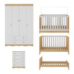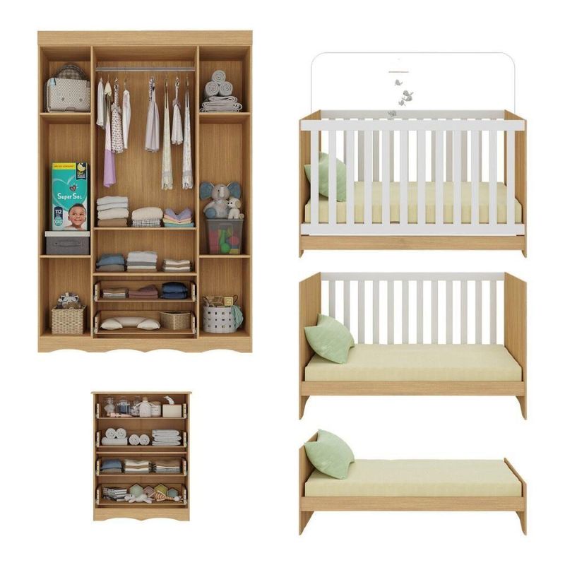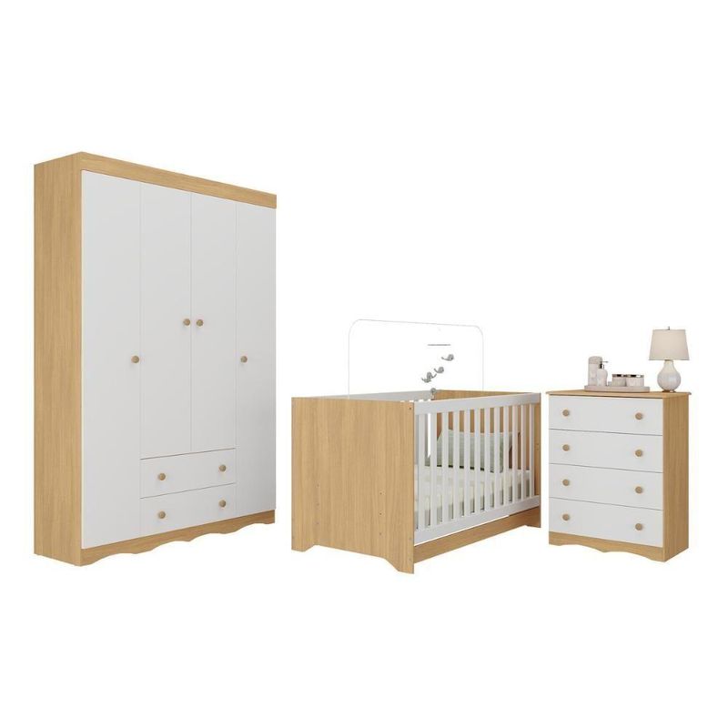 Quarto De Bebê Completo Com Berço Americano 3 Em 1 Realeza Multimóveis MP4587 Madeirado/brancoO quarto do seu bebê é o cenário dos sonhos que estão prestes a começar. Com o Quarto de Bebê Completo com Berço Americano 3 em 1 p/Colchão 130x70cm Multimóveis MP4587, você cria um ambiente repleto de doçura, praticidade e amor — perfeito para acompanhar cada nova descoberta do seu pequeno.Diferenciais:- 3 anos de garantia contra defeitos de fabricação e material.- Conjunto produzido em madeira de reflorestamento (MDP 12/15mm) com acabamento acetinado (cerca de 20% de brilho): sustentabilidade e durabilidade.- Berço 3 em 1 que se transforma em sofá e minicama, acompanhando o crescimento do bebê.- Lastro em madeira com 3 regulagens de altura e suporte para mosquiteiro para noites mais tranquilas e protegidas.- Berço certificado pelo INMETRO (Selo nº 0000085/2018).- Padrão americano (tamanho do colchão indicado: 130x70cm). Colchão não incluso.- Grade Soft (PVC): ecologicamente correta, com matéria-prima livre de metais pesados, atóxica e com proteção antiamarelamento.- Guarda-roupa com 4 portas e 2 gavetas: amplo espaço para organizar roupinhas e acessórios.- Cômoda com 4 gavetas.- Corrediças telescópicas: abertura total e silenciosa das gavetas.- Cabideiro em alumínio: permite acomodar roupas longas e curtas para que não amassem.- Puxadores em ABS delicados e práticos.- Rodapés usinados em MDF: visual elegante para o guarda-roupa e a cômoda.- Sistema antitombamento no guarda-roupa e cômoda: proporciona segurança para o bebê e tranquilidade aos pais.Conteúdo da Embalagem:1 (um) Berço1 (um) Guarda-roupa1 (uma) CômodaManual de MontagemKit FerragemDimensões do Produto Montado:Berço - Altura: 80,5cm | Largura: 133cm | Profundidade: 77,5cmGuarda-roupa - Altura: 184cm | Largura: 122cm | Profundidade: 41cmCômoda - Altura: 83cm | Largura: 65cm | Profundidade: 42cm*Você pode consultar as medidas detalhadas na imagem técnica do produto.Observações Importantes:*As cores dos produtos podem sofrer variações de tonalidade de acordo com as configurações do seu dispositivo.*Aqui na Loja Multimóveis, você pode concluir sua compra facilmente com toda segurança. A entrega é garantida e você está em 1° lugar.*Imagens meramente ilustrativas (decoração não inclusa).*Os produtos serão entregues desmontados e não disponibilizamos o serviço de montagem. Acabamento: Finish Foil/Pintura UV | Tonalidade: Branco | Material: MDP | Referência do Modelo: MP4587 | Coleção: Realeza | Sistema de Montagem: O produto acompanha manual de montagem juntamente com kit ferragem. O produto será entregue desmontado e não disponibilizamos o serviço de montagem. | Instruções de Cuidado: Limpar com pano seco para retirar o pó. Não utilizar produtos químicos ou abrasivos. Não aplicar lustra móveis. | Produto Composto por: 1 berço, 1 guarda-roupa, 1 cômoda, manual de montagem e kit ferragem. | Altura Montado: 184 | Largura Montado: 122 | Profundidade Montado: 41 | Tamanho (L x A x P): 122 x 184 x 41 | Peso do Produto: 116 | Corrediça: Telescópica | Inclui Berço: Sim | Acompanha Colchão: Não | Inclui Guarda-Roupa: Sim | Inclui Gaveteiro: Sim | Material do Puxador: ABS | Quantidade de Portas: 4 | Quantidade de Gavetas: 6 | Quantidade de Puxadores: 16 | RBN: 17352335011 | Quantidade de Pés: 0 | Quantidade de Peças: 3 | Material dos Pés: N/A | Produto: Conjunto de Quarto | Portátil: Não | Registro INMETRO: 0000085/2018 | Fabricante: Multimóveis | Regulamentado pelo INMETRO: Sim | Garantia do Fabricante: 3 | Requer Montagem: Sim | Tempo de Garantia: 3 meses | Descrição do Tamanho: (L x A x P): 122 x 184 x 41 cm | Tipo de cama: Berço | Marca: Multimóveis | Tamanho da cama: Berço | Quantidade de criados mudos: 0 | Tipo de madeira: N/A | Comprimento da cama: 77,5 cm | Altura da cama: 80,5 cm | É Kit de fábrica: Sim | Estilo: Moderno | Largura da cama: 133 cm | Idade recomendada: 0-24 meses | Idade: Bebê | Quantidade de caixas de embalagem: 06 | Destaque 1: Produzido em MDP com acabamento acetinado: durabilidade e resistência. | Destaque 2: Berço 3 em 1: transforma-se em sofá e minicama, acompanhando as fases da criança. | Destaque 3: Guarda-roupa com 4 portas, 2 gavetas e cabideiro de alumínio. | Destaque 4: Cômoda com 4 gavetas: amplo espaço interno. | Destaque 5: Corrediças telescópicas: abertura total e silenciosa das gavetas. | Baterias são necessárias?: Não | Certificação de teste externa: 0000085/2018 | Is Fragile: Não | Dimensões do item P x L x A: length#value=41;length#unit=centimeters;width#value=122;width#unit=centimeters;height#value=184;height#unit=centimeters | Quantidade de itens: 1 | Peso do item: unit=kilograms;value=116 | Número da peça: MP4587.697 | Inclui manual de montagem: Sim | Tipo de Garantia: Garantia do Fabricante | Montagem: Necessita Montagem | País de Origem: Brasil | Palavras-chave: berco com colchao, berco pequeno bercos moveis, berco que vira cama, berco mini cama, berco, quarto completo de bebe, berco e guarda roupa, kit quarto bebe, quarto de bebe completo, quarto de bebe, quarto bebe, jogo de quarto bebe, quarto completo bebe, kit quarto bebe moveis, quarto infantil bebe, kit quarto de bebe, berço e guarda roupa | Inclui cômoda trocador: Não | Cor: Madeirado/Branco