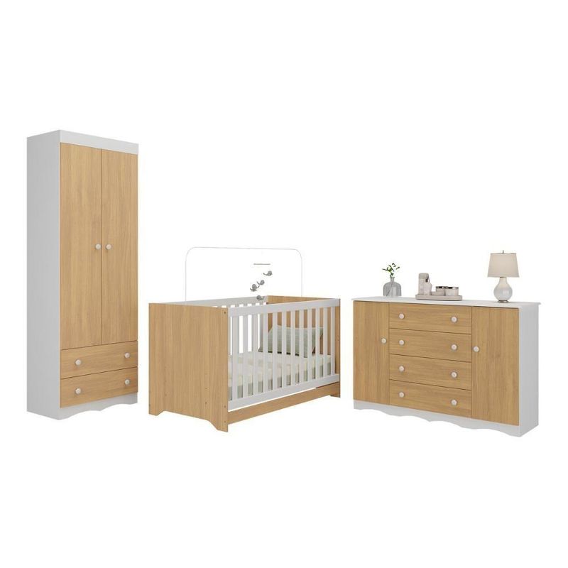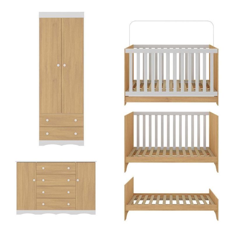 Quarto De Bebê Completo Com Berço Americano 3 Em 1 Realeza Multimóveis MP4595 Branco/madeiradoO Quarto de Bebê Completo com Berço Americano 3 em 1 p/Colchão 130x70cm Multimóveis MP4595 une design moderno, praticidade e um toque de afeto para tornar o cantinho do seu bebê simplesmente encantador. Cada móvel reflete cuidado e proteção, criando o espaço perfeito para o amor crescer todos os dias.Diferenciais:- 3 anos de garantia contra defeitos de fabricação e material.- Conjunto produzido em madeira de reflorestamento (MDP 12/15mm) com acabamento acetinado (cerca de 20% de brilho): sustentabilidade e durabilidade.- Berço 3 em 1 que se transforma em sofá e minicama, acompanhando o crescimento do bebê.- Lastro em madeira com 3 regulagens de altura e suporte para mosquiteiro para noites mais tranquilas e protegidas.- Berço certificado pelo INMETRO (Selo nº 0000085/2018).- Padrão americano (tamanho do colchão indicado: 130x70cm). Colchão não incluso.- Grade Soft (PVC): ecologicamente correta, com matéria-prima livre de metais pesados, atóxica e com proteção antiamarelamento.- Guarda-roupa com 2 portas e 2 gavetas: amplo espaço para organizar roupinhas e acessórios.- Cômoda com 2 portas e 4 gavetas.- Corrediças telescópicas: abertura total e silenciosa das gavetas.- Cabideiro em alumínio: permite acomodar roupas longas e curtas para que não amassem.- Puxadores em ABS delicados e práticos.- Rodapés usinados em MDF: visual elegante para o guarda-roupa e a cômoda.- Sistema antitombamento no guarda-roupa e cômoda: proporciona segurança para o bebê e tranquilidade aos pais.Conteúdo da Embalagem:1 (um) Berço1 (um) Guarda-roupa1 (uma) CômodaManual de MontagemKit FerragemDimensões do Produto Montado:Berço - Altura: 80,5cm | Largura: 133cm | Profundidade: 77,5cmGuarda-roupa - Altura: 184cm | Largura: 62cm | Profundidade: 41cmCômoda - Altura: 83cm | Largura: 125cm | Profundidade: 42cm*Você pode consultar as medidas detalhadas na imagem técnica do produto.Observações Importantes:*As cores dos produtos podem sofrer variações de tonalidade de acordo com as configurações do seu dispositivo.*Aqui na Loja Multimóveis, você pode concluir sua compra facilmente com toda segurança. A entrega é garantida e você está em 1° lugar.*Imagens meramente ilustrativas (decoração não inclusa).*Os produtos serão entregues desmontados e não disponibilizamos o serviço de montagem. Acabamento: Finish Foil/Pintura UV | Tonalidade: Branco | Material: MDP | Referência do Modelo: MP4595 | Coleção: Realeza | Sistema de Montagem: O produto acompanha manual de montagem juntamente com kit ferragem. O produto será entregue desmontado e não disponibilizamos o serviço de montagem. | Instruções de Cuidado: Limpar com pano seco para retirar o pó. Não utilizar produtos químicos ou abrasivos. Não aplicar lustra móveis. | Produto Composto por: 1 berço, 1 guarda-roupa, 1 cômoda, manual de montagem e kit ferragem. | Altura Montado: 184 | Largura Montado: 62 | Profundidade Montado: 41 | Tamanho (L x A x P): 62 x 184 x 41 | Peso do Produto: 102 | Corrediça: Telescópica | Inclui Berço: Sim | Acompanha Colchão: Não | Inclui Guarda-Roupa: Sim | Inclui Gaveteiro: Sim | Material do Puxador: ABS | Quantidade de Portas: 4 | Quantidade de Gavetas: 6 | Quantidade de Puxadores: 16 | RBN: 17352335011 | Quantidade de Pés: 0 | Quantidade de Peças: 3 | Material dos Pés: N/A | Produto: Conjunto de Quarto | Portátil: Não | Registro INMETRO: 0000085/2018 | Fabricante: Multimóveis | Regulamentado pelo INMETRO: Sim | Garantia do Fabricante: 3 | Requer Montagem: Sim | Tempo de Garantia: 3 meses | Descrição do Tamanho: (L x A x P): 62 x 184 x 41 cm | Tipo de cama: Berço | Marca: Multimóveis | Tamanho da cama: Berço | Quantidade de criados mudos: 0 | Tipo de madeira: N/A | Comprimento da cama: 77,5 cm | Altura da cama: 80,5 cm | É Kit de fábrica: Sim | Estilo: Moderno | Largura da cama: 133 cm | Idade recomendada: 0-24 meses | Idade: Bebê | Quantidade de caixas de embalagem: 05 | Destaque 1: Produzido em MDP com acabamento acetinado: durabilidade e resistência. | Destaque 2: Berço 3 em 1: transforma-se em sofá e minicama, acompanhando as fases da criança. | Destaque 3: Guarda-roupa com 2 portas, 2 gavetas e cabideiro de alumínio. | Destaque 4: Cômoda com 2 portas e 4 gavetas: amplo espaço interno. | Destaque 5: Corrediças telescópicas: abertura total e silenciosa das gavetas. | Baterias são necessárias?: Não | Certificação de teste externa: 0000085/2018 | Is Fragile: Não | Dimensões do item P x L x A: length#value=41;length#unit=centimeters;width#value=62;width#unit=centimeters;height#value=184;height#unit=centimeters | Quantidade de itens: 1 | Peso do item: unit=kilograms;value=102 | Número da peça: MP4595.697 | Inclui manual de montagem: Sim | Tipo de Garantia: Garantia do Fabricante | Montagem: Necessita Montagem | País de Origem: Brasil | Palavras-chave: berco com colchao, berco pequeno bercos moveis, berco que vira cama, berco mini cama, berco, quarto completo de bebe, berco e guarda roupa, kit quarto bebe, quarto de bebe completo, quarto de bebe, quarto bebe, jogo de quarto bebe, quarto completo bebe, kit quarto bebe moveis, quarto infantil bebe, kit quarto de bebe, berço e guarda roupa | Inclui cômoda trocador: Não | Cor: Branco/Madeirado