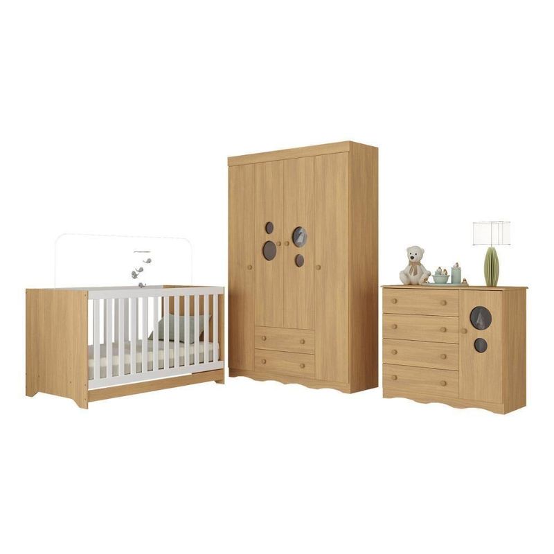 Quarto De Bebê Completo Com Berço Americano 3 Em 1 Sonho Multimóveis MP4615 MadeiradoO primeiro cantinho do bebê merece ser cheio de amor e conforto. O Quarto de Bebê Completo com Berço Americano 3 em 1 p/Colchão 130x70cm Multimóveis MP4615 traz tudo o que você precisa para montar um espaço acolhedor, seguro e cheio de ternura — perfeito para receber seu pequeno com tranquilidade e praticidade.Diferenciais:- 3 anos de garantia contra defeitos de fabricação e material.- Conjunto produzido em madeira de reflorestamento (MDP 12/15mm) com acabamento acetinado (cerca de 20% de brilho): sustentabilidade e durabilidade.- Berço 3 em 1 que se transforma em sofá e minicama, acompanhando o crescimento do bebê.- Lastro em madeira com 3 regulagens de altura e suporte para mosquiteiro para noites mais tranquilas e protegidas.- Grade Soft (PVC): ecologicamente correta, com matéria-prima livre de metais pesados, atóxica e com proteção antiamarelamento.- Berço certificado pelo INMETRO (Selo nº 0000085/2018).- Padrão americano (tamanho do colchão indicado: 130x70cm). Colchão não incluso.- Guarda-roupa com 4 portas e 2 gavetas: amplo espaço para organizar roupinhas e acessórios.- Cômoda com 1 porta e 4 gavetas.- Portas e gavetas produzidas em MDF.- Detalhes de vidro incolor temperado 3mm nas portas: toque charmoso que permite visualizar o interior dos móveis.- Corrediças telescópicas: abertura total e silenciosa das gavetas.- Cabideiro em alumínio: permite acomodar roupas longas e curtas para que não amassem.- Puxadores em ABS delicados e práticos.- Rodapés usinados em MDF: visual elegante para o guarda-roupa e a cômoda.- Sistema antitombamento no guarda-roupa e cômoda: proporciona segurança para o bebê e tranquilidade aos pais.Conteúdo da Embalagem:1 (um) Berço1 (um) Guarda-roupa1 (uma) CômodaManual de MontagemKit FerragemDimensões do Produto Montado:Berço - Altura: 80,5cm | Largura: 133cm | Profundidade: 77,5cmGuarda-roupa - Altura: 184cm | Largura: 122cm | Profundidade: 41cmCômoda - Altura: 83cm | Largura: 95cm | Profundidade: 42cm*Você pode consultar as medidas detalhadas na imagem técnica do produto.Observações Importantes:*As cores dos produtos podem sofrer variações de tonalidade de acordo com as configurações do seu dispositivo.*Aqui na Loja Multimóveis, você pode concluir sua compra facilmente com toda segurança. A entrega é garantida e você está em 1° lugar.*Imagens meramente ilustrativas (decoração não inclusa).*Os produtos serão entregues desmontados e não disponibilizamos o serviço de montagem. Acabamento: Finish Foil/Pintura UV | Tonalidade: Branco | Material: MDP/MDF | Referência do Modelo: MP4615 | Coleção: Sonho | Sistema de Montagem: O produto acompanha manual de montagem juntamente com kit ferragem. O produto será entregue desmontado e não disponibilizamos o serviço de montagem. | Instruções de Cuidado: Limpar com pano seco para retirar o pó. Não utilizar produtos químicos ou abrasivos. Não aplicar lustra móveis. | Produto Composto por: 1 berço, 1 guarda-roupa, 1 cômoda, manual de montagem e kit ferragem. | Altura Montado: 184 | Largura Montado: 122 | Profundidade Montado: 41 | Tamanho (L x A x P): 122 x 184 x 41 | Peso do Produto: 125 | Corrediça: Telescópica | Inclui Berço: Sim | Acompanha Colchão: Não | Inclui Guarda-Roupa: Sim | Inclui Gaveteiro: Sim | Material do Puxador: ABS | Quantidade de Portas: 5 | Quantidade de Gavetas: 6 | Quantidade de Puxadores: 17 | RBN: 17352335011 | Quantidade de Pés: 0 | Quantidade de Peças: 3 | Material dos Pés: N/A | Produto: Conjunto de Quarto | Portátil: Não | Registro INMETRO: 0000085/2018 | Fabricante: Multimóveis | Regulamentado pelo INMETRO: Sim | Garantia do Fabricante: 3 | Requer Montagem: Sim | Altura do Produto com Embalagem: 54 | Largura do Produto com Embalagem: 82 | Comprimento do Produto com Embalagem: 188 | Peso do Produto com Embalagem: 125 | Nome do Produto no Fornecedor: | Estado de Origem: RS | Produto precisa de Montagem?: Sim, sugerimos a contratação do nosso serviço de montagem (para os CEPs em que o serviço está disponível) ou de algum profissional experiente de sua preferência | Tempo de Garantia: 3 meses | Descrição do Tamanho: (L x A x P): 122 x 184 x 41 cm | Tipo de cama: Berço | Marca: Multimóveis | Tamanho da cama: Berço | Quantidade de criados mudos: 0 | Tipo de madeira: N/A | Comprimento da cama: 77,5 cm | Altura da cama: 80,5 cm | É Kit de fábrica: Sim | Estilo: Moderno | Largura da cama: 133 cm | Idade recomendada: 0-24 meses | Idade: Bebê | Quantidade de caixas de embalagem: 06 | Destaque 1: Produzido em MDP/MDF com acabamento acetinado: durabilidade e resistência. | Destaque 2: Berço 3 em 1: transforma-se em sofá e minicama, acompanhando as fases da criança. | Destaque 3: Guarda-roupa com 4 portas, 2 gavetas e cabideiro de alumínio. | Destaque 4: Cômoda com 1 porta e 4 gavetas: amplo espaço interno. | Destaque 5: Corrediças telescópicas: abertura total e silenciosa das gavetas. | Baterias são necessárias?: Não | Certificação de teste externa: 0000085/2018 | Is Fragile: Não | Dimensões do item P x L x A: length#value=41;length#unit=centimeters;width#value=122;width#unit=centimeters;height#value=184;height#unit=centimeters | Quantidade de itens: 1 | Peso do item: unit=kilograms;value=125 | Número da peça: MP4615.499 | Inclui manual de montagem: Sim | Tipo de Garantia: Garantia do Fabricante | Montagem: Necessita Montagem | País de Origem: Brasil | Palavras-chave: berco com colchao, berco pequeno bercos moveis, berco que vira cama, berco mini cama, berco, quarto completo de bebe, berco e guarda roupa, kit quarto bebe, quarto de bebe completo, quarto de bebe, quarto bebe, jogo de quarto bebe, quarto completo bebe, kit quarto bebe moveis, quarto infantil bebe, kit quarto de bebe, berço e guarda roupa | Inclui cômoda trocador: Não | Cor: Madeirado
