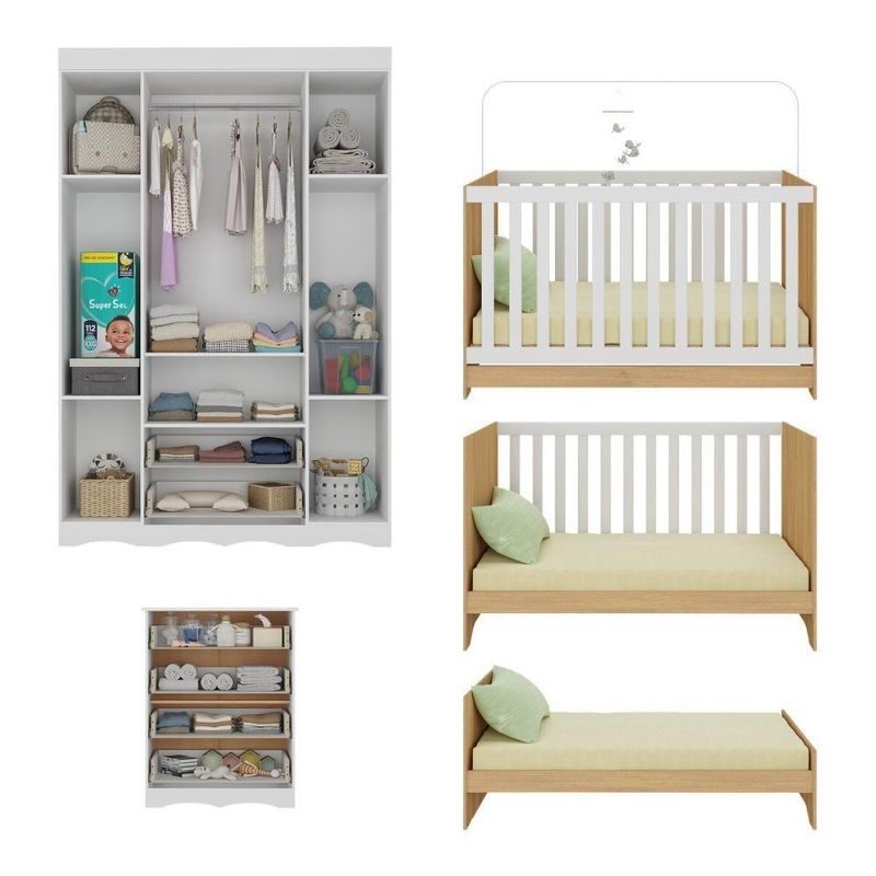 Quarto De Bebê Completo Com Berço Americano 3 Em 1 Sonho Multimóveis MP4619 Branco/madeiradoTudo o que o bebê precisa está aqui! O Quarto de Bebê Completo com Berço Americano 3 em 1 p/Colchão 130x70cm Multimóveis MP4619 garante funcionalidade, beleza e qualidade em um único conjunto. A solução ideal para quem quer montar um ambiente completo sem complicações.Diferenciais:- 3 anos de garantia contra defeitos de fabricação e material.- Conjunto produzido em madeira de reflorestamento (MDP 12/15mm) com acabamento acetinado (cerca de 20% de brilho): sustentabilidade e durabilidade.- Berço 3 em 1 que se transforma em sofá e minicama, acompanhando o crescimento do bebê.- Lastro em madeira com 3 regulagens de altura e suporte para mosquiteiro para noites mais tranquilas e protegidas.- Berço certificado pelo INMETRO (Selo nº 0000085/2018).- Padrão americano (tamanho do colchão indicado: 130x70cm). Colchão não incluso.- Grade Soft (PVC): ecologicamente correta, com matéria-prima livre de metais pesados, atóxica e com proteção antiamarelamento.- Guarda-roupa com 4 portas e 2 gavetas produzidas em MDF: amplo espaço para organizar roupinhas e acessórios.- Cômoda com 4 gavetas.- Detalhes de vidro incolor temperado 3mm nas portas: toque charmoso que permite visualizar o interior dos móveis.- Corrediças telescópicas: abertura total e silenciosa das gavetas.- Cabideiro em alumínio: permite acomodar roupas longas e curtas para que não amassem.- Puxadores em ABS delicados e práticos.- Rodapés usinados em MDF: visual elegante para o guarda-roupa e a cômoda.- Sistema antitombamento no guarda-roupa e cômoda: proporciona segurança para o bebê e tranquilidade aos pais.Conteúdo da Embalagem:1 (um) Berço1 (um) Guarda-roupa1 (uma) CômodaManual de MontagemKit FerragemDimensões do Produto Montado:Berço - Altura: 80,5cm | Largura: 133cm | Profundidade: 77,5cmGuarda-roupa - Altura: 184cm | Largura: 122cm | Profundidade: 41cmCômoda - Altura: 83cm | Largura: 65cm | Profundidade: 42cm*Você pode consultar as medidas detalhadas na imagem técnica do produto.Observações Importantes:*As cores dos produtos podem sofrer variações de tonalidade de acordo com as configurações do seu dispositivo.*Aqui na Loja Multimóveis, você pode concluir sua compra facilmente com toda segurança. A entrega é garantida e você está em 1° lugar.*Imagens meramente ilustrativas (decoração não inclusa).*Os produtos serão entregues desmontados e não disponibilizamos o serviço de montagem. Acabamento: Finish Foil/Pintura UV | Tonalidade: Branco | Material: MDP/MDF | Referência do Modelo: MP4619 | Coleção: Sonho | Sistema de Montagem: O produto acompanha manual de montagem juntamente com kit ferragem. O produto será entregue desmontado e não disponibilizamos o serviço de montagem. | Instruções de Cuidado: Limpar com pano seco para retirar o pó. Não utilizar produtos químicos ou abrasivos. Não aplicar lustra móveis. | Produto Composto por: 1 berço, 1 guarda-roupa, 1 cômoda, manual de montagem e kit ferragem. | Altura Montado: 184 | Largura Montado: 122 | Profundidade Montado: 41 | Tamanho (L x A x P): 122 x 184 x 41 | Peso do Produto: 116 | Corrediça: Telescópica | Inclui Berço: Sim | Acompanha Colchão: Não | Inclui Guarda-Roupa: Sim | Inclui Gaveteiro: Sim | Material do Puxador: ABS | Quantidade de Portas: 4 | Quantidade de Gavetas: 6 | Quantidade de Puxadores: 16 | RBN: 17352335011 | Quantidade de Pés: 0 | Quantidade de Peças: 3 | Material dos Pés: N/A | Produto: Conjunto de Quarto | Portátil: Não | Registro INMETRO: 0000085/2018 | Fabricante: Multimóveis | Regulamentado pelo INMETRO: Sim | Garantia do Fabricante: 3 | Requer Montagem: Sim | Altura do Produto com Embalagem: 54 | Largura do Produto com Embalagem: 82 | Comprimento do Produto com Embalagem: 188 | Peso do Produto com Embalagem: 116 | Nome do Produto no Fornecedor: | Estado de Origem: RS | Produto precisa de Montagem?: Sim, sugerimos a contratação do nosso serviço de montagem (para os CEPs em que o serviço está disponível) ou de algum profissional experiente de sua preferência | Tempo de Garantia: 3 meses | Descrição do Tamanho: (L x A x P): 122 x 184 x 41 cm | Tipo de cama: Berço | Marca: Multimóveis | Tamanho da cama: Berço | Quantidade de criados mudos: 0 | Tipo de madeira: N/A | Comprimento da cama: 77,5 cm | Altura da cama: 80,5 cm | É Kit de fábrica: Sim | Estilo: Moderno | Largura da cama: 133 cm | Idade recomendada: 0-24 meses | Idade: Bebê | Quantidade de caixas de embalagem: 06 | Destaque 1: Produzido em MDP/MDF com acabamento acetinado: durabilidade e resistência. | Destaque 2: Berço 3 em 1: transforma-se em sofá e minicama, acompanhando as fases da criança. | Destaque 3: Guarda-roupa com 4 portas, 2 gavetas e cabideiro de alumínio. | Destaque 4: Cômoda com 4 gavetas: amplo espaço interno. | Destaque 5: Corrediças telescópicas: abertura total e silenciosa das gavetas. | Baterias são necessárias?: Não | Certificação de teste externa: 0000085/2018 | Is Fragile: Não | Dimensões do item P x L x A: length#value=41;length#unit=centimeters;width#value=122;width#unit=centimeters;height#value=184;height#unit=centimeters | Quantidade de itens: 1 | Peso do item: unit=kilograms;value=116 | Número da peça: MP4619.499 | Inclui manual de montagem: Sim | Tipo de Garantia: Garantia do Fabricante | Montagem: Necessita Montagem | País de Origem: Brasil | Palavras-chave: berco com colchao, berco pequeno bercos moveis, berco que vira cama, berco mini cama, berco, quarto completo de bebe, berco e guarda roupa, kit quarto bebe, quarto de bebe completo, quarto de bebe, quarto bebe, jogo de quarto bebe, quarto completo bebe, kit quarto bebe moveis, quarto infantil bebe, kit quarto de bebe, berço e guarda roupa | Inclui cômoda trocador: Não | Cor: Branco/Madeirado