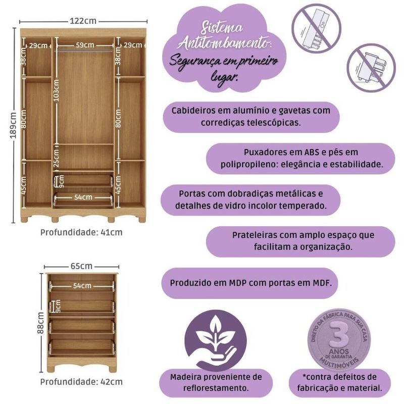 Quarto De Bebê Completo Com Berço Americano 3 Em 1 Suspiro Multimóveis MP4620 Madeirado/off WhiteTudo o que o bebê precisa está aqui! O Quarto de Bebê Completo com Berço Americano 3 em 1 p/Colchão 130x70cm Multimóveis MP4620 garante funcionalidade, beleza e qualidade em um único conjunto. A solução ideal para quem quer montar um ambiente completo sem complicações.Diferenciais:- 3 anos de garantia contra defeitos de fabricação e material.- Conjunto produzido em madeira de reflorestamento (MDP 12/15mm) com acabamento acetinado (cerca de 20% de brilho): sustentabilidade e durabilidade.- Berço 3 em 1 que se transforma em sofá e minicama, acompanhando o crescimento do bebê.- Lastro em madeira com 3 regulagens de altura e suporte para mosquiteiro para noites mais tranquilas e protegidas.- Berço certificado pelo INMETRO (Selo nº 0000085/2018).- Padrão americano (tamanho do colchão indicado: 130x70cm). Colchão não incluso.- Grade Soft (PVC): ecologicamente correta, com matéria-prima livre de metais pesados, atóxica e com proteção antiamarelamento.- Guarda-roupa com 4 portas e 2 gavetas produzidas em MDF: amplo espaço para organizar roupinhas e acessórios.- Cômoda com 4 gavetas.- Detalhes de vidro incolor temperado 3mm nas portas: toque charmoso que permite visualizar o interior dos móveis.- Corrediças telescópicas: abertura total e silenciosa das gavetas.- Cabideiro em alumínio: permite acomodar roupas longas e curtas para que não amassem.- Puxadores em ABS delicados e práticos.- Pés em polipropileno e rodapés usinados em MDF: visual elegante e estabilidade para o guarda-roupa e a cômoda.- Sistema antitombamento no guarda-roupa e cômoda: proporciona segurança para o bebê e tranquilidade aos pais.Conteúdo da Embalagem:1 (um) Berço1 (um) Guarda-roupa1 (uma) CômodaManual de MontagemKit FerragemDimensões do Produto Montado:Berço - Altura: 80,5cm | Largura: 133cm | Profundidade: 77,5cmGuarda-roupa - Altura: 189cm | Largura: 122cm | Profundidade: 41cmCômoda - Altura: 88cm | Largura: 65cm | Profundidade: 42cm*Você pode consultar as medidas detalhadas na imagem técnica do produto.Observações Importantes:*As cores dos produtos podem sofrer variações de tonalidade de acordo com as configurações do seu dispositivo.*Aqui na Loja Multimóveis, você pode concluir sua compra facilmente com toda segurança. A entrega é garantida e você está em 1° lugar.*Imagens meramente ilustrativas (decoração não inclusa).*Os produtos serão entregues desmontados e não disponibilizamos o serviço de montagem. Acabamento: Finish Foil/Pintura UV | Tonalidade: Branco | Material: MDP/MDF | Referência do Modelo: MP4620 | Coleção: Suspiro | Sistema de Montagem: O produto acompanha manual de montagem juntamente com kit ferragem. O produto será entregue desmontado e não disponibilizamos o serviço de montagem. | Instruções de Cuidado: Limpar com pano seco para retirar o pó. Não utilizar produtos químicos ou abrasivos. Não aplicar lustra móveis. | Produto Composto por: 1 berço, 1 guarda-roupa, 1 cômoda, manual de montagem e kit ferragem. | Altura Montado: 189 | Largura Montado: 122 | Profundidade Montado: 41 | Tamanho (L x A x P): 122 x 189 x 41 | Peso do Produto: 116 | Corrediça: Telescópica | Inclui Berço: Sim | Acompanha Colchão: Não | Inclui Guarda-Roupa: Sim | Inclui Gaveteiro: Sim | Material do Puxador: ABS | Quantidade de Portas: 4 | Quantidade de Gavetas: 6 | Quantidade de Puxadores: 16 | RBN: 17352335011 | Quantidade de Pés: 12 | Quantidade de Peças: 3 | Material dos Pés: Polipropileno | Produto: Conjunto de Quarto | Portátil: Não | Registro INMETRO: 0000085/2018 | Fabricante: Multimóveis | Regulamentado pelo INMETRO: Sim | Garantia do Fabricante: 3 | Requer Montagem: Sim | Altura do Produto com Embalagem: 54 | Largura do Produto com Embalagem: 82 | Comprimento do Produto com Embalagem: 188 | Peso do Produto com Embalagem: 116 | Nome do Produto no Fornecedor: | Estado de Origem: RS | Produto precisa de Montagem?: Sim, sugerimos a contratação do nosso serviço de montagem (para os CEPs em que o serviço está disponível) ou de algum profissional experiente de sua preferência | Tempo de Garantia: 3 meses | Descrição do Tamanho: (L x A x P): 122 x 189 x 41 cm | Tipo de cama: Berço | Marca: Multimóveis | Tamanho da cama: Berço | Quantidade de criados mudos: 0 | Tipo de madeira: N/A | Comprimento da cama: 77,5 cm | Altura da cama: 80,5 cm | É Kit de fábrica: Sim | Estilo: Moderno | Largura da cama: 133 cm | Idade recomendada: 0-24 meses | Idade: Bebê | Quantidade de caixas de embalagem: 06 | Destaque 1: Produzido em MDP/MDF com acabamento acetinado: durabilidade e resistência. | Destaque 2: Berço 3 em 1: transforma-se em sofá e minicama, acompanhando as fases da criança. | Destaque 3: Guarda-roupa com 4 portas, 2 gavetas e cabideiro de alumínio. | Destaque 4: Cômoda com 4 gavetas: amplo espaço interno. | Destaque 5: Corrediças telescópicas: abertura total e silenciosa das gavetas. | Baterias são necessárias?: Não | Certificação de teste externa: 0000085/2018 | Is Fragile: Não | Dimensões do item P x L x A: length#value=41;length#unit=centimeters;width#value=122;width#unit=centimeters;height#value=189;height#unit=centimeters | Quantidade de itens: 1 | Peso do item: unit=kilograms;value=116 | Número da peça: MP4620.499 | Inclui manual de montagem: Sim | Tipo de Garantia: Garantia do Fabricante | Montagem: Necessita Montagem | País de Origem: Brasil | Palavras-chave: berco com colchao, berco pequeno bercos moveis, berco que vira cama, berco mini cama, berco, quarto completo de bebe, berco e guarda roupa, kit quarto bebe, quarto de bebe completo, quarto de bebe, quarto bebe, jogo de quarto bebe, quarto completo bebe, kit quarto bebe moveis, quarto infantil bebe, kit quarto de bebe, berço e guarda roupa | Inclui cômoda trocador: Não | Cor: Madeirado/Off White