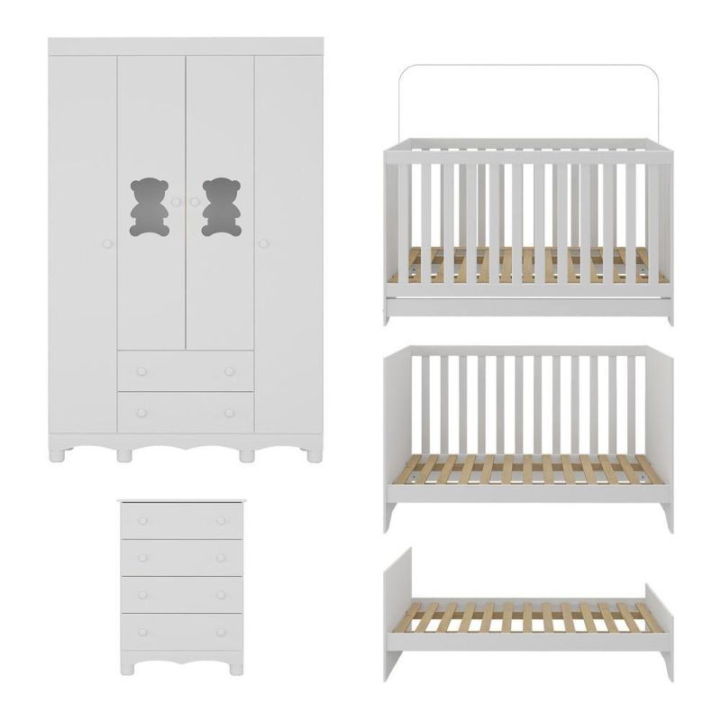 Quarto De Bebê Completo Com Berço Americano 3 Em 1 Ternura Multimóveis MP4651 BrancoMais segurança, beleza e praticidade em um só conjunto! O Quarto de Bebê Completo com Berço Americano 3 em 1 p/Colchão 130x70cm Multimóveis MP4651 é ideal para famílias que não abrem mão de um ambiente confiável e bem planejado para o bebê — unindo durabilidade e conforto em cada detalhe.Diferenciais:- 3 anos de garantia contra defeitos de fabricação e material.- Conjunto produzido em madeira de reflorestamento (MDP 12/15mm) com acabamento acetinado (cerca de 20% de brilho): sustentabilidade e durabilidade.- Berço 3 em 1 que se transforma em sofá e minicama, acompanhando o crescimento do bebê.- Lastro em madeira com 3 regulagens de altura e suporte para mosquiteiro para noites mais tranquilas e protegidas.- Berço certificado pelo INMETRO (Selo nº 0000085/2018).- Padrão americano (tamanho do colchão indicado: 130x70cm). Colchão não incluso.- Grade Soft (PVC): ecologicamente correta, com matéria-prima livre de metais pesados, atóxica e com proteção antiamarelamento.- Guarda-roupa com 4 portas e 2 gavetas produzidas em MDF: amplo espaço para organizar roupinhas e acessórios.- Cômoda com 4 gavetas.- Detalhes de vidro incolor temperado 3mm nas portas: toque charmoso que permite visualizar o interior dos móveis.- Corrediças telescópicas: abertura total e silenciosa das gavetas.- Cabideiro em alumínio: permite acomodar roupas longas e curtas para que não amassem.- Puxadores em ABS delicados e práticos.- Pés em polipropileno e rodapés usinados em MDF: visual elegante e estabilidade para o guarda-roupa e a cômoda.- Sistema antitombamento no guarda-roupa e cômoda: proporciona segurança para o bebê e tranquilidade aos pais.Conteúdo da Embalagem:1 (um) Berço1 (um) Guarda-roupa1 (uma) CômodaManual de MontagemKit FerragemDimensões do Produto Montado:Berço - Altura: 80,5cm | Largura: 133cm | Profundidade: 77,5cmGuarda-roupa - Altura: 189cm | Largura: 122cm | Profundidade: 41cmCômoda - Altura: 88cm | Largura: 65cm | Profundidade: 42cm*Você pode consultar as medidas detalhadas na imagem técnica do produto.Observações Importantes:*As cores dos produtos podem sofrer variações de tonalidade de acordo com as configurações do seu dispositivo.*Aqui na Loja Multimóveis, você pode concluir sua compra facilmente com toda segurança. A entrega é garantida e você está em 1° lugar.*Imagens meramente ilustrativas (decoração não inclusa).*Os produtos serão entregues desmontados e não disponibilizamos o serviço de montagem. Acabamento: Finish Foil/Pintura UV | Tonalidade: Branco | Material: MDP | Referência do Modelo: MP4651 | Coleção: Ternura | Sistema de Montagem: O produto acompanha manual de montagem juntamente com kit ferragem. O produto será entregue desmontado e não disponibilizamos o serviço de montagem. | Instruções de Cuidado: Limpar com pano seco para retirar o pó. Não utilizar produtos químicos ou abrasivos. Não aplicar lustra móveis. | Produto Composto por: 1 berço, 1 guarda-roupa, 1 cômoda, manual de montagem e kit ferragem. | Altura Montado: 189 | Largura Montado: 122 | Profundidade Montado: 41 | Tamanho (L x A x P): 122 x 189 x 41 | Peso do Produto: 116 | Corrediça: Telescópica | Inclui Berço: Sim | Acompanha Colchão: Não | Inclui Guarda-Roupa: Sim | Inclui Gaveteiro: Sim | Material do Puxador: ABS | Quantidade de Portas: 4 | Quantidade de Gavetas: 6 | Quantidade de Puxadores: 16 | RBN: 17352335011 | Quantidade de Pés: 12 | Quantidade de Peças: 3 | Material dos Pés: Polipropileno | Produto: Conjunto de Quarto | Portátil: Não | Registro INMETRO: 0000085/2018 | Fabricante: Multimóveis | Regulamentado pelo INMETRO: Sim | Garantia do Fabricante: 3 | Requer Montagem: Sim | Altura do Produto com Embalagem: 54 | Largura do Produto com Embalagem: 82 | Comprimento do Produto com Embalagem: 188 | Peso do Produto com Embalagem: 116 | Nome do Produto no Fornecedor: | Estado de Origem: RS | Produto precisa de Montagem?: Sim, sugerimos a contratação do nosso serviço de montagem (para os CEPs em que o serviço está disponível) ou de algum profissional experiente de sua preferência | Tempo de Garantia: 3 meses | Descrição do Tamanho: (L x A x P): 122 x 189 x 41 cm | Tipo de cama: Berço | Marca: Multimóveis | Tamanho da cama: Berço | Quantidade de criados mudos: 0 | Tipo de madeira: N/A | Comprimento da cama: 77,5 cm | Altura da cama: 80,5 cm | É Kit de fábrica: Sim | Estilo: Moderno | Largura da cama: 133 cm | Idade recomendada: 0-24 meses | Idade: Bebê | Quantidade de caixas de embalagem: 06 | Destaque 1: Produzido em MDP/MDF com acabamento acetinado: durabilidade e resistência. | Destaque 2: Berço 3 em 1: transforma-se em sofá e minicama, acompanhando as fases da criança. | Destaque 3: Guarda-roupa com 4 portas, 2 gavetas e cabideiro de alumínio. | Destaque 4: Cômoda com 4 gavetas: amplo espaço interno. | Destaque 5: Corrediças telescópicas: abertura total e silenciosa das gavetas. | Baterias são necessárias?: Não | Certificação de teste externa: 0000085/2018 | Is Fragile: Não | Dimensões do item P x L x A: length#value=41;length#unit=centimeters;width#value=122;width#unit=centimeters;height#value=189;height#unit=centimeters | Quantidade de itens: 1 | Peso do item: unit=kilograms;value=116 | Número da peça: MP4651.697 | Inclui manual de montagem: Sim | Tipo de Garantia: Garantia do Fabricante | Montagem: Necessita Montagem | País de Origem: Brasil | Palavras-chave: berco com colchao, berco pequeno bercos moveis, berco que vira cama, berco mini cama, berco, quarto completo de bebe, berco e guarda roupa, kit quarto bebe, quarto de bebe completo, quarto de bebe, quarto bebe, jogo de quarto bebe, quarto completo bebe, kit quarto bebe moveis, quarto infantil bebe, kit quarto de bebe, berço e guarda roupa | Inclui cômoda trocador: Não | Cor: Branco