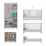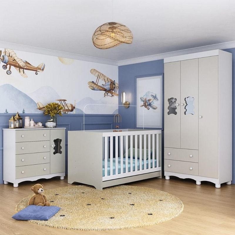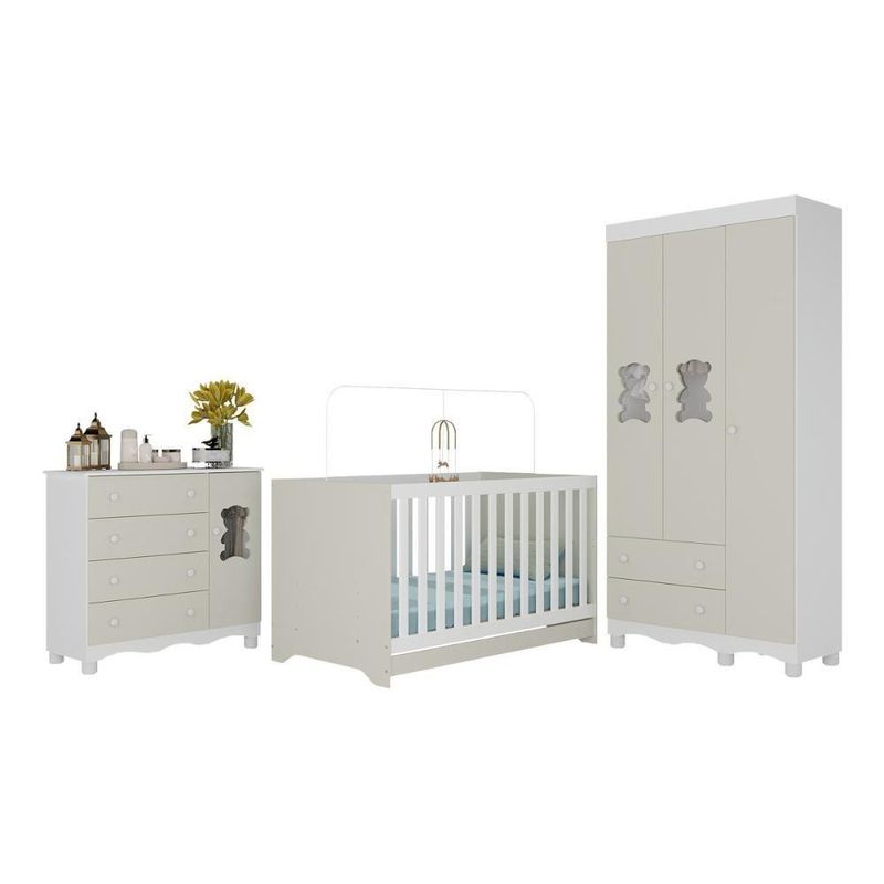 Quarto De Bebê Completo Com Berço Americano 3 Em 1 Ternura Multimóveis MP4655 Branco/off WhiteImagine um espaço onde o amor se transforma em aconchego. O Quarto de Bebê Completo com Berço Americano 3 em 1 p/Colchão 130x70cm Multimóveis MP4655 foi projetado para oferecer bem-estar e tranquilidade, criando o cenário perfeito para os primeiros anos de vida do bebê.Diferenciais:- 3 anos de garantia contra defeitos de fabricação e material.- Conjunto produzido em madeira de reflorestamento (MDP 12/15mm) com acabamento acetinado (cerca de 20% de brilho): sustentabilidade e durabilidade.- Berço 3 em 1 que se transforma em sofá e minicama, acompanhando o crescimento do bebê.- Lastro em madeira com 3 regulagens de altura e suporte para mosquiteiro para noites mais tranquilas e protegidas.- Berço certificado pelo INMETRO (Selo nº 0000085/2018).- Padrão americano (tamanho do colchão indicado: 130x70cm). Colchão não incluso. - Grade Soft (PVC): ecologicamente correta, com matéria-prima livre de metais pesados, atóxica e com proteção antiamarelamento.- Guarda-roupa com 3 portas e 2 gavetas: amplo espaço para organizar roupinhas e acessórios.- Cômoda com 1 porta e 4 gavetas.- Portas e gavetas produzidas em MDF.- Detalhes de vidro incolor temperado 3mm nas portas: toque charmoso que permite visualizar o interior dos móveis.- Corrediças telescópicas: abertura total e silenciosa das gavetas.- Cabideiro em alumínio: permite acomodar roupas longas e curtas para que não amassem.- Puxadores em ABS delicados e práticos.- Pés em polipropileno e rodapés usinados em MDF: visual elegante e estabilidade para o guarda-roupa e a cômoda.- Sistema antitombamento no guarda-roupa e cômoda: proporciona segurança para o bebê e tranquilidade aos pais.Conteúdo da Embalagem:1 (um) Berço1 (um) Guarda-roupa1 (uma) CômodaManual de MontagemKit FerragemDimensões do Produto Montado:Berço - Altura: 80,5cm | Largura: 133cm | Profundidade: 77,5cmGuarda-roupa - Altura: 189cm | Largura: 92cm | Profundidade: 41cmCômoda - Altura: 88cm | Largura: 95cm | Profundidade: 42cm*Você pode consultar as medidas detalhadas na imagem técnica do produto.Observações Importantes:*As cores dos produtos podem sofrer variações de tonalidade de acordo com as configurações do seu dispositivo.*Aqui na Loja Multimóveis, você pode concluir sua compra facilmente com toda segurança. A entrega é garantida e você está em 1° lugar.*Imagens meramente ilustrativas (decoração não inclusa).*Os produtos serão entregues desmontados e não disponibilizamos o serviço de montagem. Acabamento: Finish Foil/Pintura UV | Tonalidade: Branco | Material: MDP | Referência do Modelo: MP4655 | Coleção: Ternura | Sistema de Montagem: O produto acompanha manual de montagem juntamente com kit ferragem. O produto será entregue desmontado e não disponibilizamos o serviço de montagem. | Instruções de Cuidado: Limpar com pano seco para retirar o pó. Não utilizar produtos químicos ou abrasivos. Não aplicar lustra móveis. | Produto Composto por: 1 berço, 1 guarda-roupa, 1 cômoda, manual de montagem e kit ferragem. | Altura Montado: 189 | Largura Montado: 92 | Profundidade Montado: 41 | Tamanho (L x A x P): 92 x 189 x 41 | Peso do Produto: 107 | Corrediça: Telescópica | Inclui Berço: Sim | Acompanha Colchão: Não | Inclui Guarda-Roupa: Sim | Inclui Gaveteiro: Sim | Material do Puxador: ABS | Quantidade de Portas: 4 | Quantidade de Gavetas: 6 | Quantidade de Puxadores: 16 | RBN: 17352335011 | Quantidade de Pés: 11 | Quantidade de Peças: 3 | Material dos Pés: Polipropileno | Produto: Conjunto de Quarto | Portátil: Não | Registro INMETRO: 0000085/2018 | Fabricante: Multimóveis | Regulamentado pelo INMETRO: Sim | Garantia do Fabricante: 3 | Requer Montagem: Sim | Altura do Produto com Embalagem: 48 | Largura do Produto com Embalagem: 82 | Comprimento do Produto com Embalagem: 188 | Peso do Produto com Embalagem: 107 | Nome do Produto no Fornecedor: | Estado de Origem: RS | Produto precisa de Montagem?: Sim, sugerimos a contratação do nosso serviço de montagem (para os CEPs em que o serviço está disponível) ou de algum profissional experiente de sua preferência | Tempo de Garantia: 3 meses | Descrição do Tamanho: (L x A x P): 92 x 189 x 41 cm | Tipo de cama: Berço | Marca: Multimóveis | Tamanho da cama: Berço | Quantidade de criados mudos: 0 | Tipo de madeira: N/A | Comprimento da cama: 77,5 cm | Altura da cama: 80,5 cm | É Kit de fábrica: Sim | Estilo: Moderno | Largura da cama: 133 cm | Idade recomendada: 0-24 meses | Idade: Bebê | Quantidade de caixas de embalagem: 05 | Destaque 1: Produzido em MDP/MDF com acabamento acetinado: durabilidade e resistência. | Destaque 2: Berço 3 em 1: transforma-se em sofá e minicama, acompanhando as fases da criança. | Destaque 3: Guarda-roupa com 3 portas, 2 gavetas e cabideiro de alumínio. | Destaque 4: Cômoda com 1 porta e 4 gavetas: amplo espaço interno. | Destaque 5: Corrediças telescópicas: abertura total e silenciosa das gavetas. | Baterias são necessárias?: Não | Certificação de teste externa: 0000085/2018 | Is Fragile: Não | Dimensões do item P x L x A: length#value=41;length#unit=centimeters;width#value=92;width#unit=centimeters;height#value=189;height#unit=centimeters | Quantidade de itens: 1 | Peso do item: unit=kilograms;value=107 | Número da peça: MP4655.697 | Inclui manual de montagem: Sim | Tipo de Garantia: Garantia do Fabricante | Montagem: Necessita Montagem | País de Origem: Brasil | Palavras-chave: berco com colchao, berco pequeno bercos moveis, berco que vira cama, berco mini cama, berco, quarto completo de bebe, berco e guarda roupa, kit quarto bebe, quarto de bebe completo, quarto de bebe, quarto bebe, jogo de quarto bebe, quarto completo bebe, kit quarto bebe moveis, quarto infantil bebe, kit quarto de bebe, berço e guarda roupa | Inclui cômoda trocador: Não | Cor: Branco/Off White