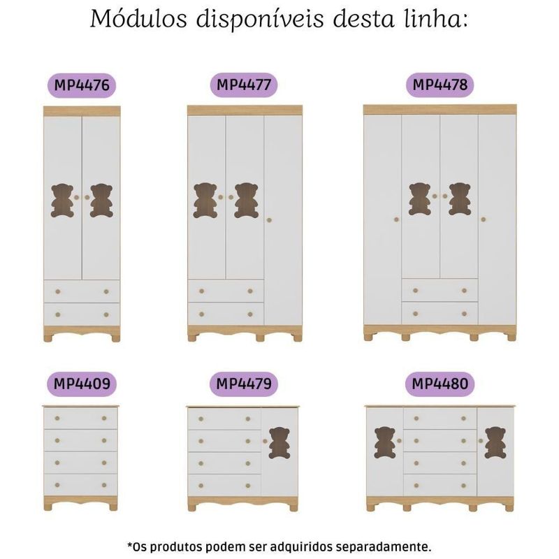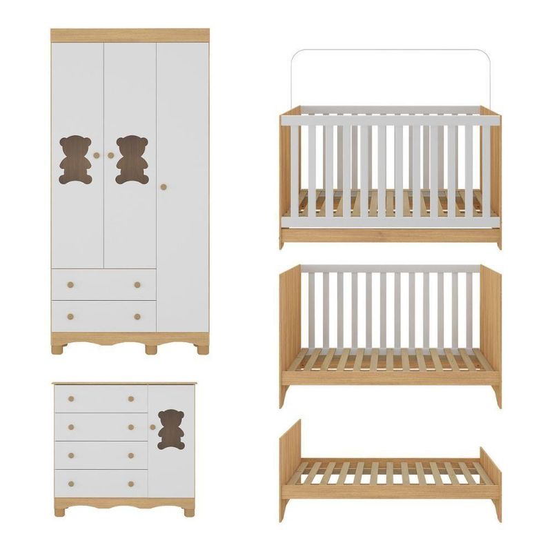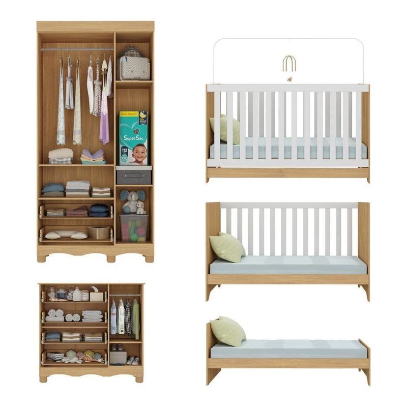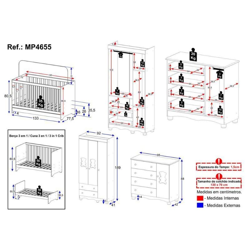 Quarto De Bebê Completo Com Berço Americano 3 Em 1 Ternura Multimóveis MP4655 Madeirado/brancoImagine um espaço onde o amor se transforma em aconchego. O Quarto de Bebê Completo com Berço Americano 3 em 1 p/Colchão 130x70cm Multimóveis MP4655 foi projetado para oferecer bem-estar e tranquilidade, criando o cenário perfeito para os primeiros anos de vida do bebê.Diferenciais:- 3 anos de garantia contra defeitos de fabricação e material.- Conjunto produzido em madeira de reflorestamento (MDP 12/15mm) com acabamento acetinado (cerca de 20% de brilho): sustentabilidade e durabilidade.- Berço 3 em 1 que se transforma em sofá e minicama, acompanhando o crescimento do bebê.- Lastro em madeira com 3 regulagens de altura e suporte para mosquiteiro para noites mais tranquilas e protegidas.- Berço certificado pelo INMETRO (Selo nº 0000085/2018).- Padrão americano (tamanho do colchão indicado: 130x70cm). Colchão não incluso. - Grade Soft (PVC): ecologicamente correta, com matéria-prima livre de metais pesados, atóxica e com proteção antiamarelamento.- Guarda-roupa com 3 portas e 2 gavetas: amplo espaço para organizar roupinhas e acessórios.- Cômoda com 1 porta e 4 gavetas.- Portas e gavetas produzidas em MDF.- Detalhes de vidro incolor temperado 3mm nas portas: toque charmoso que permite visualizar o interior dos móveis.- Corrediças telescópicas: abertura total e silenciosa das gavetas.- Cabideiro em alumínio: permite acomodar roupas longas e curtas para que não amassem.- Puxadores em ABS delicados e práticos.- Pés em polipropileno e rodapés usinados em MDF: visual elegante e estabilidade para o guarda-roupa e a cômoda.- Sistema antitombamento no guarda-roupa e cômoda: proporciona segurança para o bebê e tranquilidade aos pais.Conteúdo da Embalagem:1 (um) Berço1 (um) Guarda-roupa1 (uma) CômodaManual de MontagemKit FerragemDimensões do Produto Montado:Berço - Altura: 80,5cm | Largura: 133cm | Profundidade: 77,5cmGuarda-roupa - Altura: 189cm | Largura: 92cm | Profundidade: 41cmCômoda - Altura: 88cm | Largura: 95cm | Profundidade: 42cm*Você pode consultar as medidas detalhadas na imagem técnica do produto.Observações Importantes:*As cores dos produtos podem sofrer variações de tonalidade de acordo com as configurações do seu dispositivo.*Aqui na Loja Multimóveis, você pode concluir sua compra facilmente com toda segurança. A entrega é garantida e você está em 1° lugar.*Imagens meramente ilustrativas (decoração não inclusa).*Os produtos serão entregues desmontados e não disponibilizamos o serviço de montagem. Acabamento: Finish Foil/Pintura UV | Tonalidade: Branco | Material: MDP | Referência do Modelo: MP4655 | Coleção: Ternura | Sistema de Montagem: O produto acompanha manual de montagem juntamente com kit ferragem. O produto será entregue desmontado e não disponibilizamos o serviço de montagem. | Instruções de Cuidado: Limpar com pano seco para retirar o pó. Não utilizar produtos químicos ou abrasivos. Não aplicar lustra móveis. | Produto Composto por: 1 berço, 1 guarda-roupa, 1 cômoda, manual de montagem e kit ferragem. | Altura Montado: 189 | Largura Montado: 92 | Profundidade Montado: 41 | Tamanho (L x A x P): 92 x 189 x 41 | Peso do Produto: 107 | Corrediça: Telescópica | Inclui Berço: Sim | Acompanha Colchão: Não | Inclui Guarda-Roupa: Sim | Inclui Gaveteiro: Sim | Material do Puxador: ABS | Quantidade de Portas: 4 | Quantidade de Gavetas: 6 | Quantidade de Puxadores: 16 | RBN: 17352335011 | Quantidade de Pés: 11 | Quantidade de Peças: 3 | Material dos Pés: Polipropileno | Produto: Conjunto de Quarto | Portátil: Não | Registro INMETRO: 0000085/2018 | Fabricante: Multimóveis | Regulamentado pelo INMETRO: Sim | Garantia do Fabricante: 3 | Requer Montagem: Sim | Altura do Produto com Embalagem: 48 | Largura do Produto com Embalagem: 82 | Comprimento do Produto com Embalagem: 188 | Peso do Produto com Embalagem: 107 | Nome do Produto no Fornecedor: | Estado de Origem: RS | Produto precisa de Montagem?: Sim, sugerimos a contratação do nosso serviço de montagem (para os CEPs em que o serviço está disponível) ou de algum profissional experiente de sua preferência | Tempo de Garantia: 3 meses | Descrição do Tamanho: (L x A x P): 92 x 189 x 41 cm | Tipo de cama: Berço | Marca: Multimóveis | Tamanho da cama: Berço | Quantidade de criados mudos: 0 | Tipo de madeira: N/A | Comprimento da cama: 77,5 cm | Altura da cama: 80,5 cm | É Kit de fábrica: Sim | Estilo: Moderno | Largura da cama: 133 cm | Idade recomendada: 0-24 meses | Idade: Bebê | Quantidade de caixas de embalagem: 05 | Destaque 1: Produzido em MDP/MDF com acabamento acetinado: durabilidade e resistência. | Destaque 2: Berço 3 em 1: transforma-se em sofá e minicama, acompanhando as fases da criança. | Destaque 3: Guarda-roupa com 3 portas, 2 gavetas e cabideiro de alumínio. | Destaque 4: Cômoda com 1 porta e 4 gavetas: amplo espaço interno. | Destaque 5: Corrediças telescópicas: abertura total e silenciosa das gavetas. | Baterias são necessárias?: Não | Certificação de teste externa: 0000085/2018 | Is Fragile: Não | Dimensões do item P x L x A: length#value=41;length#unit=centimeters;width#value=92;width#unit=centimeters;height#value=189;height#unit=centimeters | Quantidade de itens: 1 | Peso do item: unit=kilograms;value=107 | Número da peça: MP4655.697 | Inclui manual de montagem: Sim | Tipo de Garantia: Garantia do Fabricante | Montagem: Necessita Montagem | País de Origem: Brasil | Palavras-chave: berco com colchao, berco pequeno bercos moveis, berco que vira cama, berco mini cama, berco, quarto completo de bebe, berco e guarda roupa, kit quarto bebe, quarto de bebe completo, quarto de bebe, quarto bebe, jogo de quarto bebe, quarto completo bebe, kit quarto bebe moveis, quarto infantil bebe, kit quarto de bebe, berço e guarda roupa | Inclui cômoda trocador: Não | Cor: Madeirado/Branco
