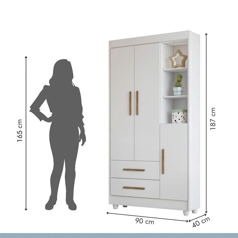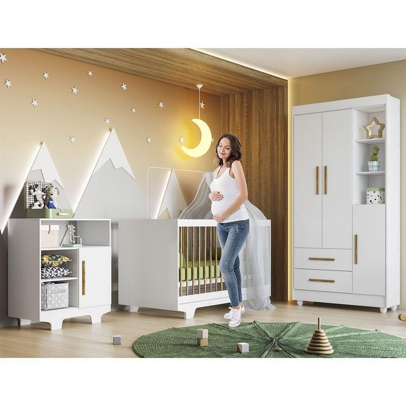 Quarto De Bebê Flocos Branco Com Berço Tigus Baby BrancoQuer deixar o quarto do seu bebe mais confortavel e atraente? Entao voce vai se apaixonar por este dormitorio Flocos. Composto por moveis selecionados por serem de alta qualidade e resistencia, ele e ideal para deixar o quarto irresistivel e organizado. Demais, ne? Aproveite.Dormitorio completo com Roupeiro com 3 portas e 2 gavetas. Possui 1 cabideiro, 5 prateleiras. Dobradicas metalicas de pressao. Corredicas metalicas. Produto com otima divisao interna. Possui jogo de pes que permitem passagem de ventilacao por baixo do movel facilitando a limpeza e evitando acumulo de po e pelos. 100 MDF. Corredicas metalicas. Acabamento Ultravioleta atoxico, escala de brilho acetinado. Berco minicama 100 MDF com grades em madeira, sistema de fixacao por buchas, 3 niveis de altura de estrado, sapatilhas de protecao contra umidade. Colchao D18 Incluso. Acompanha Kit para transformacao em minicama e suporte mosquiteiro. Comoda/Fraldario/Trocador com 1 porta e 3 prateleiras. Dobradicas metalicas de pressao. Acabamento acetinado. Caracteristicas Do Quarto de Bebe com Berco Mini Cama com Colchao Comoda e Guarda Roupa Flocos Tigus Baby : Cor do Produto: Branco e Ype Ambiente Principal: Quarto de Bebe Material Principal: MDF Escala de Brilho: Acetinado Necessita Montagem: Sim Complexidade da Montagem Alta: deve ser montado por um montador especializado Sistema de Montagem: Parafusos, cavilhas e cantoneiras. Pintura Atoxica: Sim Suporta Ate: Berco 30kg, Comoda/Roupeiro 10 Kg por prateleira, 10 Kg por gaveta e Colchao 18 Kg Certificado: 005598/2019 Recomendacoes de Uso, Manutencao e Limpeza: Limpeza com pano levemente umidecido. Nao aplicar nenhum tipo de produto quimico, como Lustra moveis, poliflor, etc. Itens Inclusos: 01 Berco Mini Cama 01 Colchao 01 Comoda 01 Guarda Roupa 01 Manual de Montagem. Dimensoes Do Berco Mini cama Altura: 81 cm Largura: 132,4 cm Profundidade: 67 cm Dimensoes Da Comoda: Altura: 80,5 cm Largura: 67 cm Profundidade: 41 cm Dimensoes Do Guarda Roupa: Altura: 187 cm Largura: 90 cm Profundidade: 40 cm Dimensoes Do Colchao: Altura: 10 cm Largura: 60 cm Profundidade: 130 cm Garantia Do Fornecedor: 3 Meses Observacoes: As imagens sao meramente ilustrativas, nao acompanham os objetos de decoracao. Pode haver alguma diferenca de tonalidade entre a foto e o produto, devido ao tratamento de imagens e a calibracao do monitor. Em caso de divergencias de informacoes, o preco valido sera o informado no carrinho de compras; A entrega e realizada por transportadora, nao nos responsabilizamos, no ato da entrega por desmontagens, subir escadas/elevadores ou transporte por guincho para apartamentos. Eventuais despesas sao de responsabilidade do cliente. Confira as dimensoes dos volumes e certifique-se de que passara normalmente por supostos elevadores, portas, escadas ou corredores; Ao receber a mercadoria, verifique as condicoes da embalagem, caso haja alguma avaria, recuse o produto, faca uma ressalva na Nota Fiscal e entre em contato com nosso SAC; Nao nos responsabilizamos pela montagem dos produtos, mas todos os produtos possuem manual de montagem e voce mesmo podera monta-lo ou contratar um profissional.